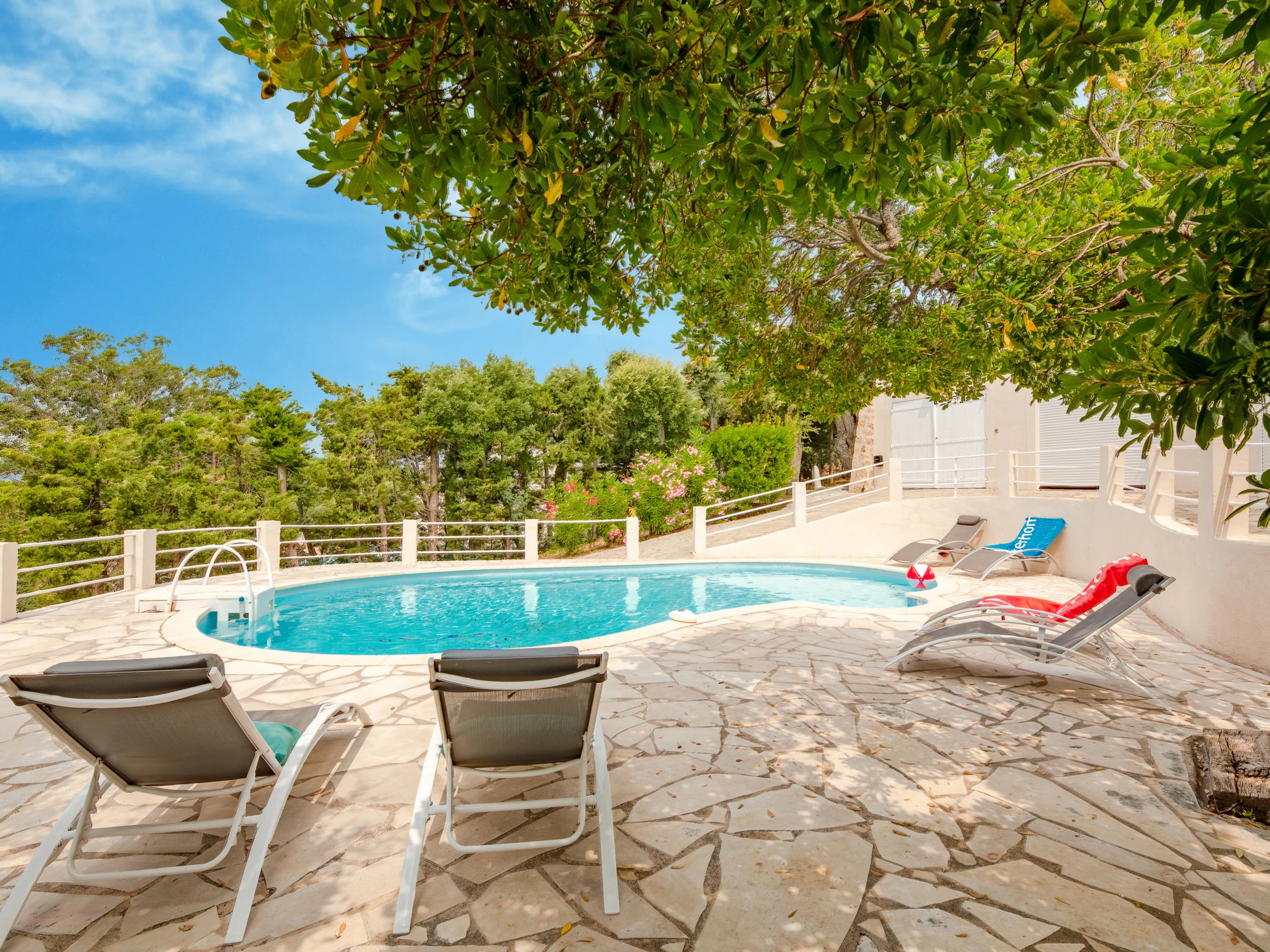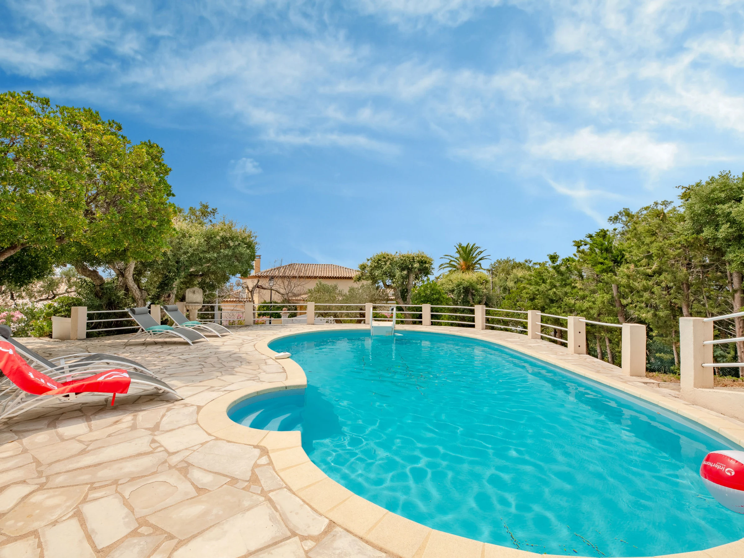 Villa "Les Gaulois", 2 storeys. In the district of Issambres, in a quiet position in the residential district, 2.2 km from the sea, 2.2 km from the beach. Private: property 1'050 m2 (fenced), natural garden (fenced), swimming pool kidney shaped (10 x 3 m, depth 110 - 180 cm, seasonal availability: [hidden] - [hidden] with internal staircase. Boules, parking. Grocery 2.5 km, shopping centre 15 km, restaurant 2 km, bakery 3.7 km, bus stop "Village Provencal" 2.2 km, sandy beach "La Pinède" 2.8 km pebble beach "Calanque de Tardieu" 2.4 km, park "Areca" 8 km, diving center 3 km, thermal baths "Thalasso des Issambres" 3 km. Sports harbour 3.8 km, golf course (18 hole) 17 km, sailing school 4 km, tennis 3 km, riding stable 7 km, sports centre 7 km, walking paths from the house 2 km. Nearby attractions: Aqualand, Lunapark 15 km, Frejus 16 km, Saint-Raphael 19 km, Ste Maxime 10 km, Saint-Tropez 25 km, Cannes 50 km. Well-known ski regions can easily be reached: Auron, Isola [hidden] km. Well-known lakes can easily be reached: Lac de St Cassien 50 km, Lac du Du Verdon 95 km. Hiking paths: Petites Maures 2 km, Estérel 25 km, Sentier du Litoral 1 km. Please note: car recommended. Groups of teenagers on request only. Part of the house is closed and unoccupied. The keys‘ handover takes place by the agency in Saint-Aygulf, 7 km.