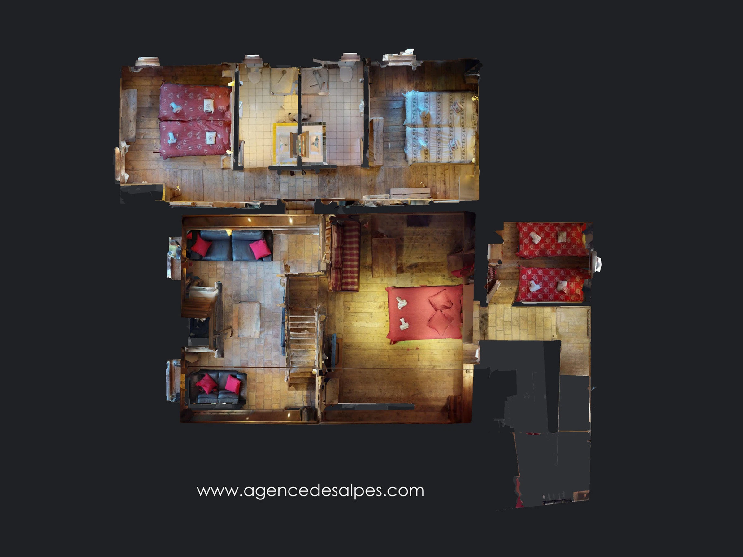 HIGHER LEVEL: (access by stairs from the living room): mezzanine: bed for 2 people (140 cm)