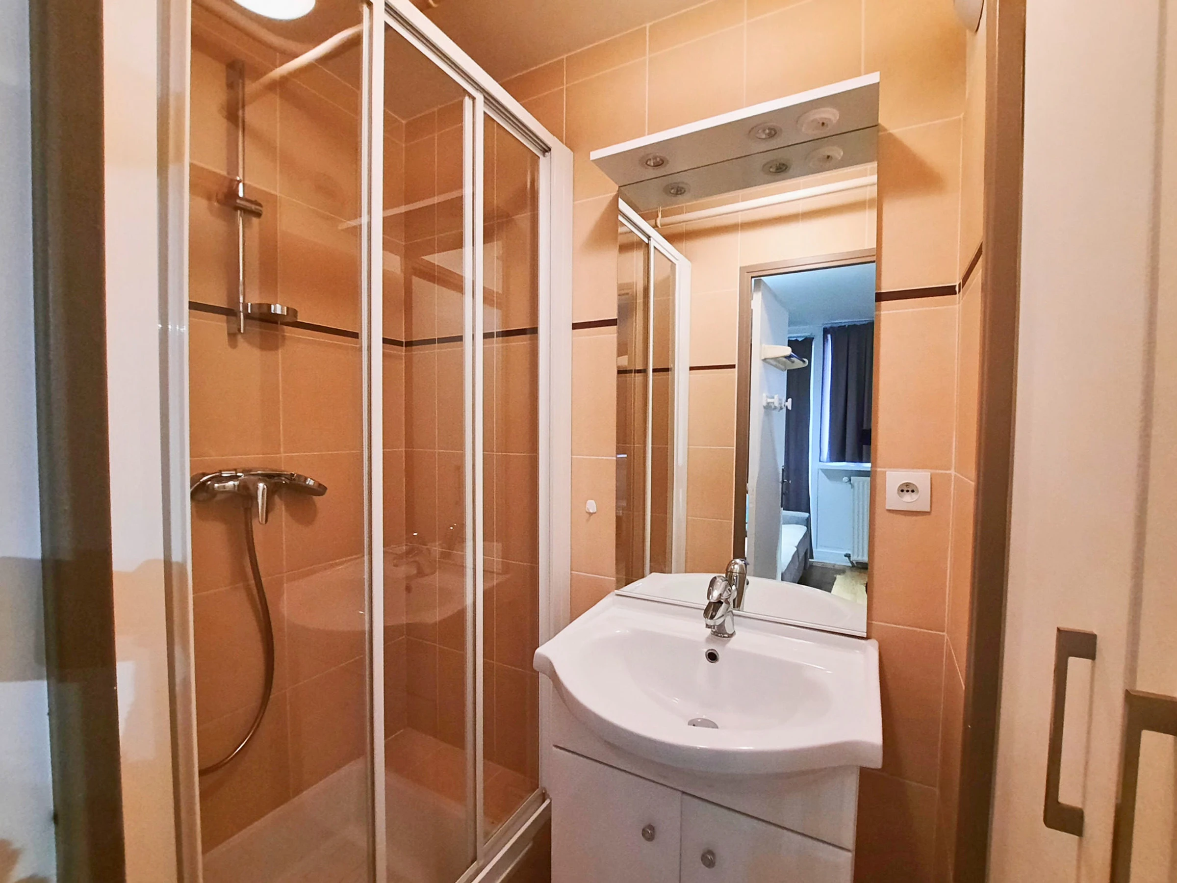 Bathroom: washbasin, shower, toilet