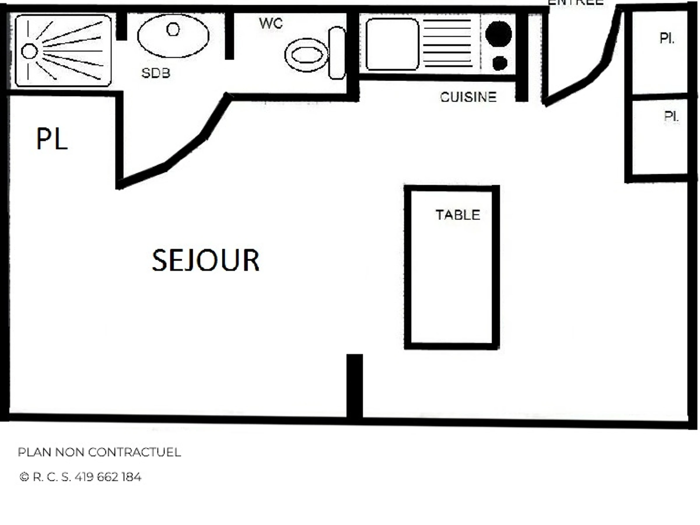 Residence Les Lauzes (N°E7), studio refurbished for 4 persons 24sqm, on the 5th floor by lift which stop half a floor underneath, West facing balcony