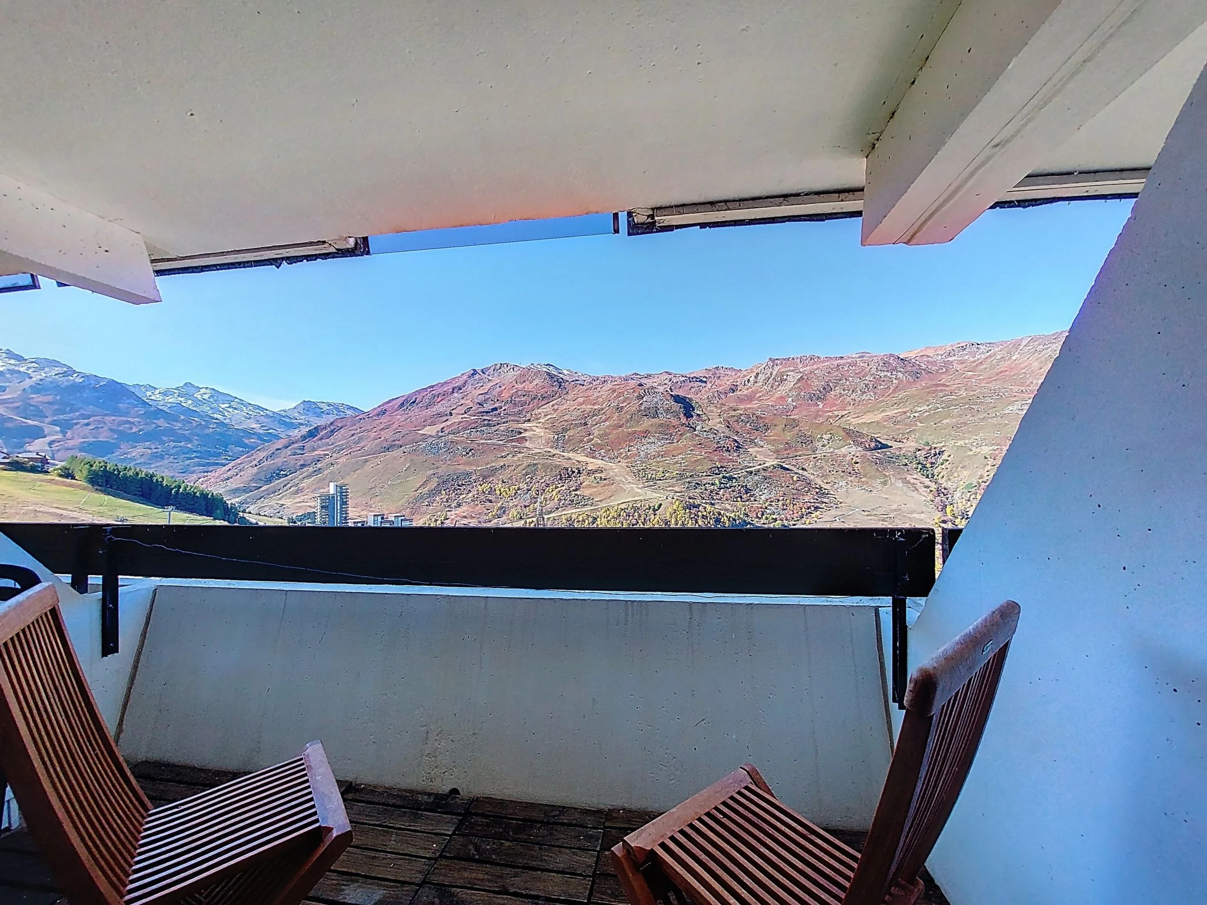 The residence Brelin is linked to the centre "La Croisette" by a public free lift 24/7 residence "Brelin". In an elevated position, directly by the skiing area. In the complex: restaurant, shopping facilities, lift, storage room for skis. In Winter: please take snow chains. Public parking. Grocery 20 m, shopping centre, restaurant 250 m, bus stop "Gare routière Les Menuires" 1 km. Sports centre 500 m, skisport facilities 50 m, slopes 20 m. Well-known ski regions can easily be reached: 3 Vallées. The owner does not accept any youth groups. Please note: Additional accommodations can be booked.