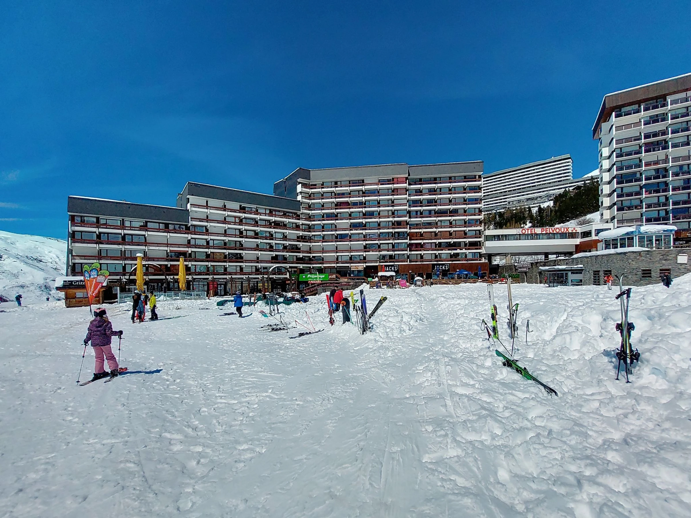 Residence "Chavière", 8 storeys. In the centre of La Croisette, directly by the skiing area. In the complex: lift, storage room for skis, central heating system. Public parking. Shop, supermarket 10 m, bus stop "Gare routière les menuires" 100 m. Sports centre 30 m, skisport facilities, slopes, ski school 20 m, ski-kindergarten 50 m. Well-known ski regions can easily be reached: 3 Vallées. Please note: the photograph shows a typical example. Additional accommodations can be booked.