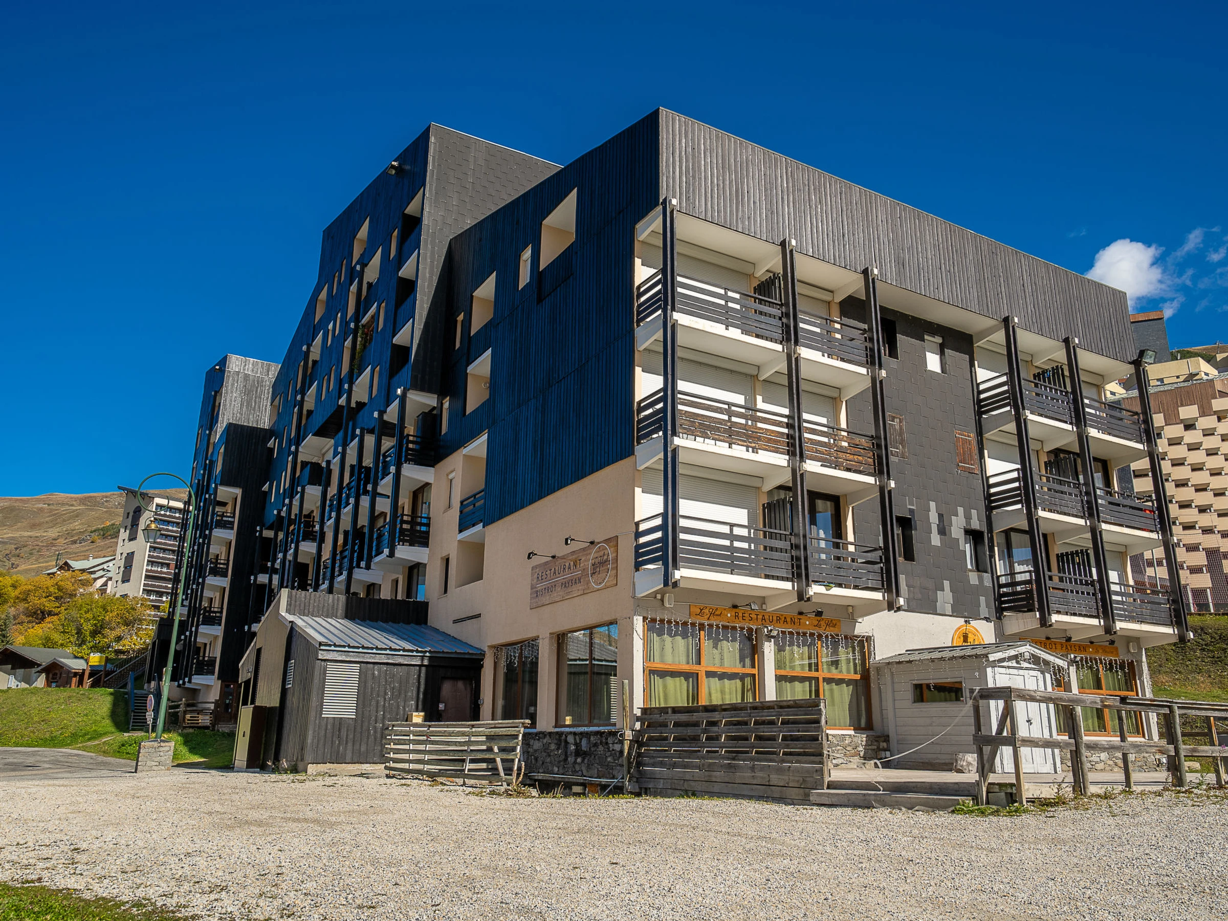 Residence "Le Villaret". In the district of Preyerand 300 m from the centre of La Croisette, directly by the skiing area. In the complex: lift, storage room for skis. Public parking on the road. Grocery, supermarket 20 m, shopping centre 300 m, bus stop "Gare routière Les Menuires" 600 m. Sports centre 300 m, skisport facilities 60 m, slopes 20 m, ski school 300 m, cross country ski track 50 m. Well-known ski regions can easily be reached: 3 Vallées. Please note: the photograph shows a typical example. Additional accommodations can be booked. The "LE VILLARET" residence is located next (15 meters) to the free ski lift, open from 8 am to 11 pm, which connects the center of the resort (with ski school, shops, restaurant) very quickly.