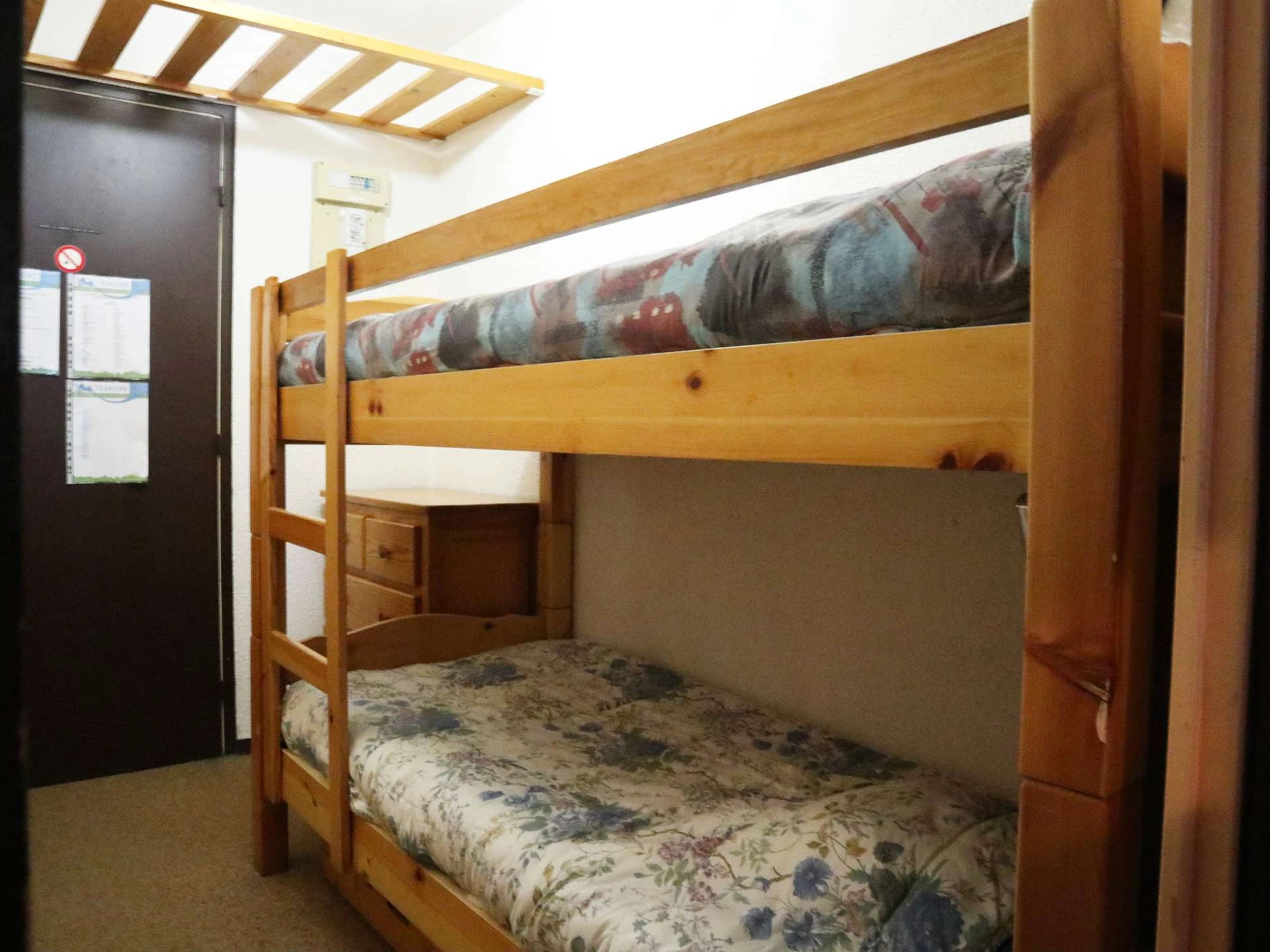 Studio equipped for 4 people composed of an entrance with 2 single bunk beds, a living room with 1 double sofa bed, bathroom and separate toilet, kitchen area open to the living room, south-facing balcony offering a beautiful view of the slopes.