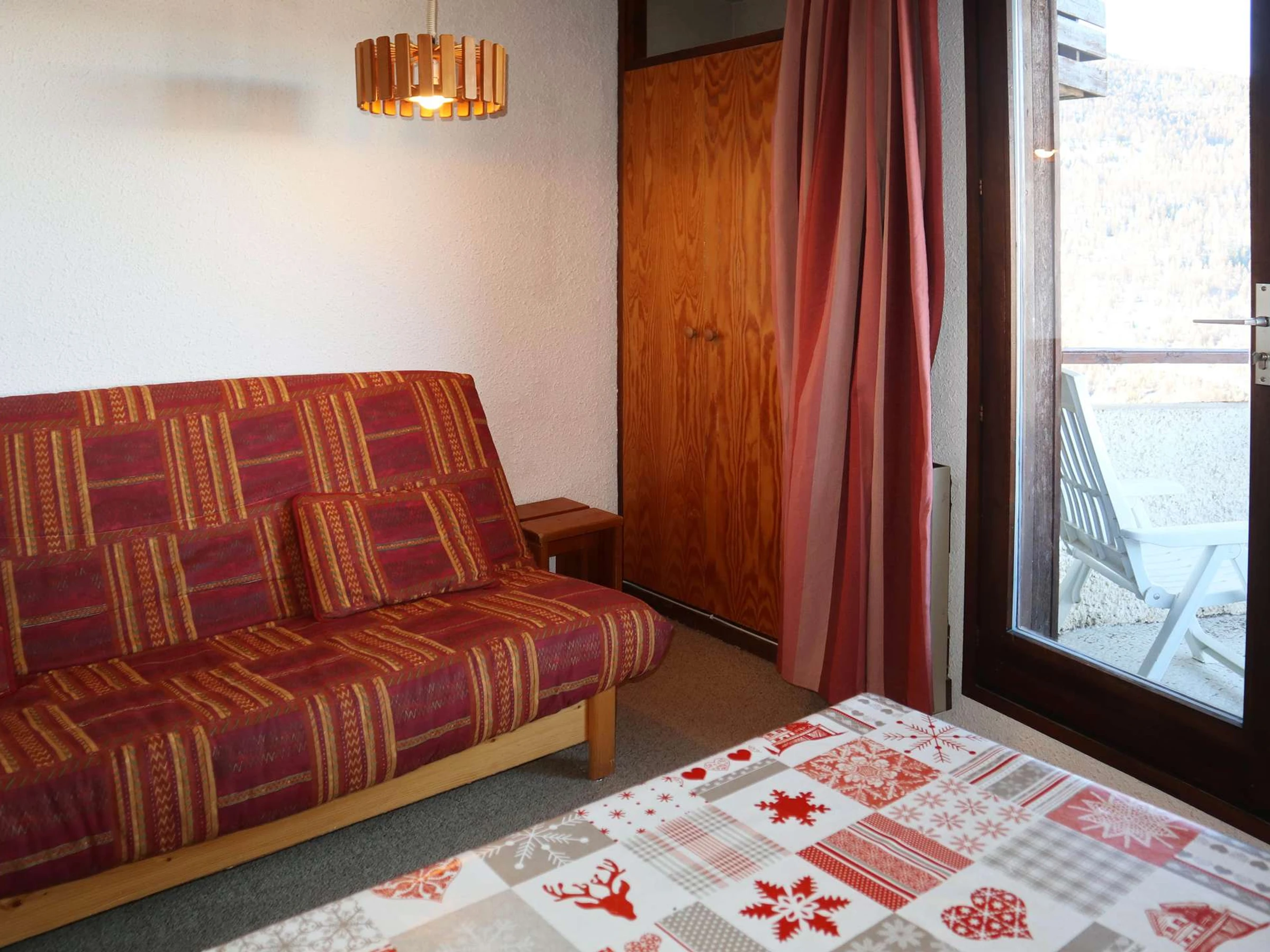 Studio équipé pour 4 personnes composé d'une entrée avec 2 lits superposés 1 places d'un séjour avec 1 banquette convertible 2 places, salle de bain avec wc indépendants, coin cuisine ouvert sur le séjour, balcon exposé OUEST avec vue sur la vallée.