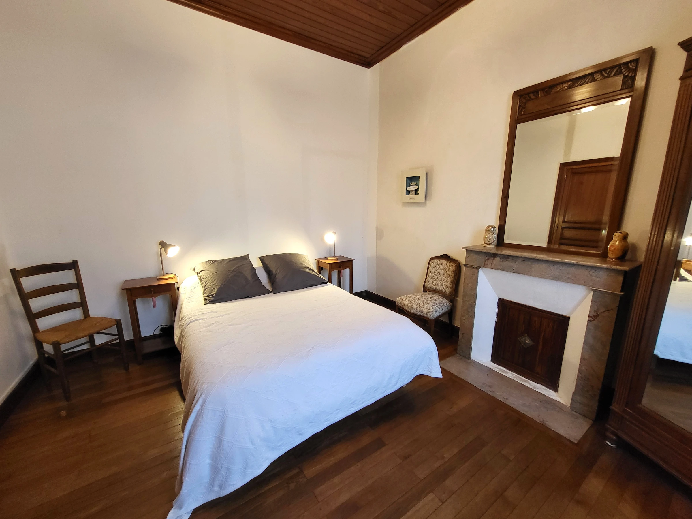 Upstairs, you will find three large bedrooms, each equipped with a 140 cm bed and offering plenty of storage space for your comfort. A second separate toilet is also located on this floor. The third bedroom has convenient access to a hallway that leads to the laundry room and the courtyard.