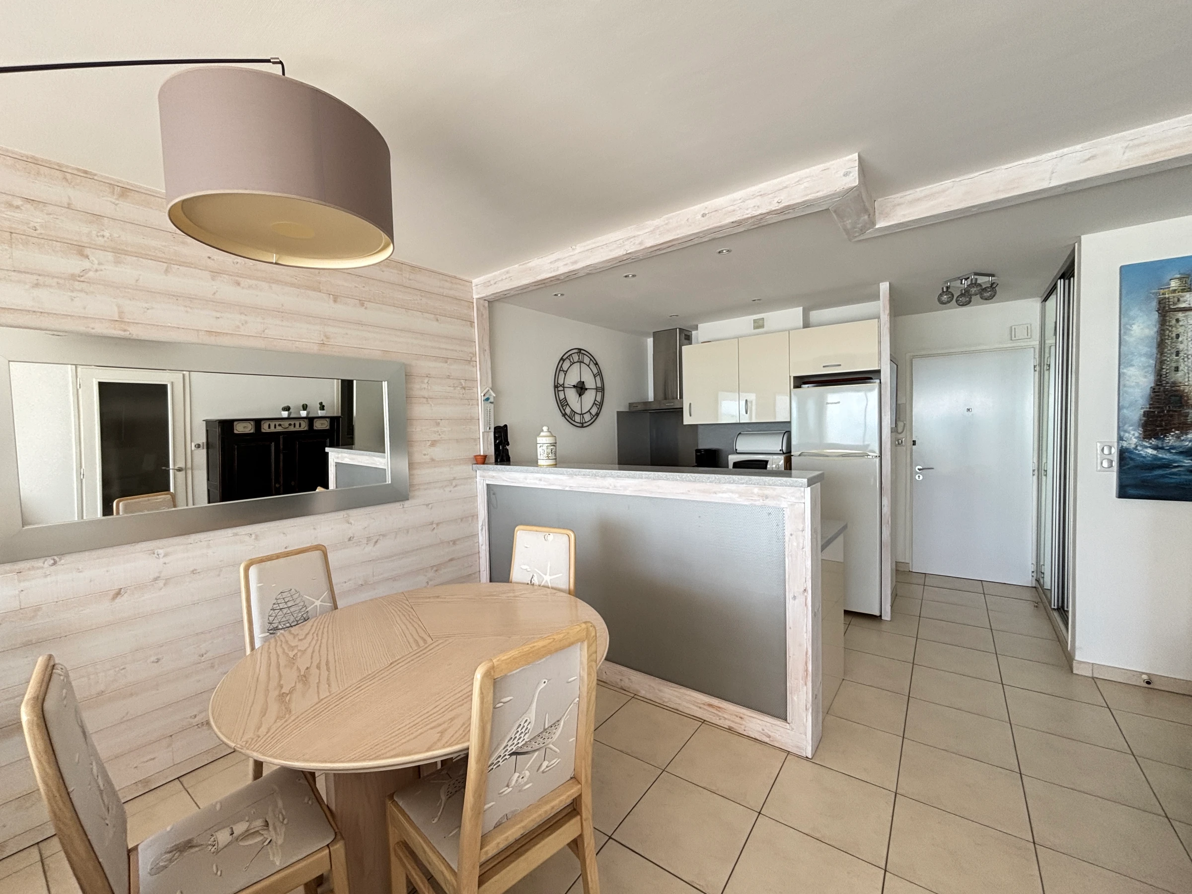 On the 9th floor of Les Sables-d'Olonne's embankment, facing the beach, this 2-star furnished apartment features an entrance hall, separate toilet, a living room with a sofa, television, and balcony with furniture, opening onto the kitchen with an oven, dishwasher, microwave, refrigerator-freezer, and induction hob with extractor hood. There is a bathroom with a shower and washing machine. A sleeping alcove with a 140x190 cm bed and a 90x190 cm high bed, as well as a second bedroom with two 80x190 cm beds (or 160x190 cm beds) and a balcony facing the beach. Private garage in a nearby residence, 100 meters away.