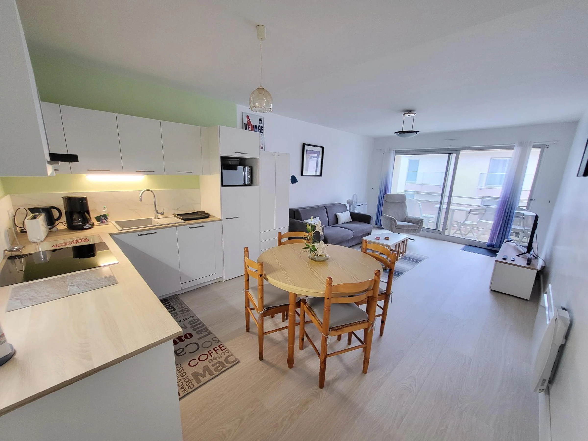 Comfortable 45 m² apartment, ideally located in Les Sables-d'Olonne, in the Les Roses - Présidents district. On the 3rd and top floor (no elevator) of a quiet building, this bright one-bedroom apartment can accommodate up to 4 people: a bedroom with a queen-size bed (160x190 cm) and a living room with a double sofa bed. You'll appreciate the furnished balcony, perfect for enjoying evenings, as well as the 3-star rating and the excellent condition of the apartment.