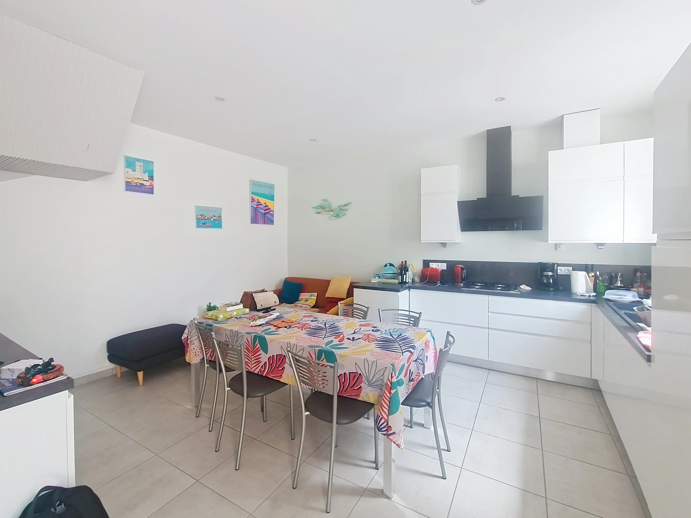 Two-story house with a large courtyard that enjoys evening sunshine (garden furniture). Entrance on the raised ground floor, living room (TV), new open-plan kitchen (oven, microwave, refrigerator, dishwasher, extractor hood, 4-burner gas stove, plenty of storage), storage room under the stairs. Upstairs: 1 bedroom (1 bunk bed), 1 bedroom (1 double bed + 1 single bed), bathroom (sink, shower, toilet). Outbuildings in the courtyard: washing machine, dryer, toilet, and barbecue. Wi-Fi.
