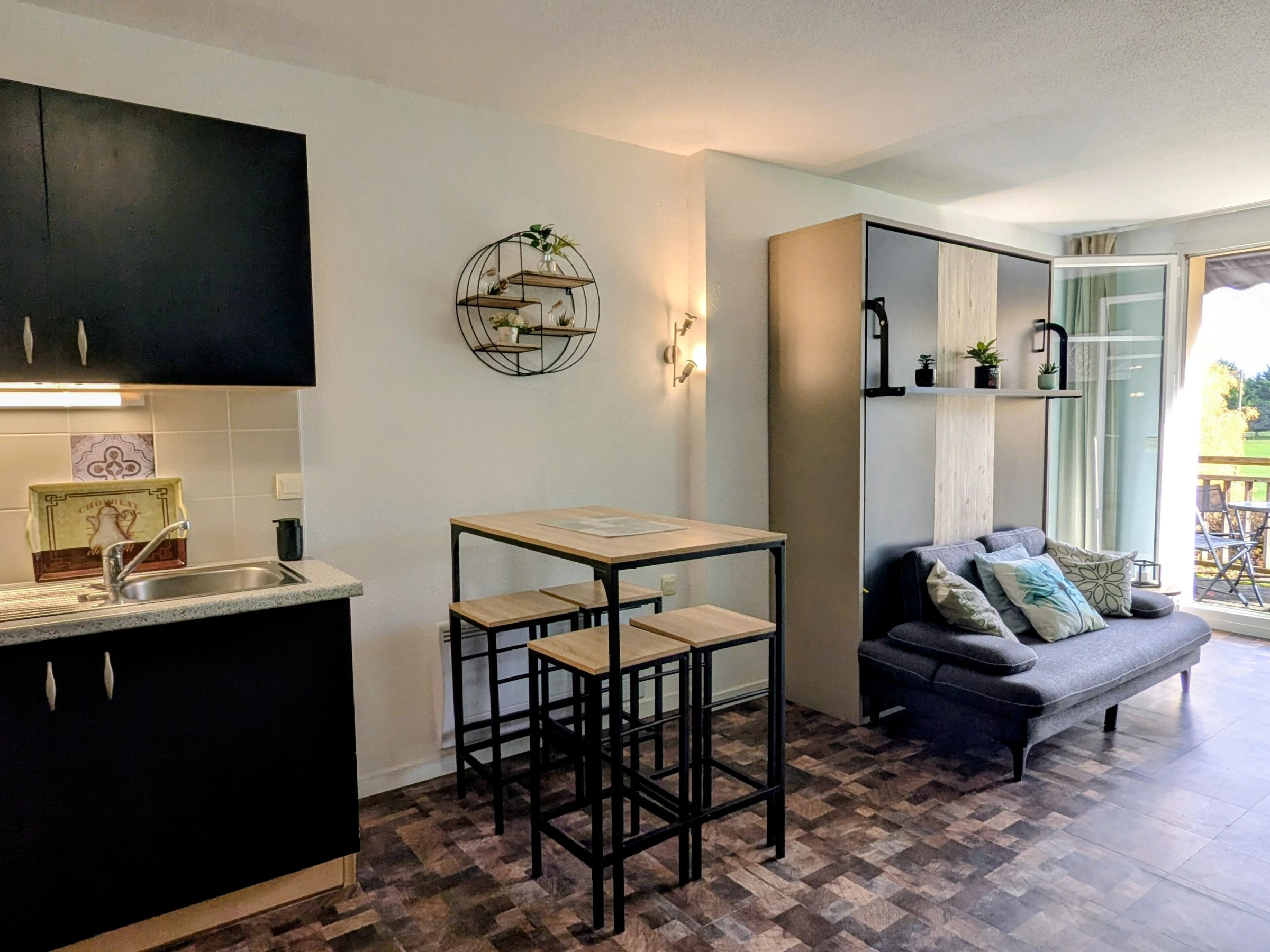 Access to the heated indoor pool and sauna at the A Levernois residence, 4 km from Beaune, in the 3-star tourist residence "Les Allées du Green," the "Le 47" gîte, located on the 2nd floor (with elevator), offers: an open-plan kitchen/dining/living room with a good quality fold-down bed (140 cm), TV, Wi-Fi, one bedroom with a 140 cm bed, a bathroom, and a separate toilet. A small terrace with an awning, garden furniture, and lounge chairs is also available. A travel cot is available upon request. Access to the residence's heated indoor pool and sauna is provided via a QR code. Outside: a large free private parking area, a pétanque court, a children's playground, and bicycle storage.