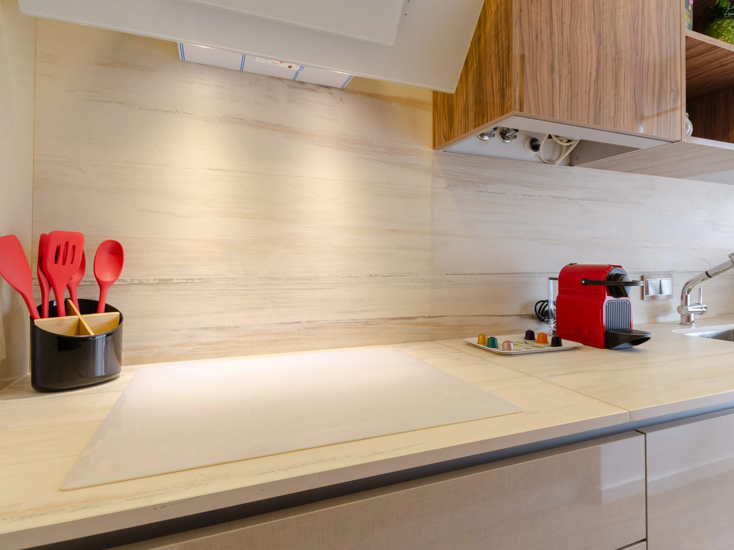 The independent kitchen, is equipped with refrigerator, microwave, oven, freezer, dishwasher, dishes/cutlery, kitchen utensils, coffee machine, toaster and kettle.