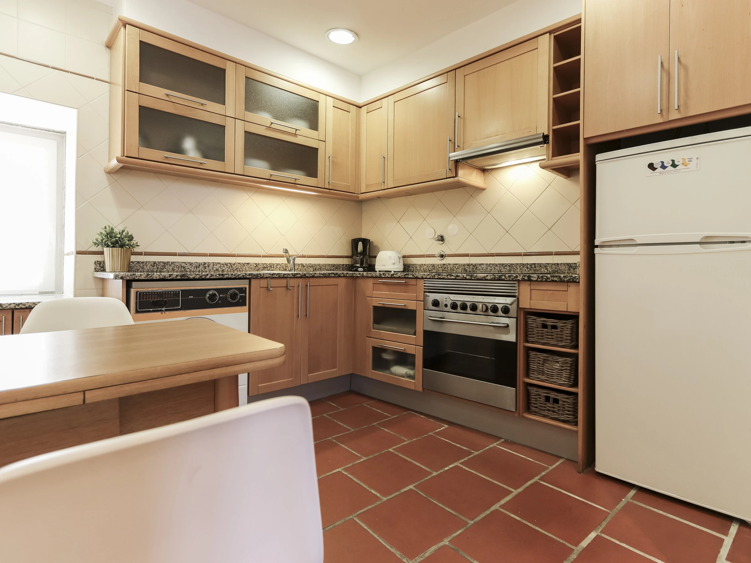 The kitchen, is equipped with refrigerator, microwave, oven, freezer, dishes/cutlery, kitchen utensils, coffee machine, toaster and kettle.