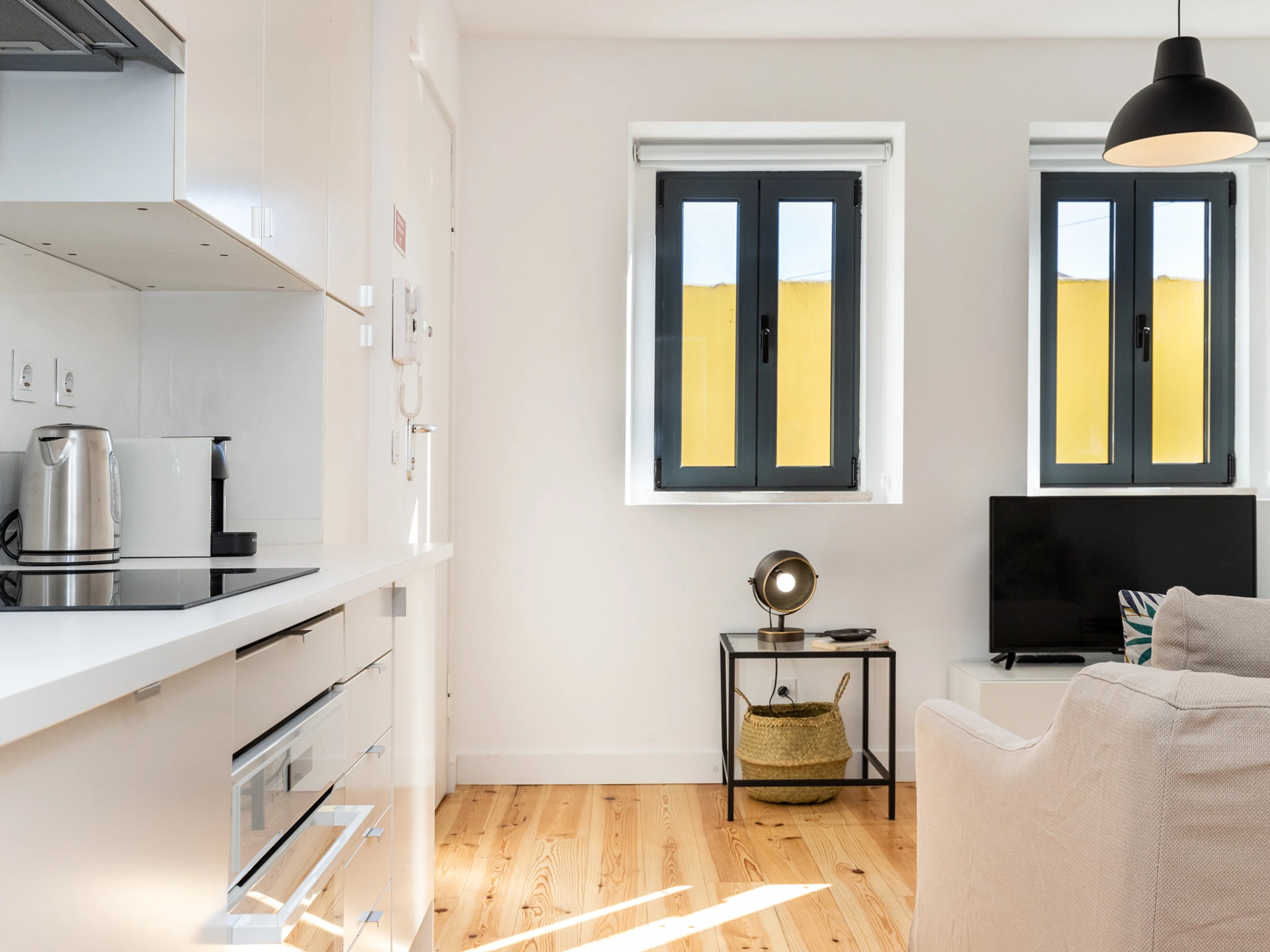 This charming 30 m² apartment in Lisbon's historic Belém neighborhood features 1 bedroom and accommodates up to 4 guests. The cozy space includes convenient amenities like a washing machine, iron, Wi-Fi, hair dryer, heat pump, air conditioning, and TV. The well-equipped open-plan kitchen offers a refrigerator, microwave, oven, freezer, dishwasher, dishes, cutlery, kitchen utensils, coffee machine, toaster, and kettle, ensuring a comfortable and pleasant stay.