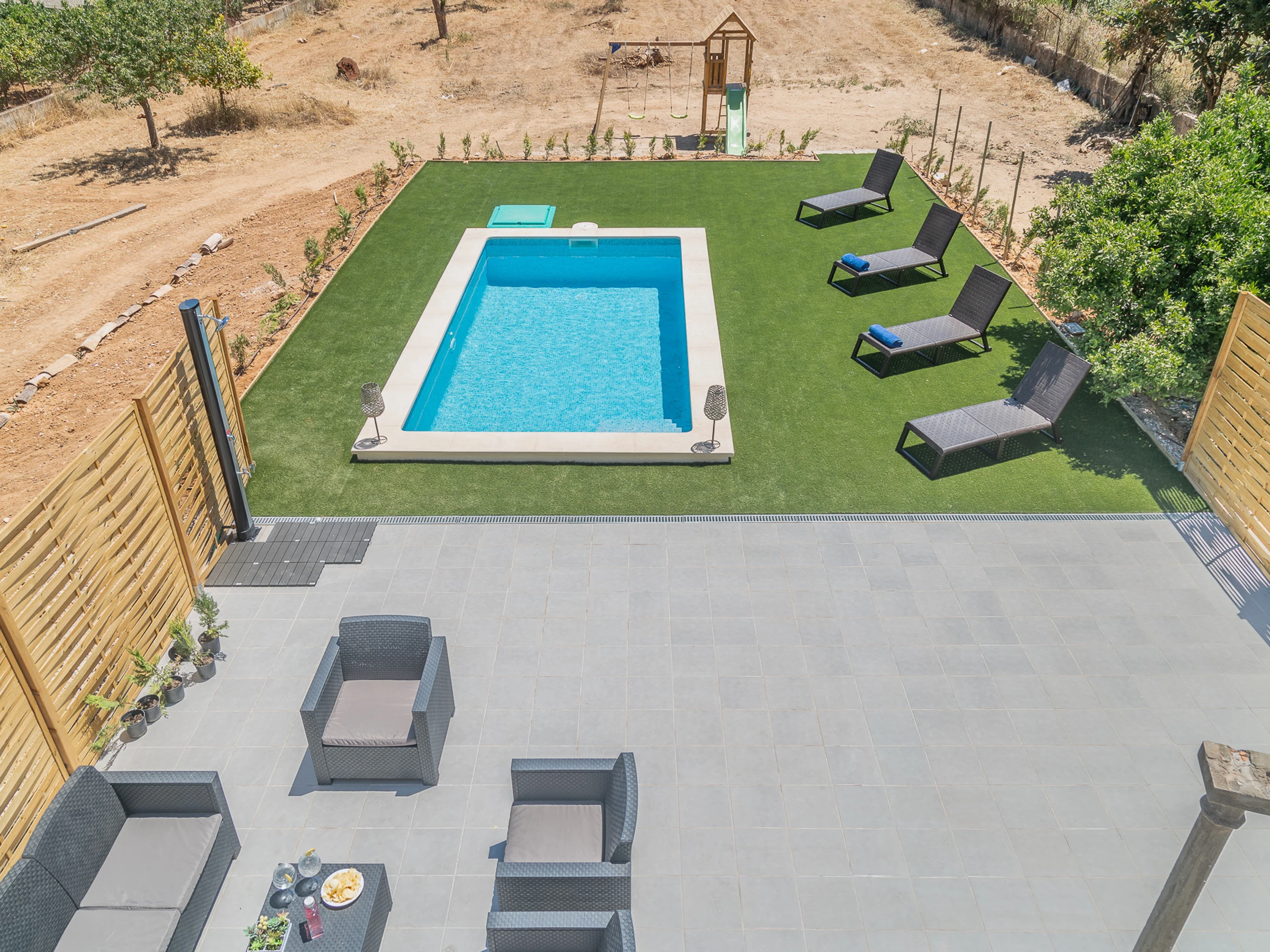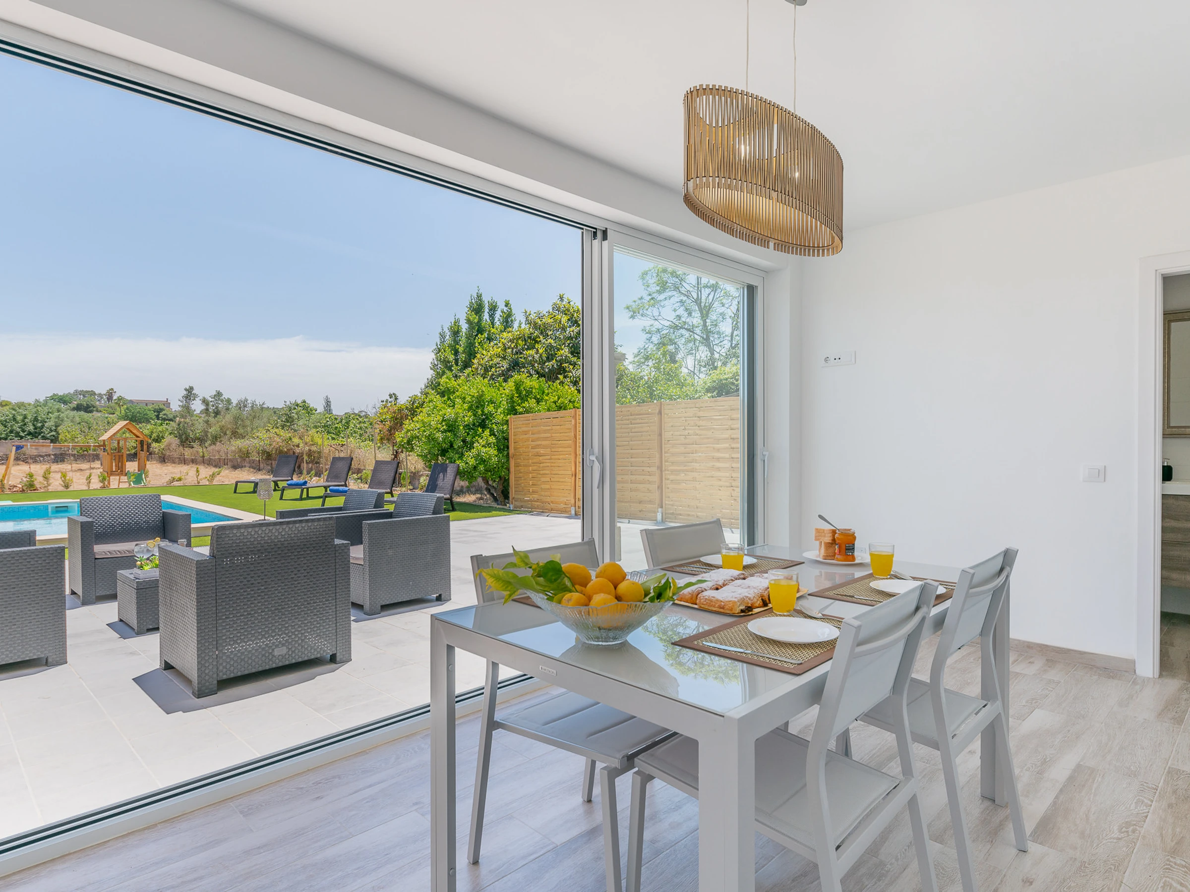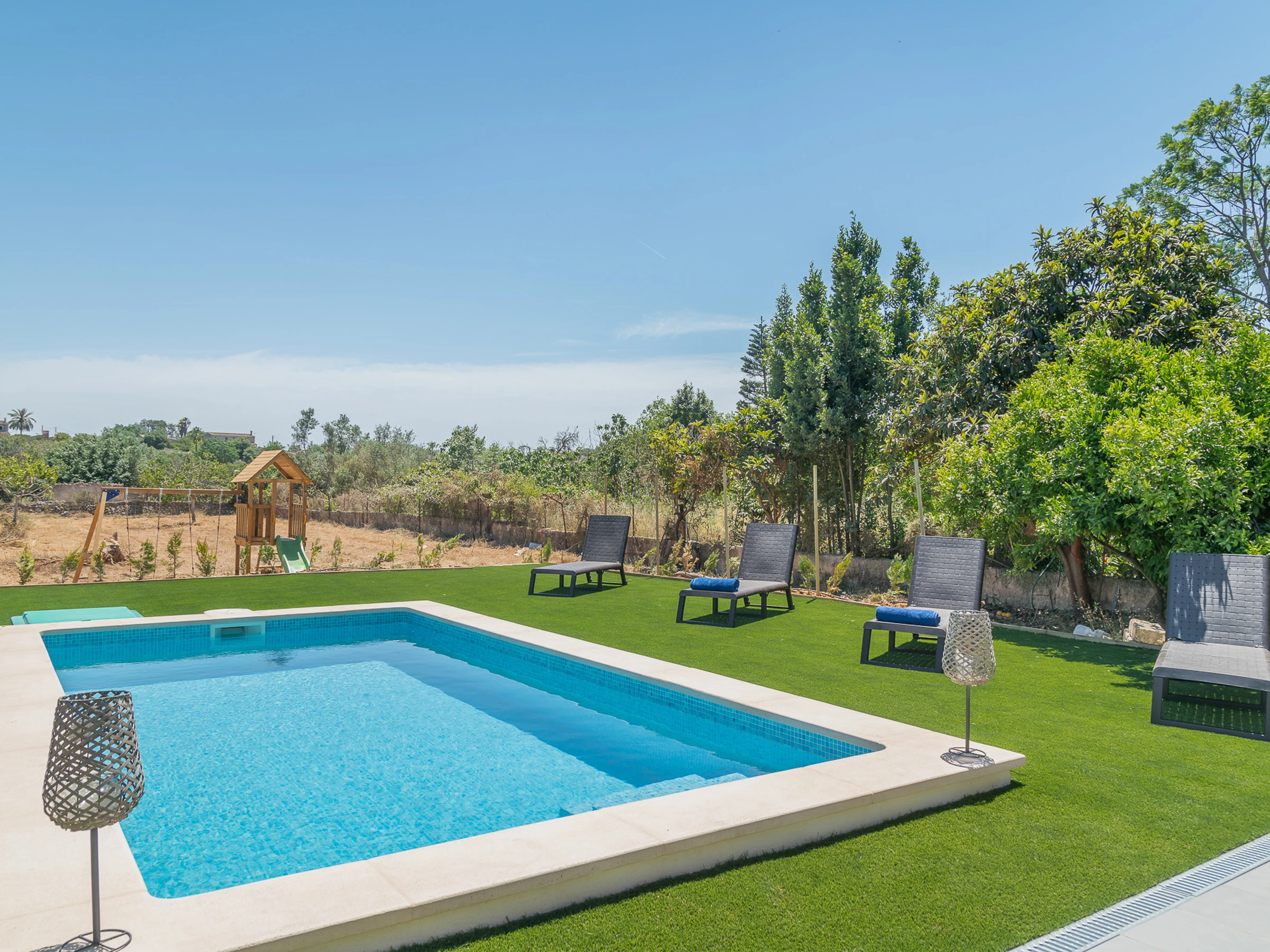 The accommodation is equipped with the following items: garden furniture, fenced garden, terrace, washing machine, barbecue, iron, internet (Wi-Fi), hair dryer, balcony, swimming pool private, TV, satellite tv (Languages: Spanish, English, German).