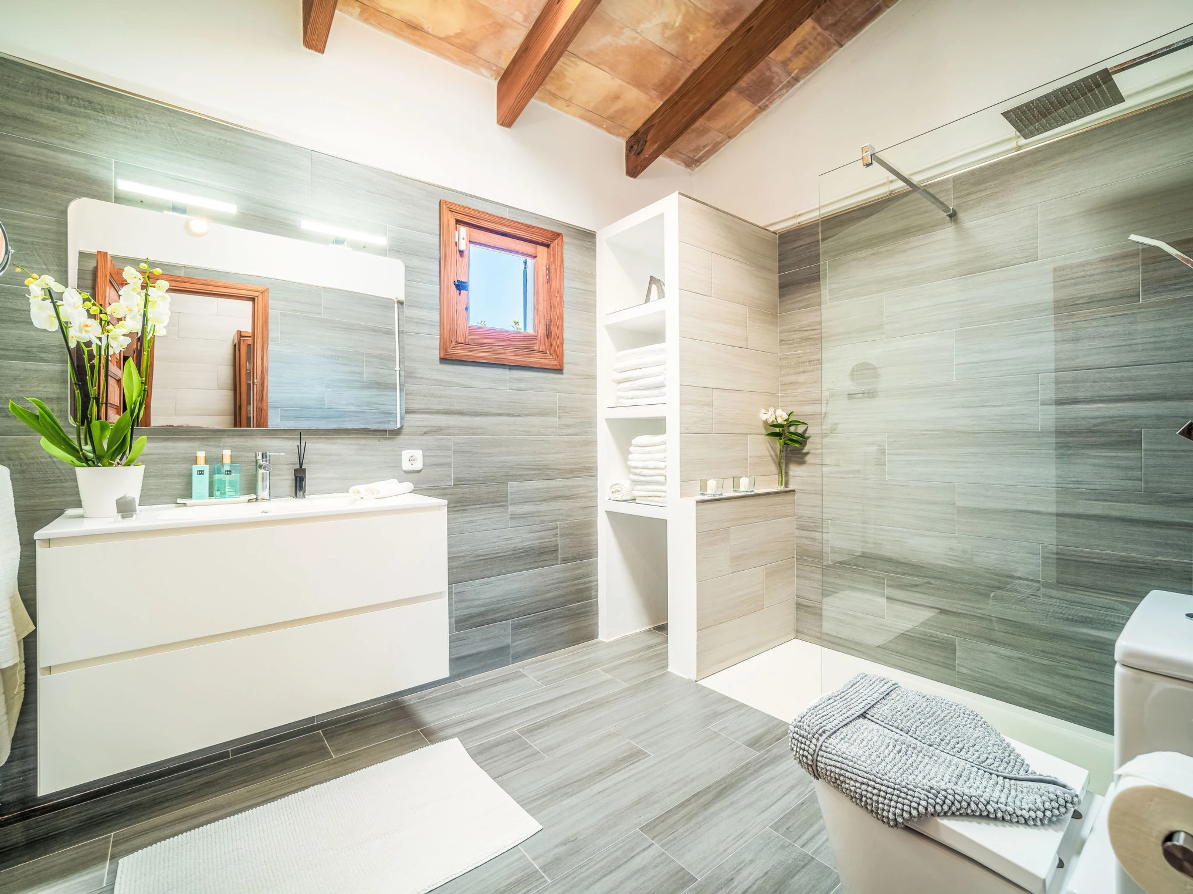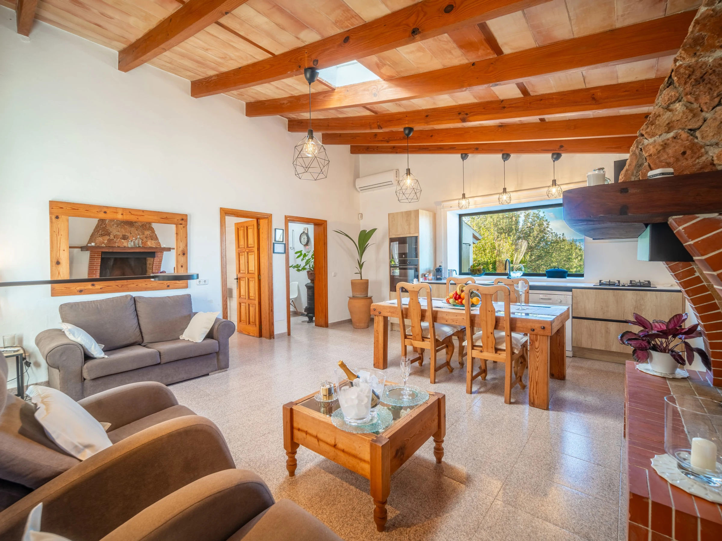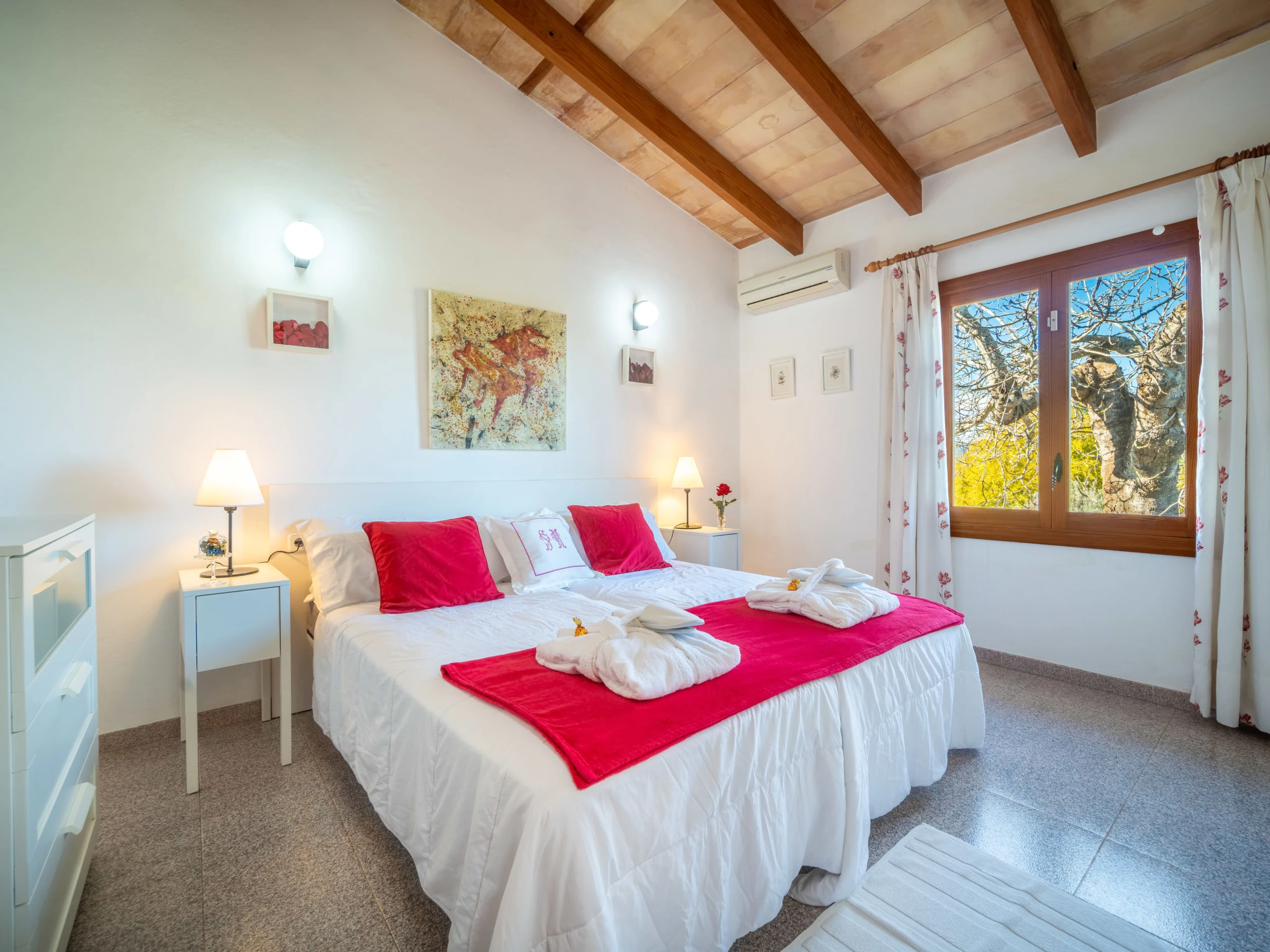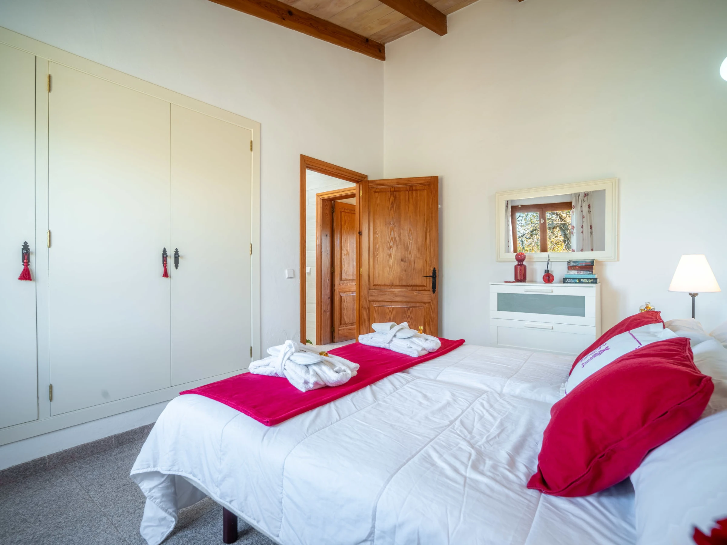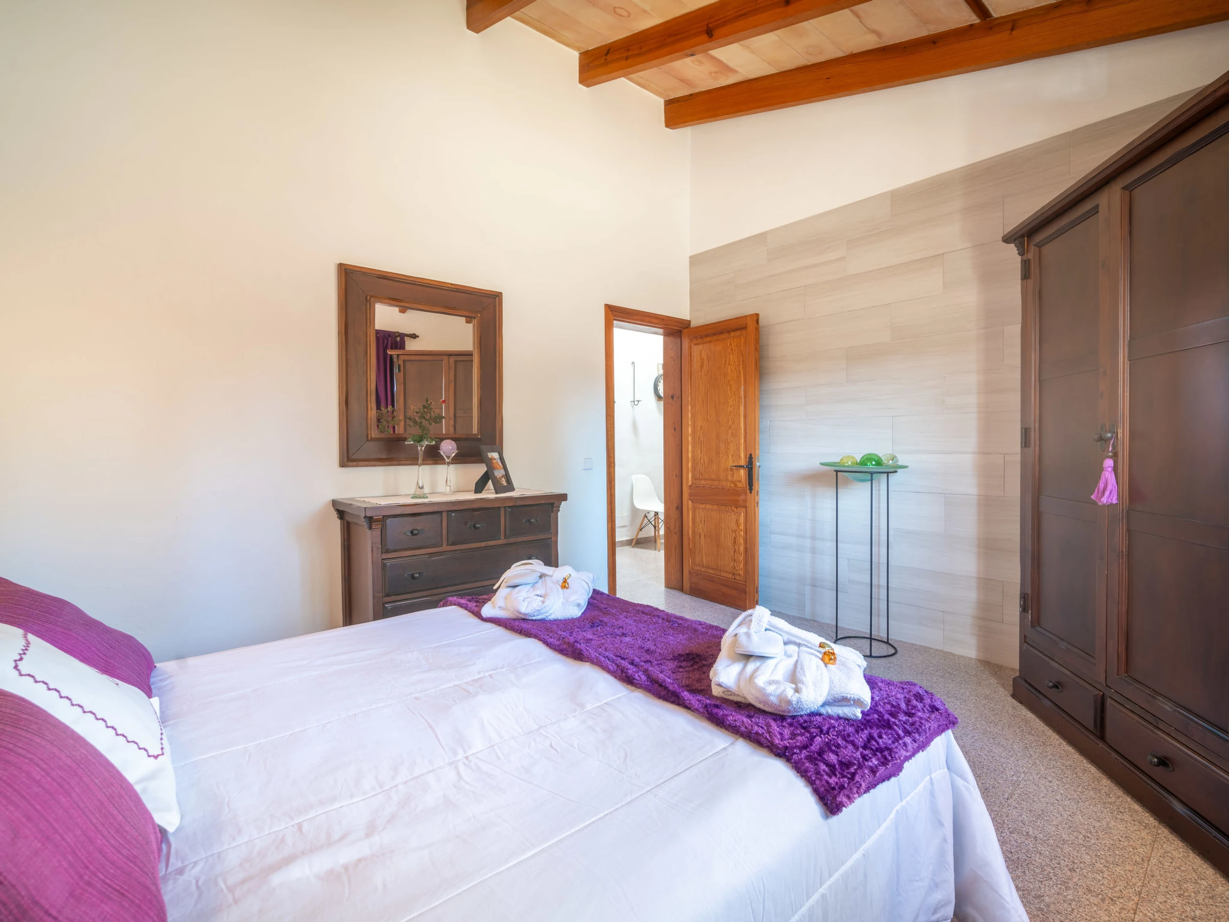 "Son Mulet", 3-room house 115 m2. Spacious and bright, comfortable and rustic furnishings: living/dining room with open-hearth fireplace, dining table, satellite TV, air conditioning and forced-air heating. Exit to the patio. 1 double bedroom with 1 french bed (1 x 160 cm, length 190 cm), air conditioning and forced-air heating. 1 double bedroom with 2 beds (90 cm, length 190 cm), air conditioning and forced-air heating. Open kitchen (oven, dishwasher, 4 ceramic glass hob hotplates, toaster, kettle, microwave, electric coffee machine). Shower/WC. Air-conditioning, forced-air heating. Heating not available in all rooms. Natural stone floors. Large patio. Terrace furniture, barbecue, deck chairs, covered balcony, box-room. Very beautiful view of the countryside. Facilities: washing machine, iron, mosquito net, children's high chair, baby cot for up to 2 year olds, hair dryer, baby changing unit. Internet (WiFi, free). Parking (roofed, 1 car). Suitable for families. [hidden]
