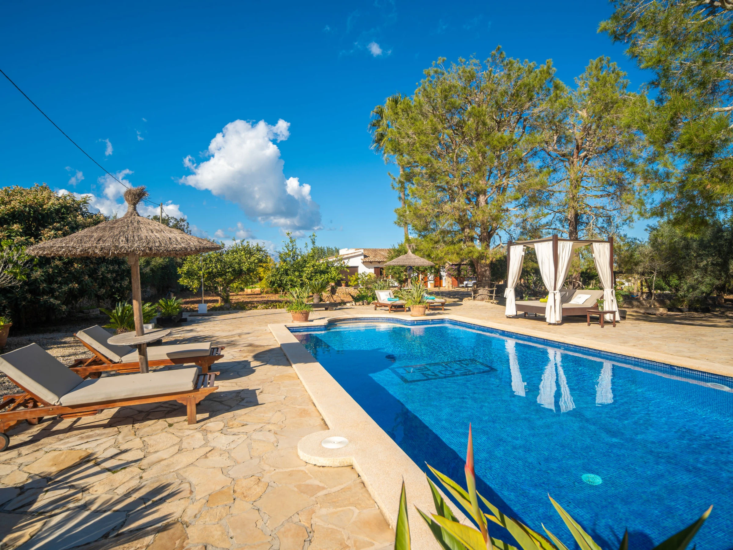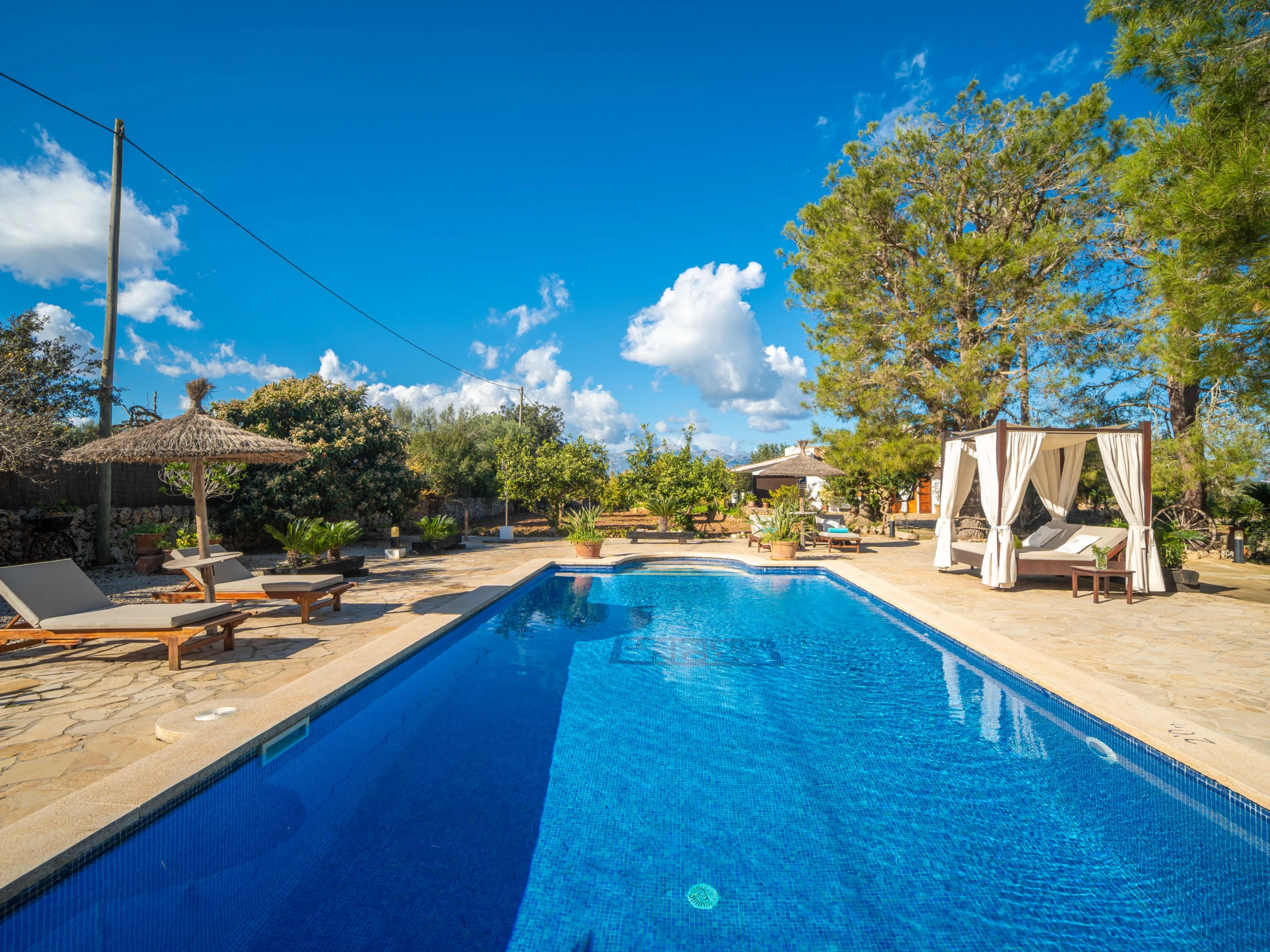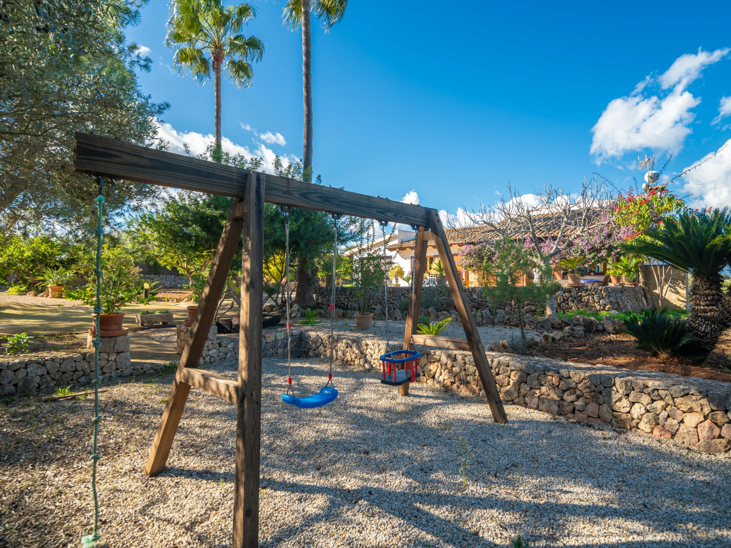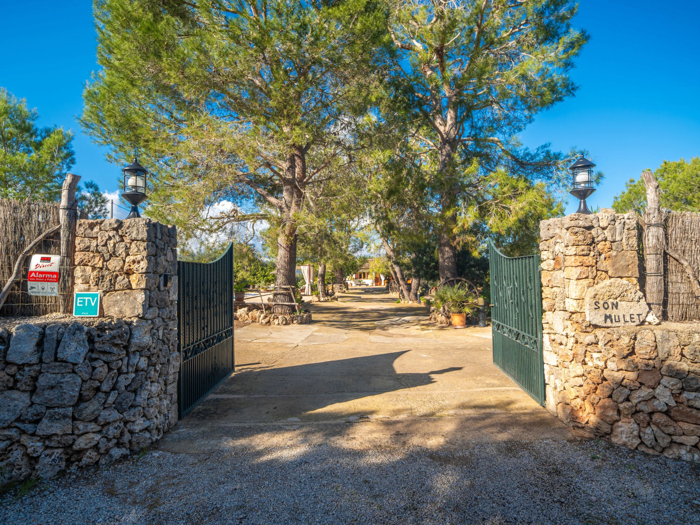 Beautiful, cosy, rustic house "Son Mulet", surrounded by trees. Outside the resort Llubí, in the countryside. Private: property 12'000 m2, garden with swimming pool secured (10 x 4 m, depth 120 - 200 cm, seasonal availability: [hidden] - [hidden] Outdoor shower, pergola, terrace, garden furniture (swing), pool maintenance by the owner/gardener. In the house: WiFi, washing machine. Roofed, parking. Shop 2 km, supermarket 2 km, restaurant 2 km, bus stop "Llubi" 3 km, sandy beach 20 km, swimming bay 20 km. Tennis 2 km. Please note: car recommended. Baby equipment on request (included). The owner does not accept any youth groups. Loading and unloading of baggage is possible at the holiday house. Motorway close by 8 km from the property. Airfield 40 km from the property.