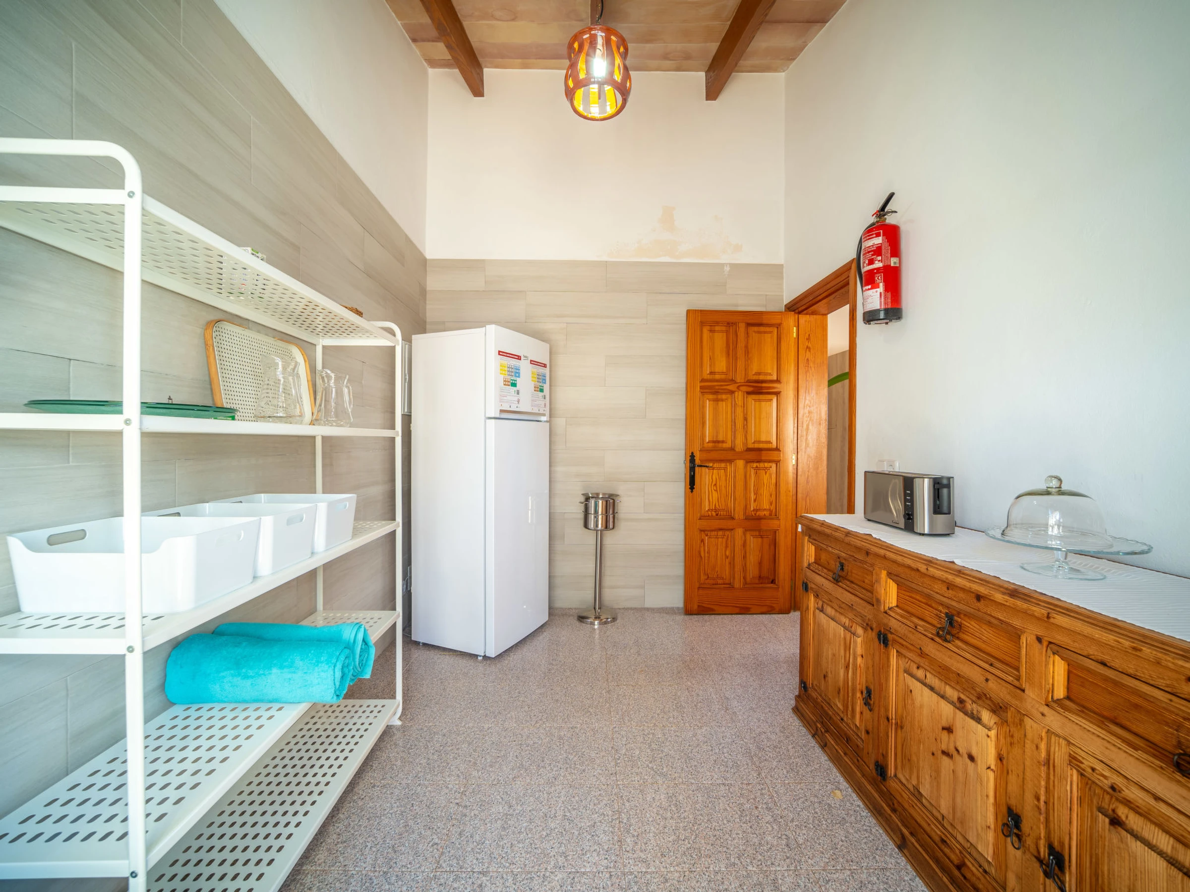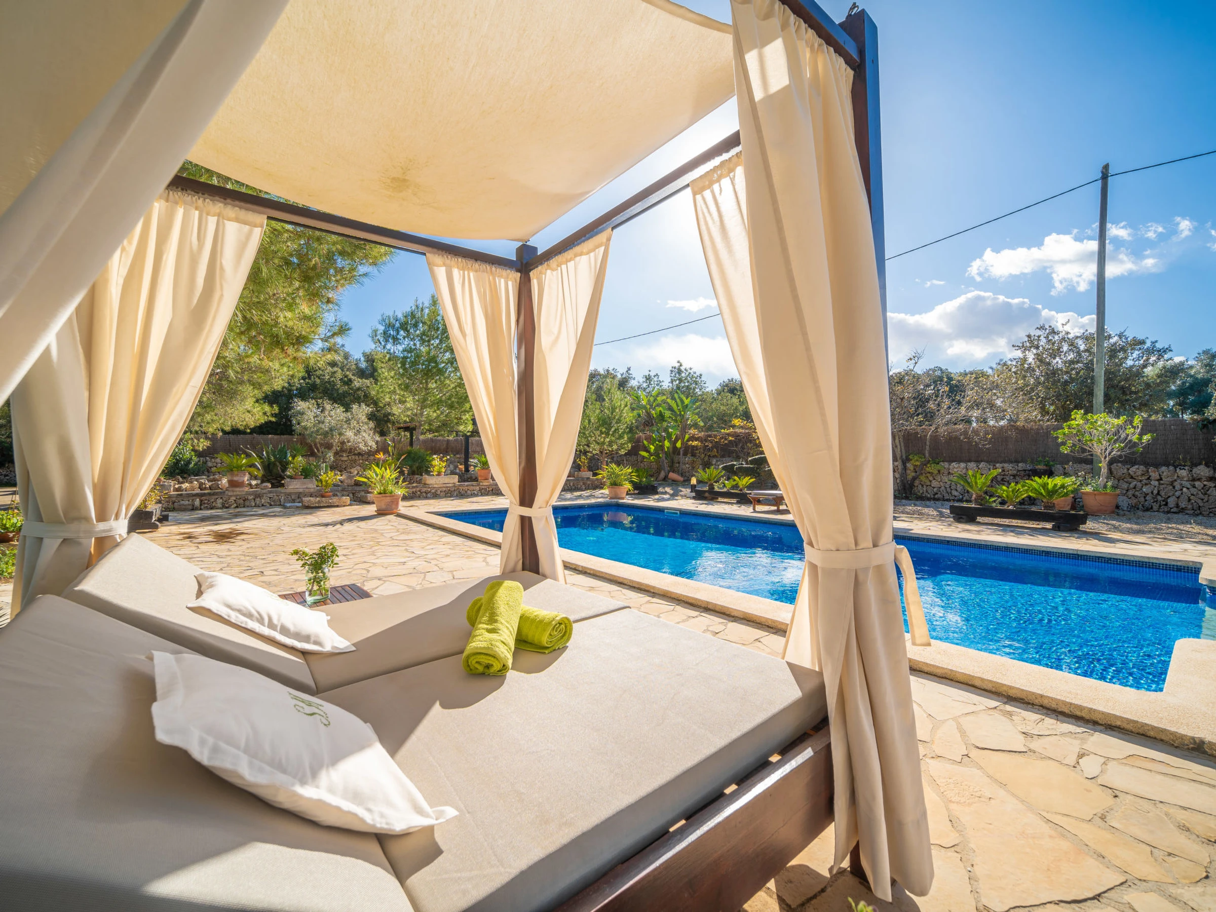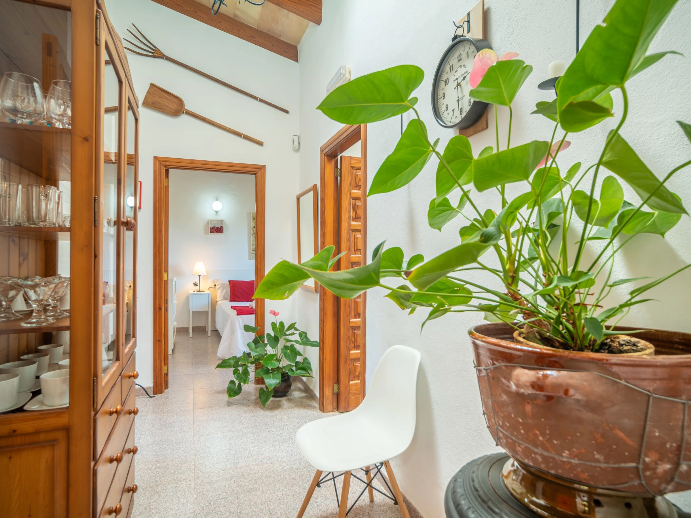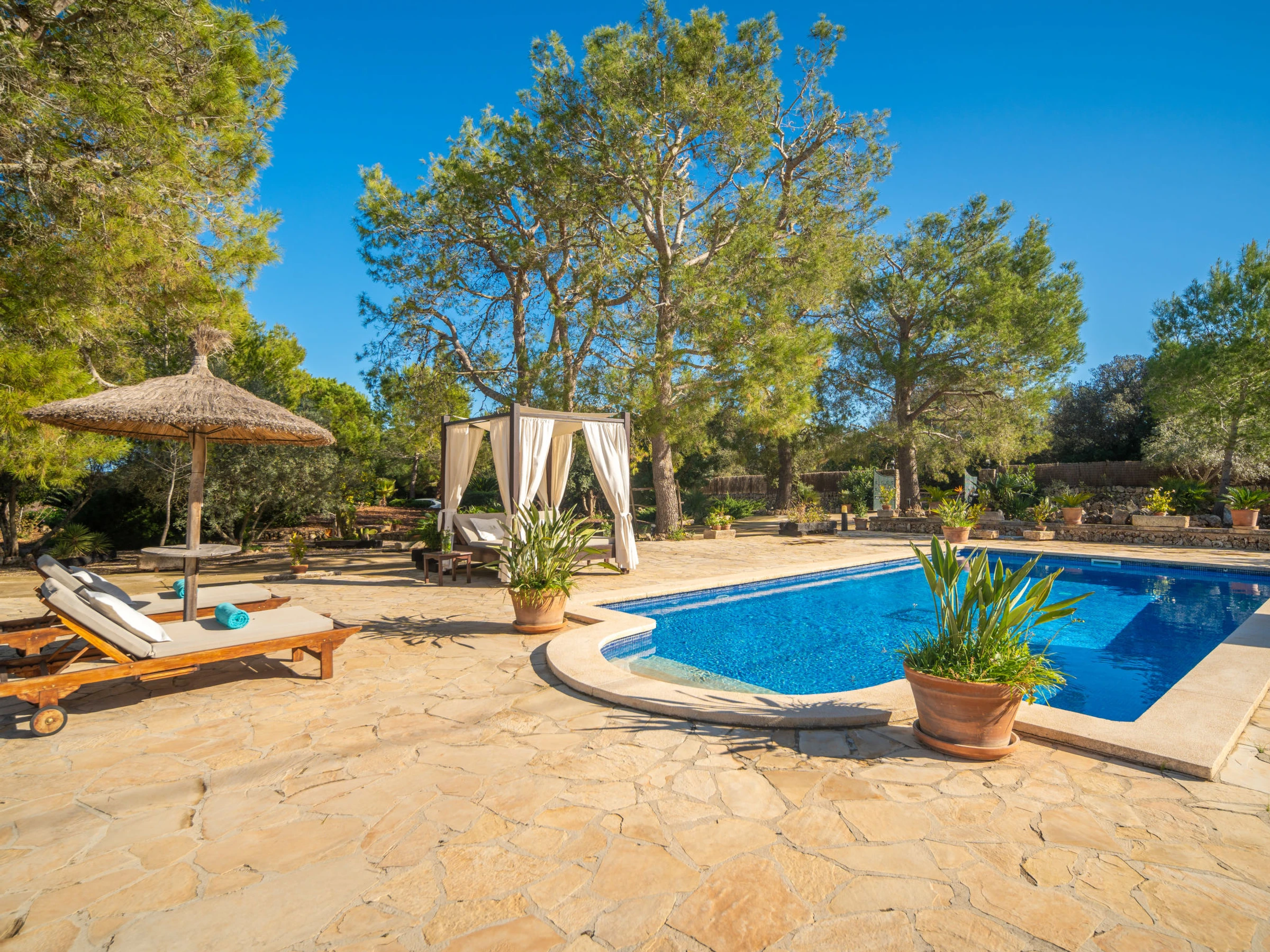 Beautiful, cosy, rustic house "Son Mulet", surrounded by trees. Outside the resort Llubí, in the countryside. Private: property 12'000 m2, garden with swimming pool secured (10 x 4 m, depth 120 - 200 cm, seasonal availability: [hidden] - [hidden] Outdoor shower, pergola, terrace, garden furniture (swing), pool maintenance by the owner/gardener. In the house: WiFi, washing machine. Roofed, parking. Shop 2 km, supermarket 2 km, restaurant 2 km, bus stop "Llubi" 3 km, sandy beach 20 km, swimming bay 20 km. Tennis 2 km. Please note: car recommended. Baby equipment on request (included). The owner does not accept any youth groups. Loading and unloading of baggage is possible at the holiday house. Motorway close by 8 km from the property. Airfield 40 km from the property.