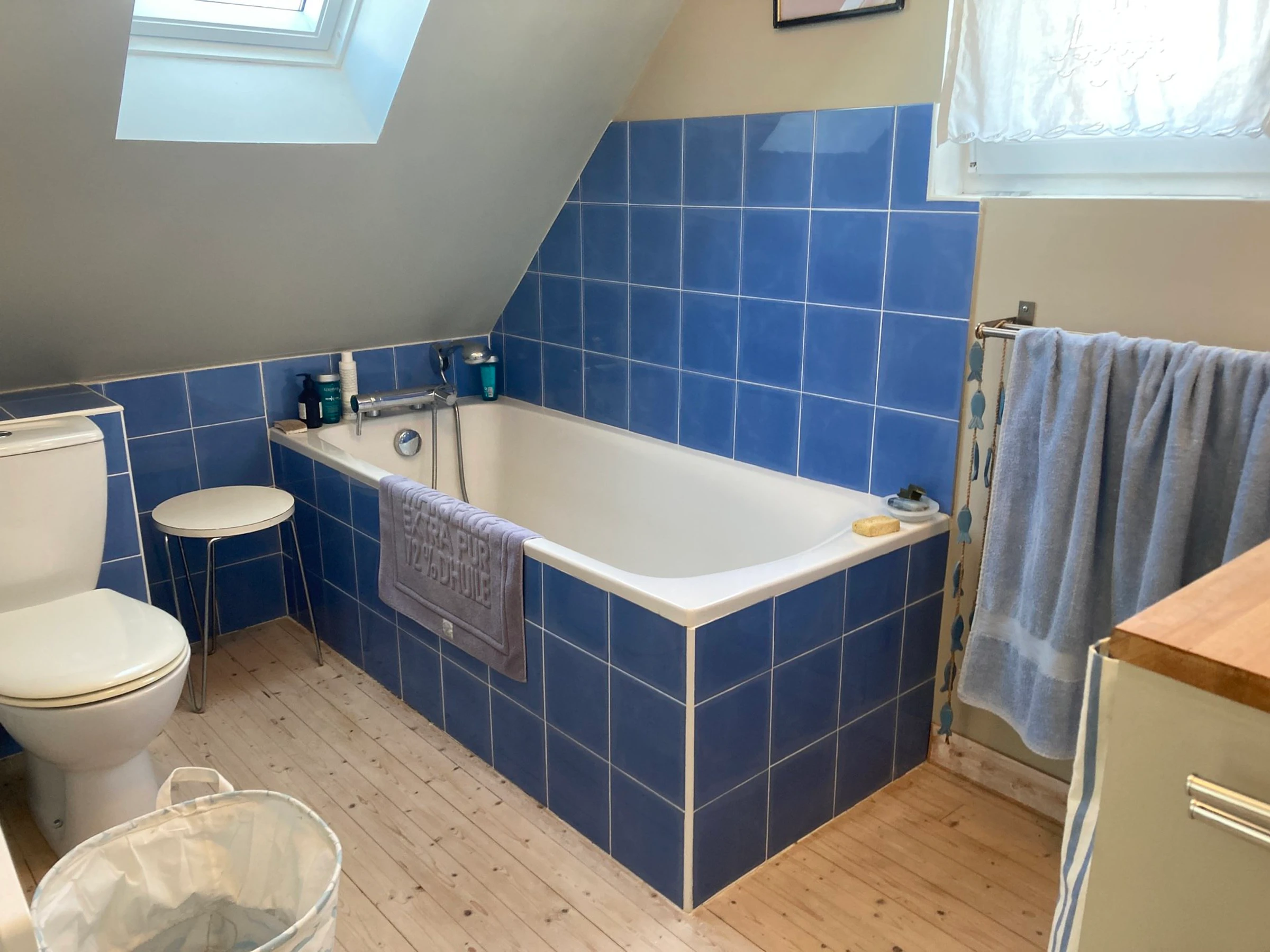 - Une salle de bain (5.4 M²) avec baignoire, lavabo et WC.