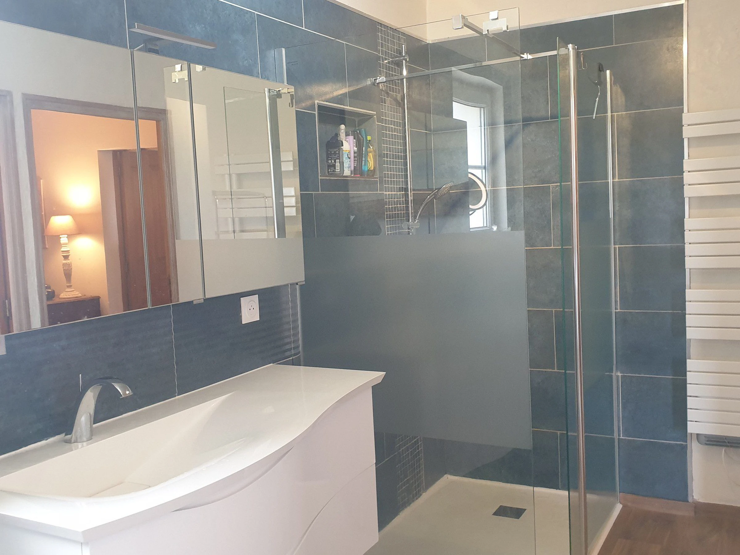 - Une chambre indépendante (22M²) avec accès par la terrasse avec 2 lits en 80x200cm accolés, une télévision et une salle d'eau attenante (8.5M²) avec douche, double vasque et un WC.