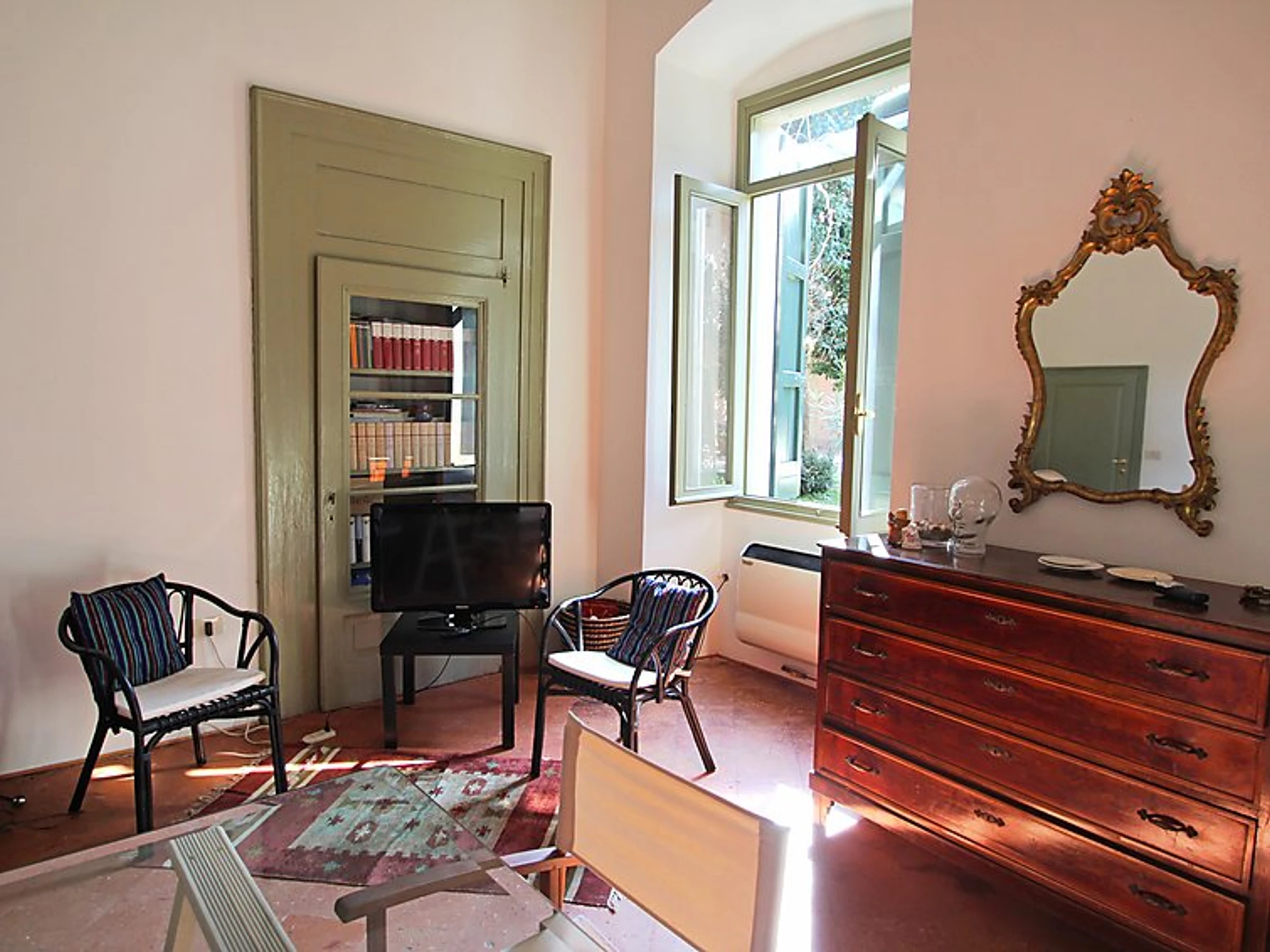 3-room apartment 100 m2, on the ground floor. Antique and tasteful furnishings: living/dining room with TV. Exit to the garden. 2 double bedrooms. Kitchen (2 hot plates, microwave). Shower/bidet/WC. Natural stone floors. Facilities: washing machine. Please note: private entrance. Available on site with supplement: Extra bed 20.0EUR per day Mandatory extra services on site: Final cleaning 20.0EUR per person, Local tax 0.5EUR per person/day