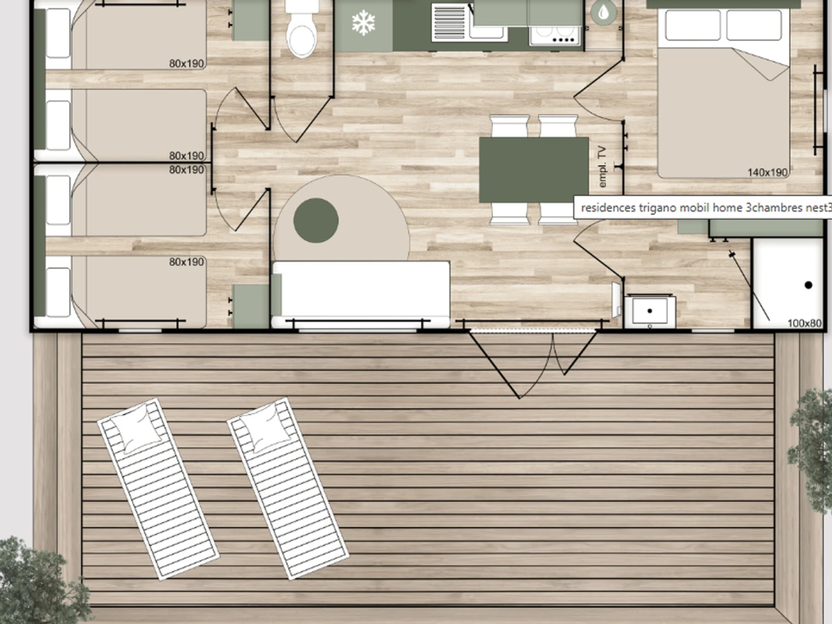 35m² mobile home for 6 people: