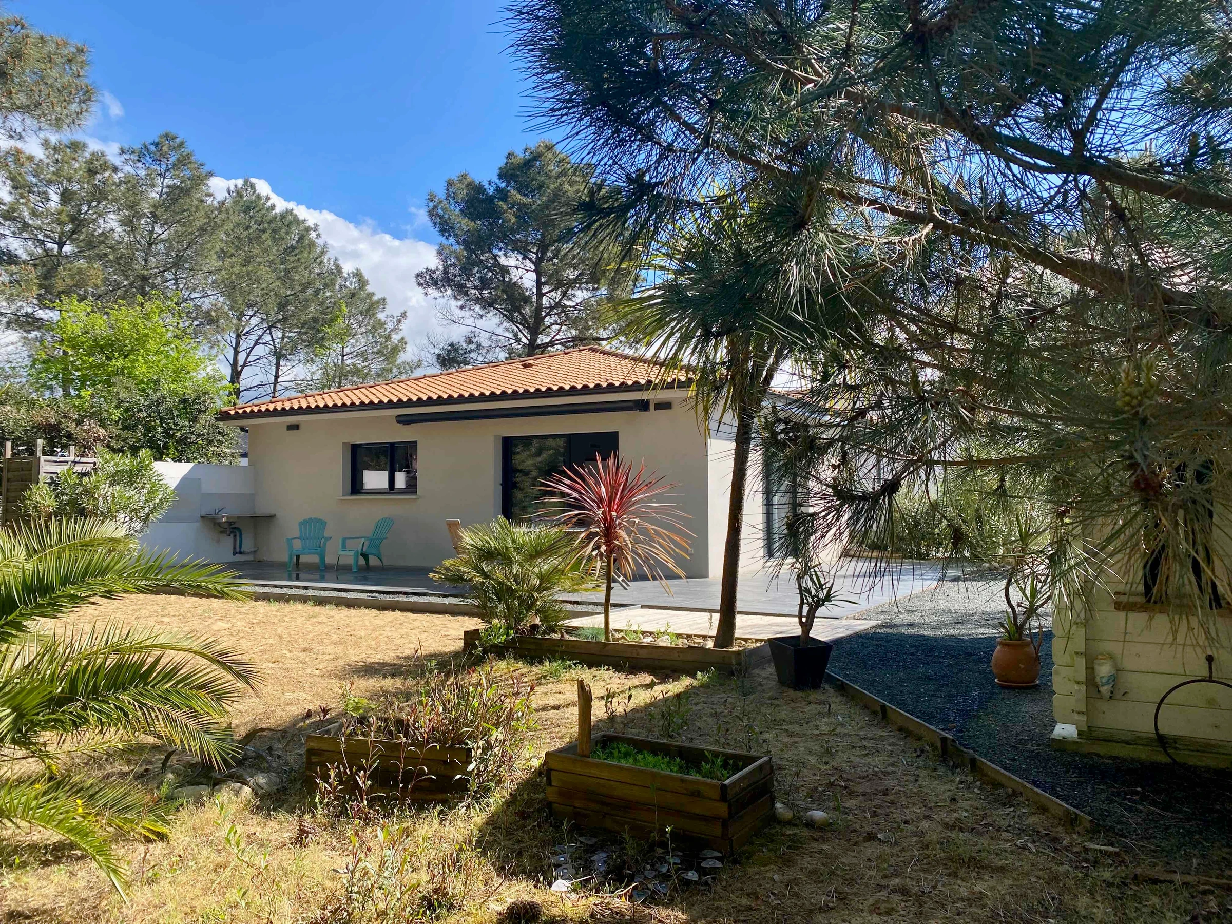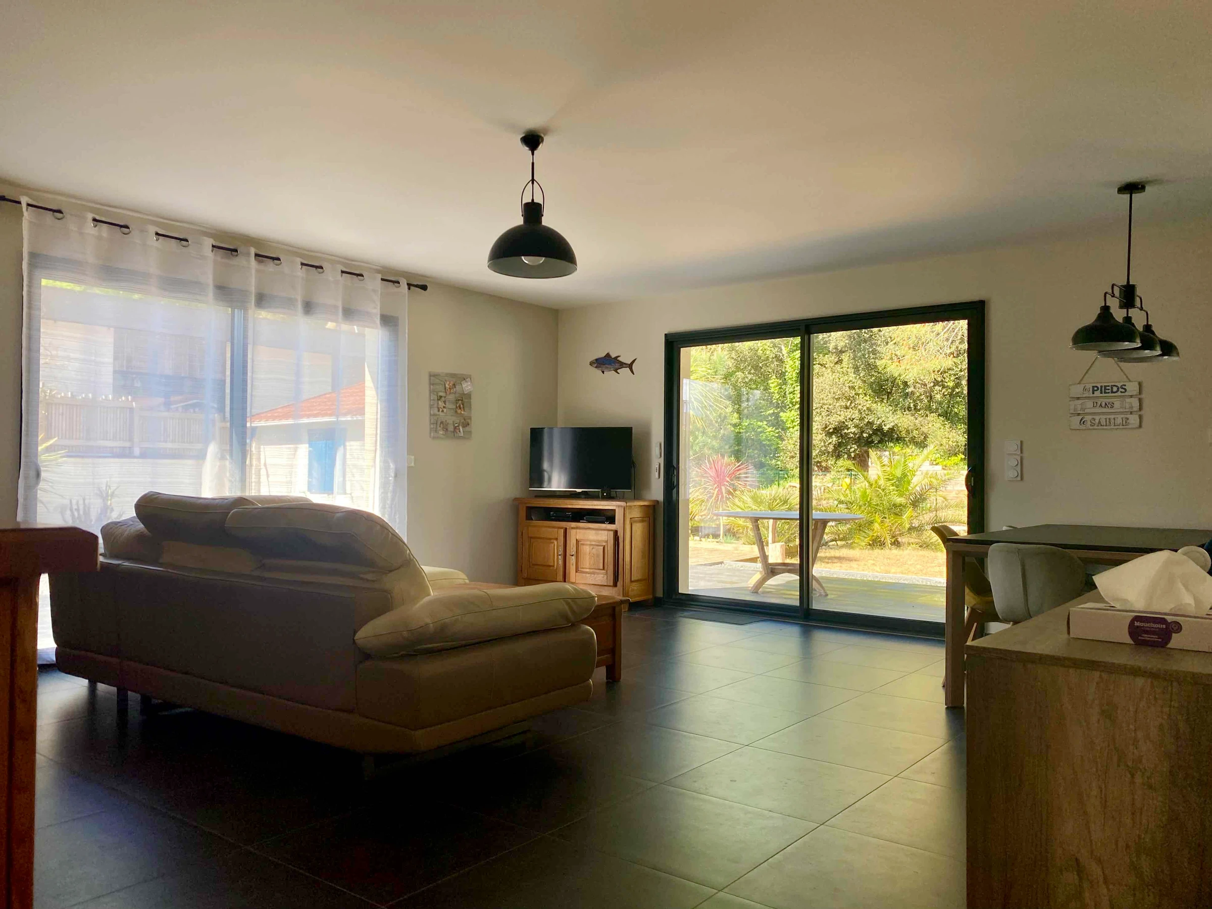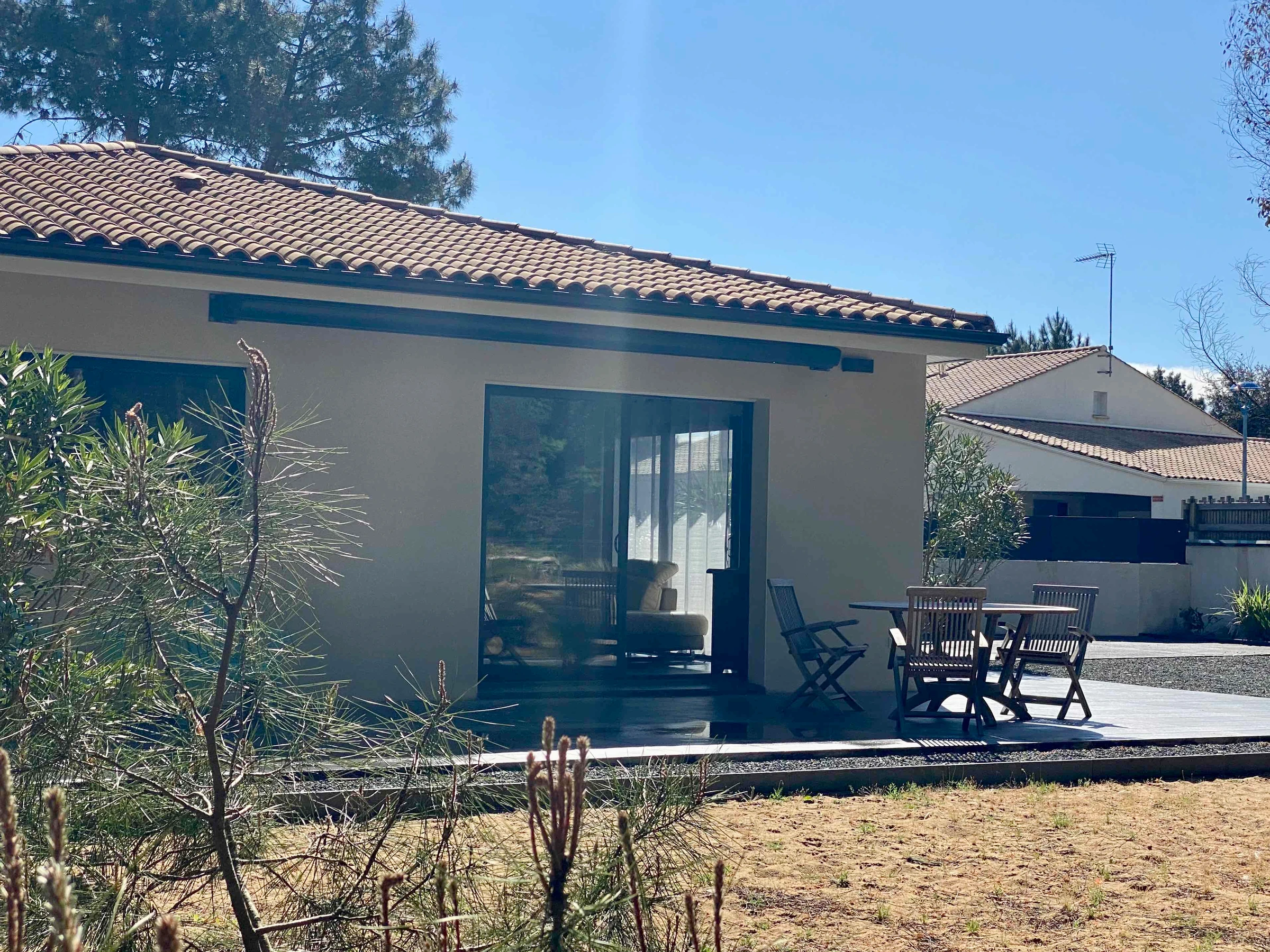 The single-story house is located in Longeville-sur-Mer, on the edge of the forest and very close to Avenue de la Plage, renowned for its stretches of fine sand and its popular surf spot. It is situated in a quiet, residential area, offering an ideal environment for relaxation and holidays with family or friends.