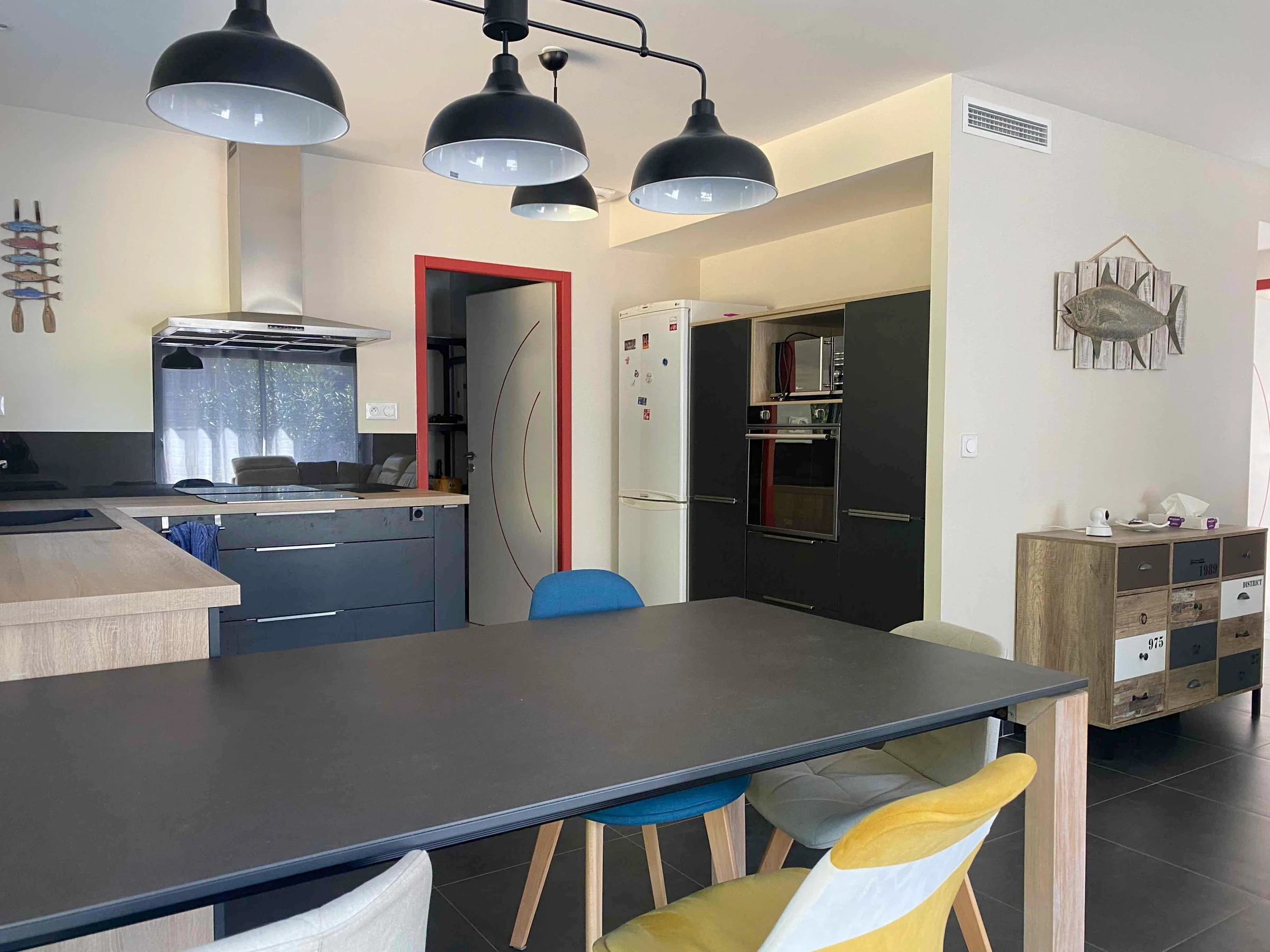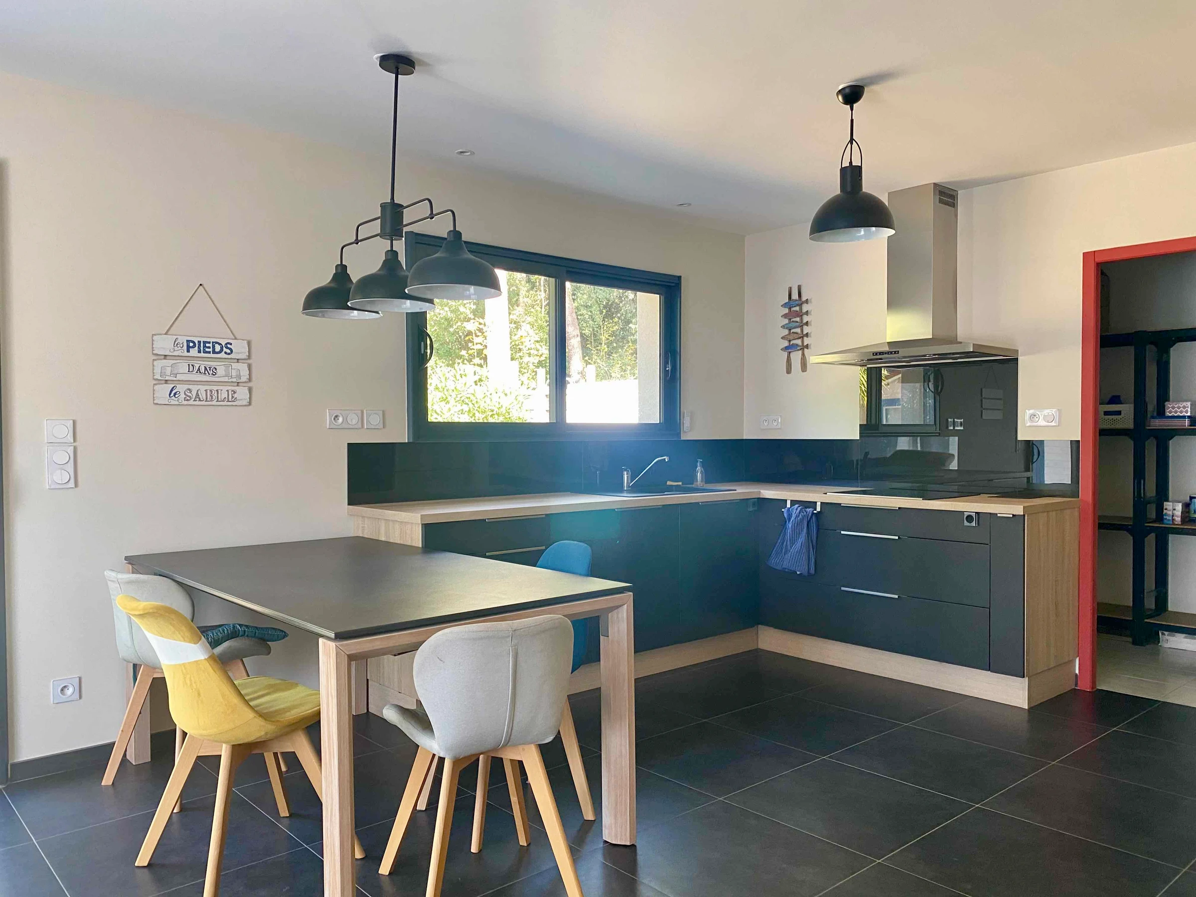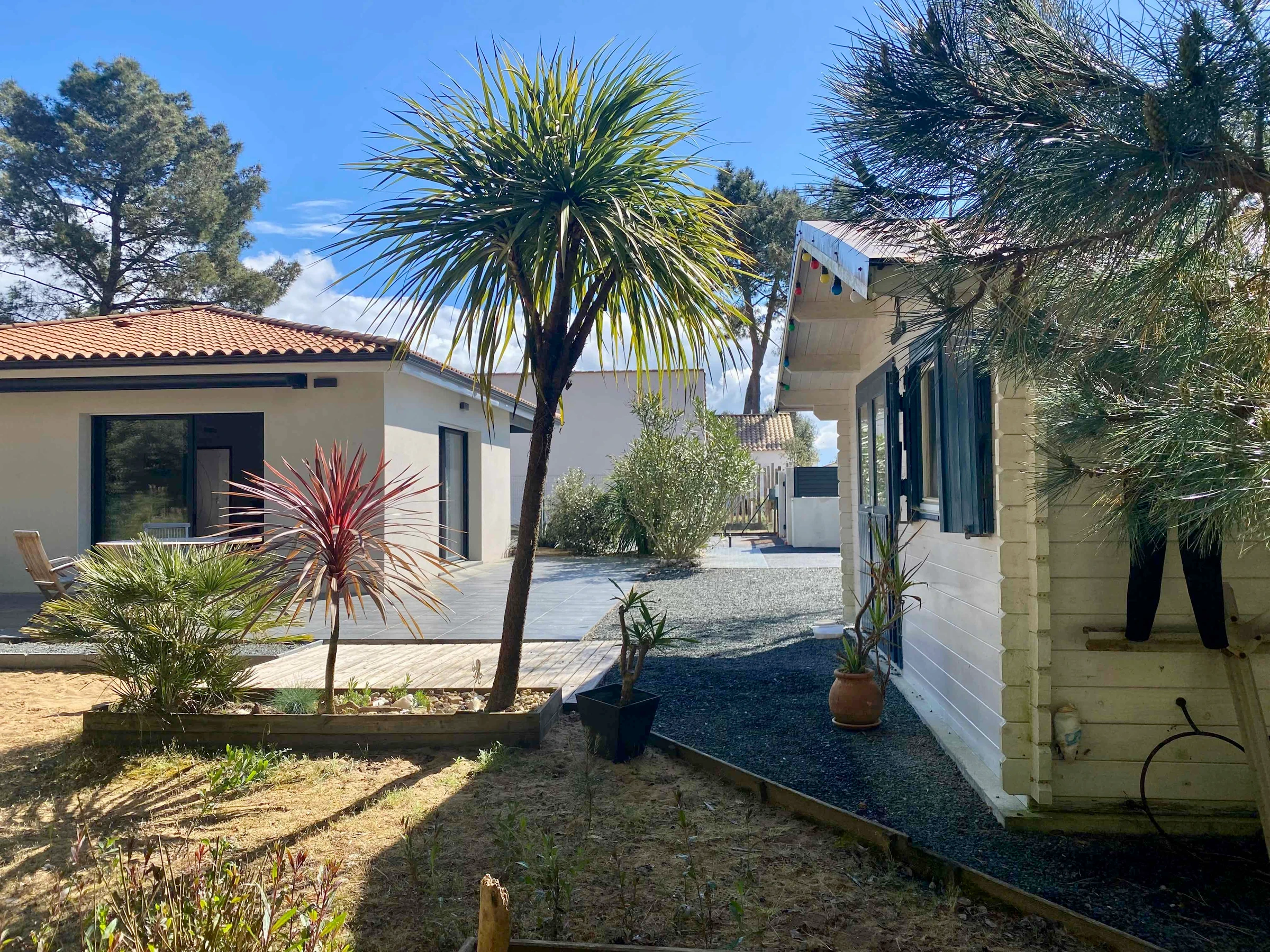 The single-story house is located in Longeville-sur-Mer, on the edge of the forest and very close to Avenue de la Plage, renowned for its stretches of fine sand and its popular surf spot. It is situated in a quiet, residential area, offering an ideal environment for relaxation and holidays with family or friends.