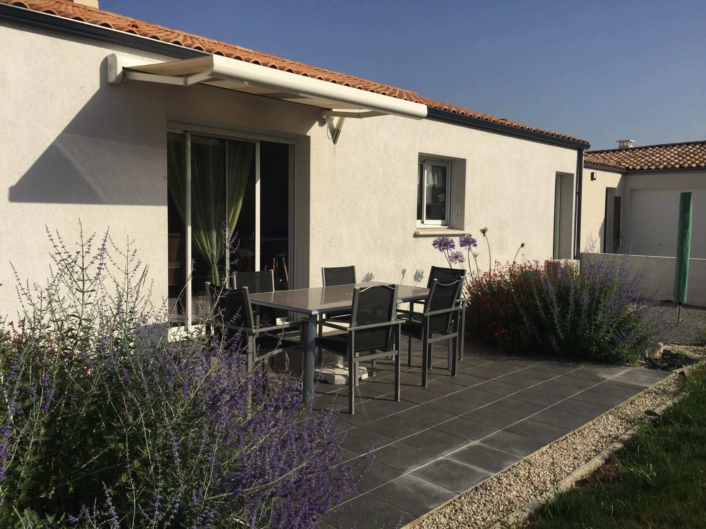 As soon as you arrive, you will be seduced by the comfort and conviviality of our house. The entrance, through a spacious hallway, leads you to the bright living room, where you will find a comfortable lounge area, a dining area and a fully equipped American kitchen with everything you need to prepare delicious meals, including induction hobs, an oven, a microwave and a dishwasher. A bay window opens onto the terrace equipped with garden furniture, an electric barbecue and an awning, ideal for outdoor meals and relaxing moments under the Vendée sun.