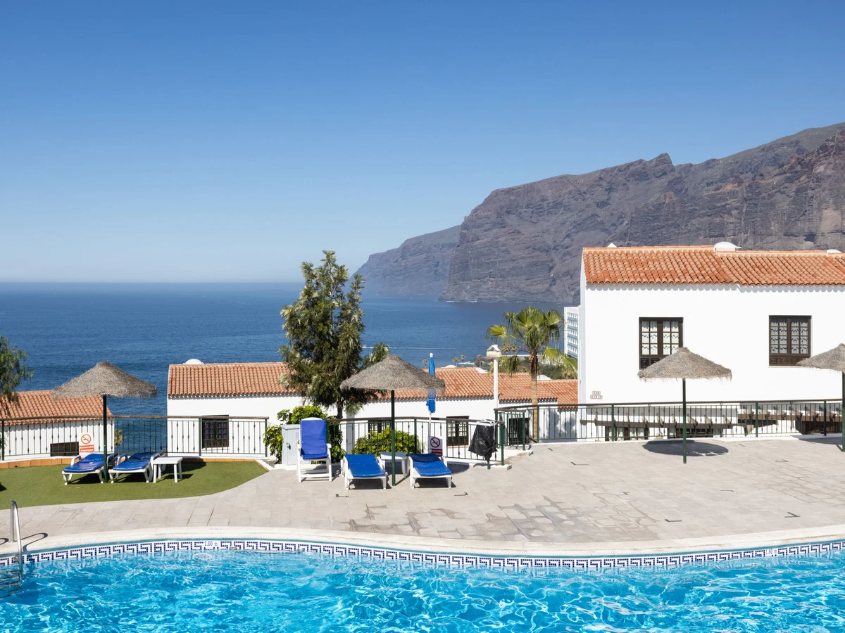 Holiday development "LAS ROSAS RESORT". In the centre of Puerto Santiago, in the residential district, excellent location: right in the centre but still quiet. For shared use: swimming pool secured (depth 85 - 210 cm, seasonal availability: [hidden] pool opening hours: 09:30-17:30 and 09:30-17:30). Children's pool, outdoor shower. In the complex: reception, bar. Supermarket 280 m, shopping centre, restaurant, bar, bakery, pub garden, bus stop 300 m, rocky beach "Charco de Isla Cangrejo" 2.3 km (small), diving center 2 km. Marina 2.1 km, sailing school 2.1 km. Nearby attractions: Acantialdo de los Gigantes 2.1 km, Mirador Archipenque 1.1 km, Playa de la Arena 1.5 km. Hiking paths: Mirador de Masca 19.4 km.