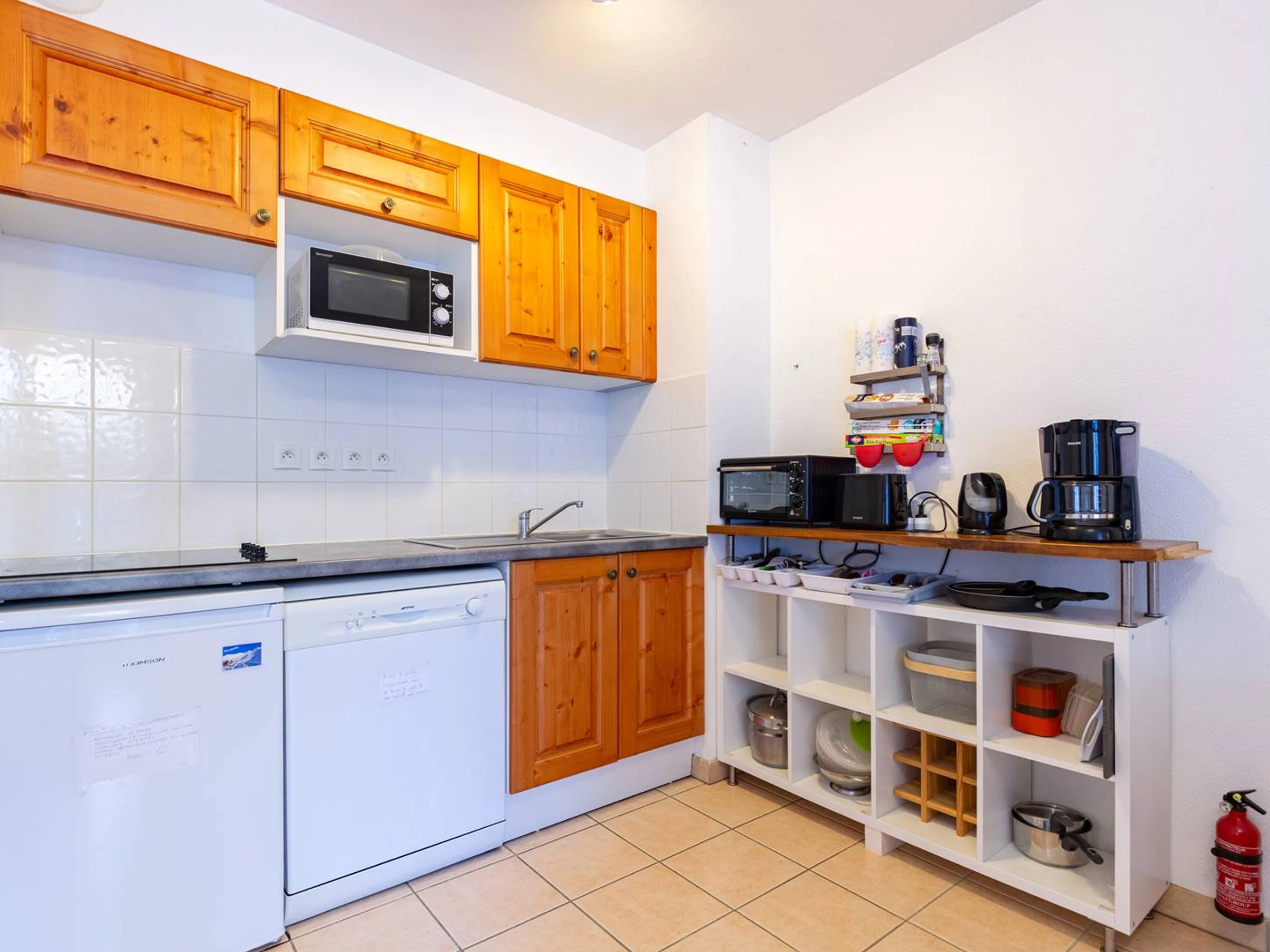 Cuisine équipée ouverte sur le séjour 2 couchages dans le canapé lit