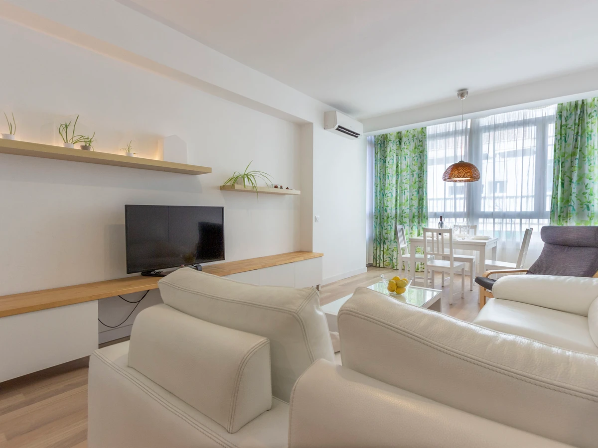 3-room apartment 80 m2 on 3rd floor. Tasteful and cosy furnishings: living/dining room with digital TV, flat screen and air conditioning. 1 room with 1 french bed (150 cm), bath/bidet/WC and air conditioning. 1 room with 1 pull-out bed (2 pers. 2 x 90 cm), air conditioning. Kitchen (oven, dishwasher, 4 ceramic glass hob hotplates, microwave, freezer). Bath/bidet/WC. Heating. Facilities: washing machine. Internet (WiFi, free). [hidden] // Reg. Nr.: ESFCNT00002810200008241600000000000000000000000000003