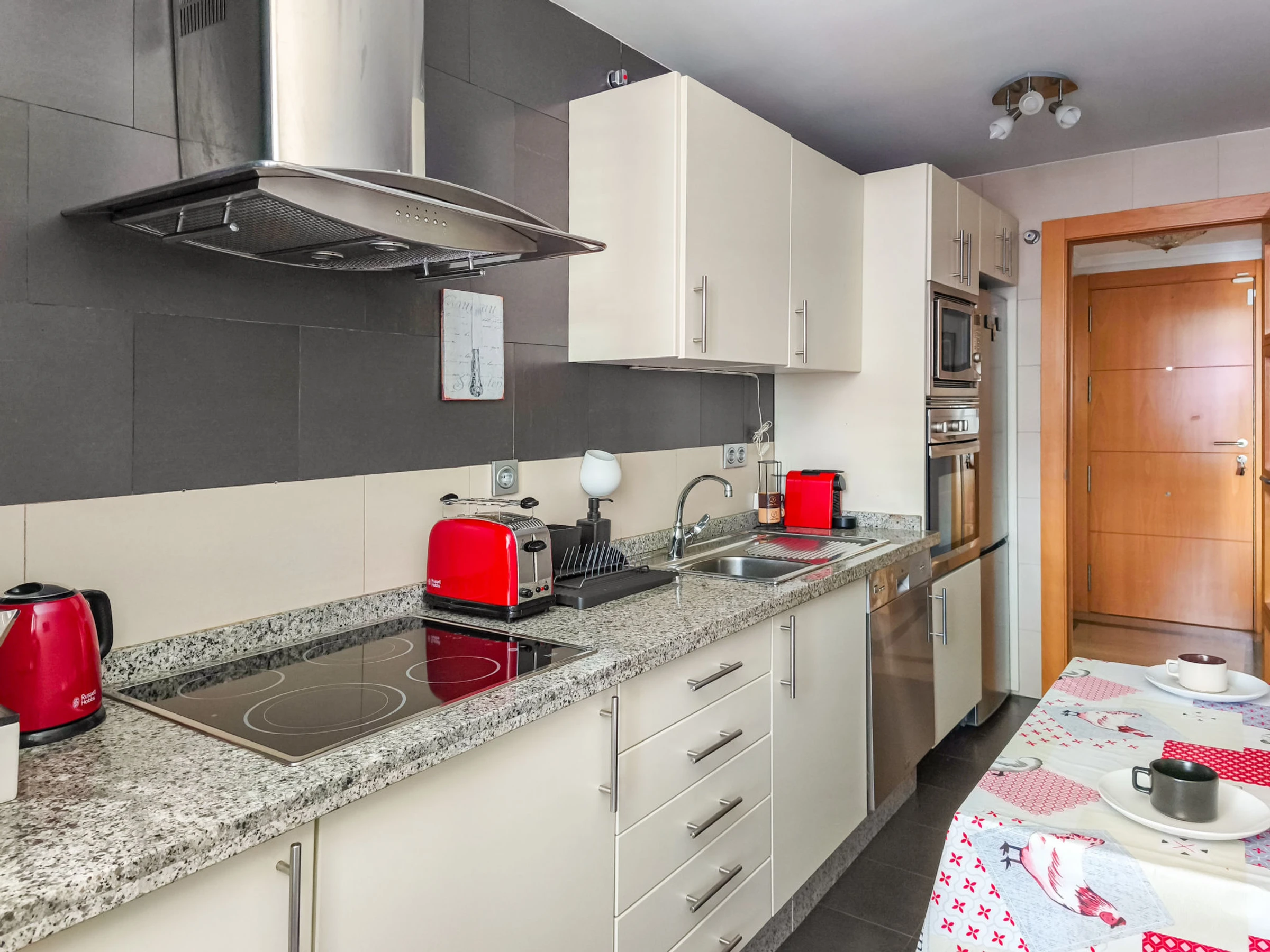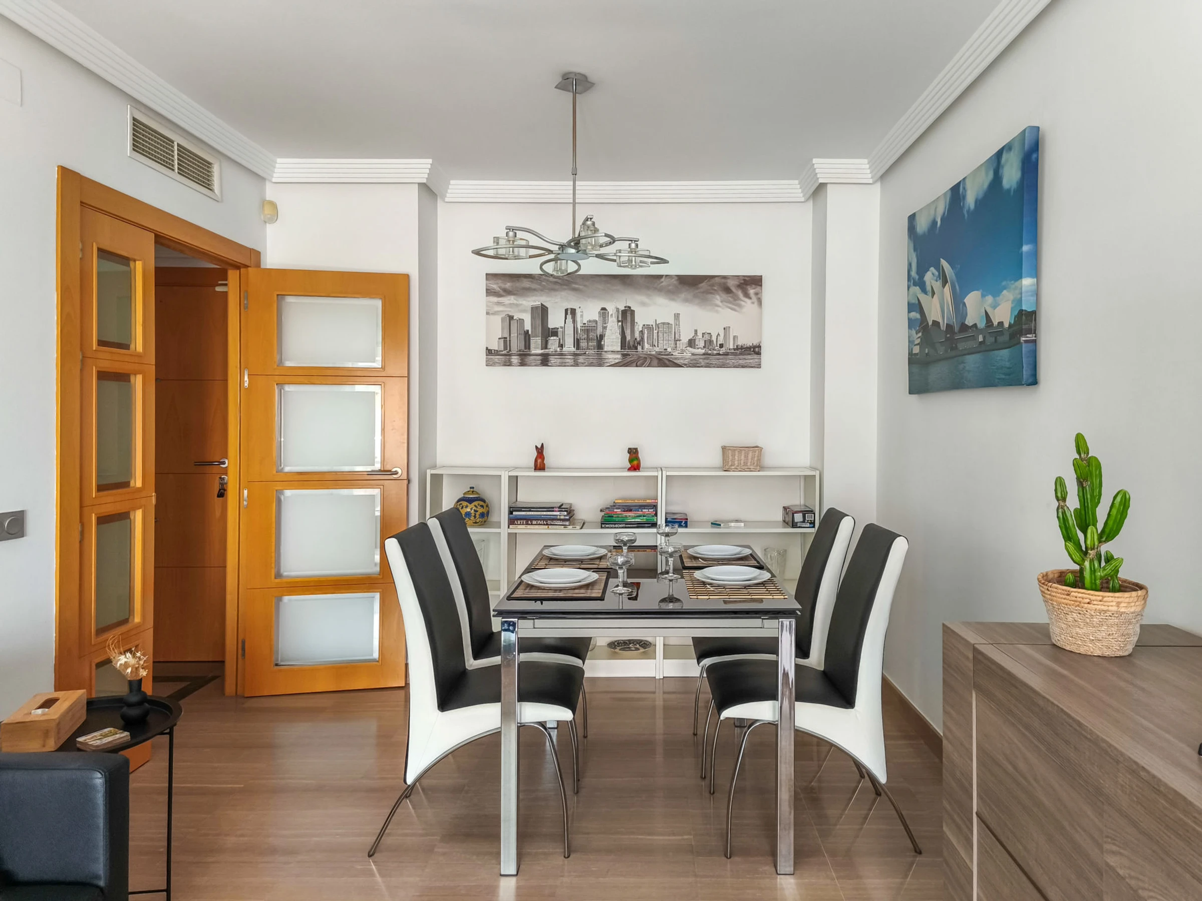 Modern, beautiful apartment block "Malaga Pacifico", built in 2007. On the outskirts, 2.3 km from the centre of Málaga, in a sunny position, excellent location: right in the centre but still quiet, 20 m from the sea, 20 m from the beach, road to cross. In the complex: lift. Communal covered parking. Shop 50 m, supermarket 100 m, restaurant, bar 20 m, pedestrian zone 100 m, pub garden 20 m, bus stop "Pacifico" 20 m, railway station "Victoria Kent" 1.7 km, underground station "La Paz" 1.3 km, sandy beach "Huelin" 20 m, 250 m. Children's playground 100 m. Nearby attractions: Museo automovilistico, Museo Thyssen, Museo Picasso, CAC Malaga. The owner does not accept any youth groups. Please note: airfield 8 km from the property. Neighbourhood highly sensitive to noise. Quietness and good behaviour expected.