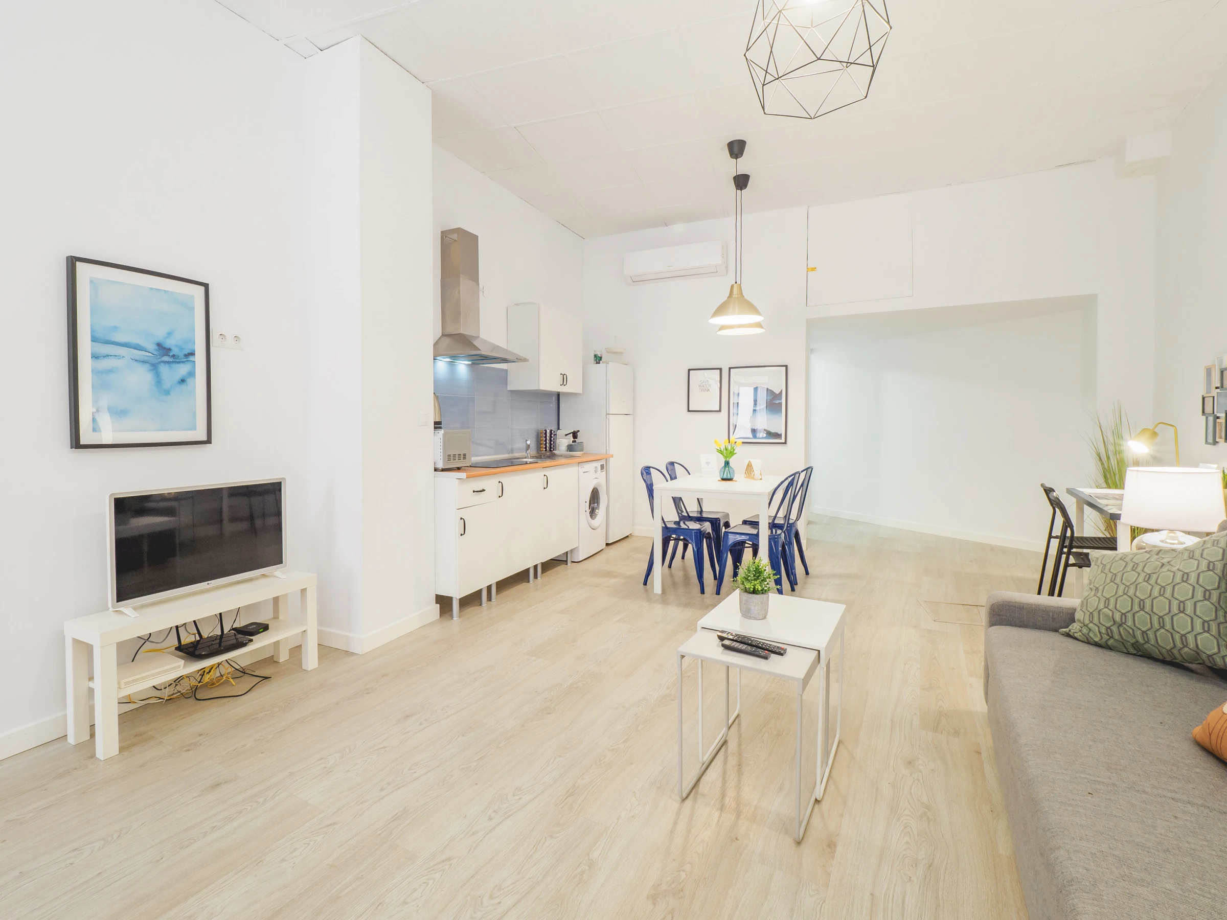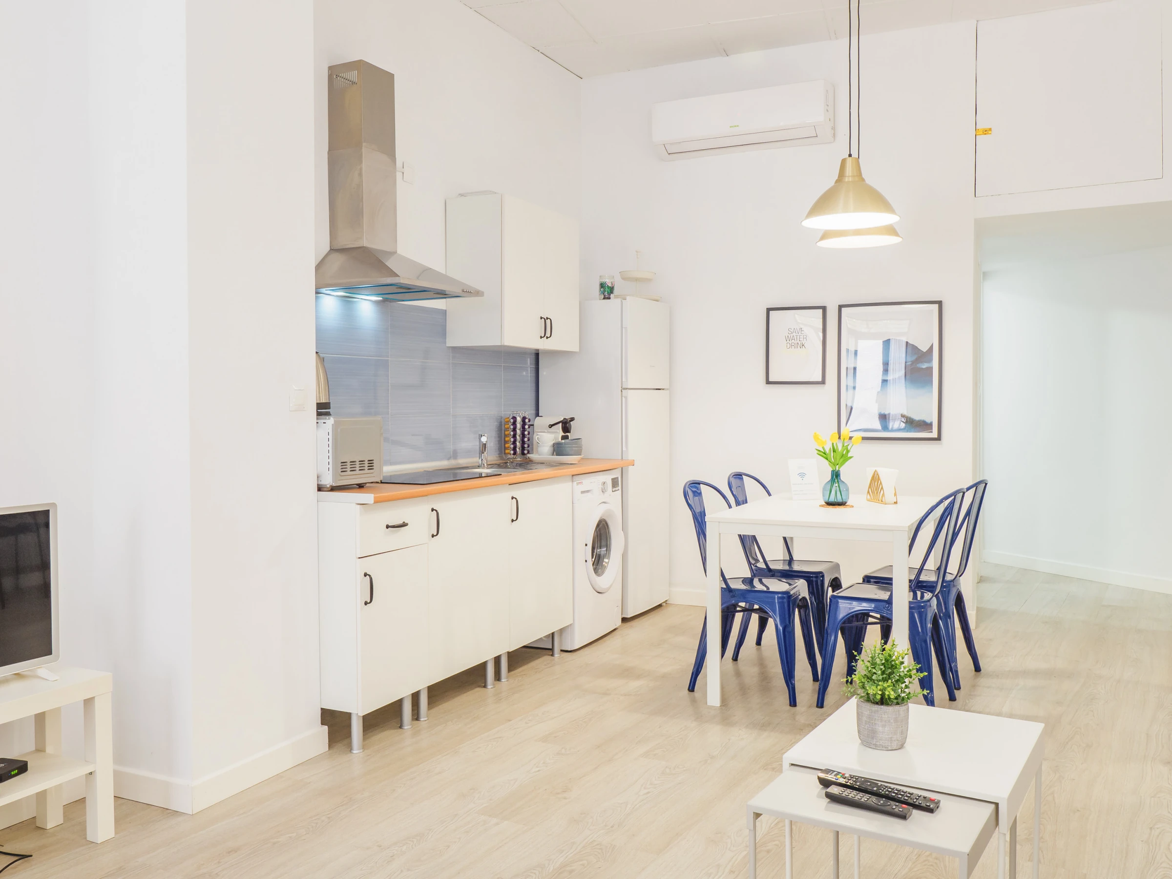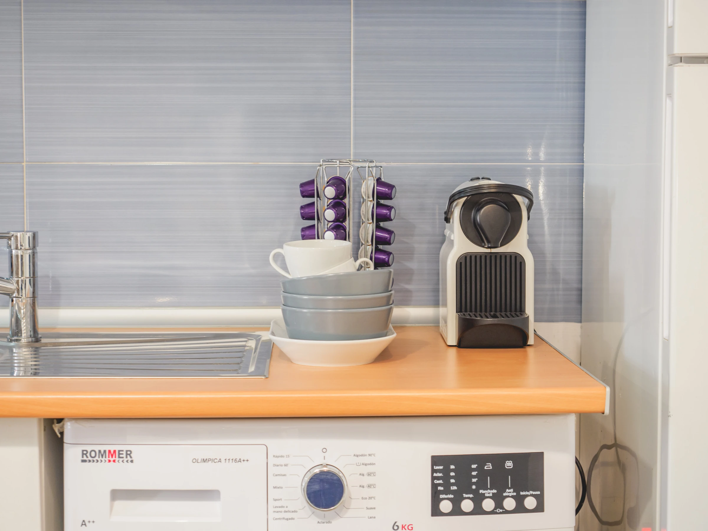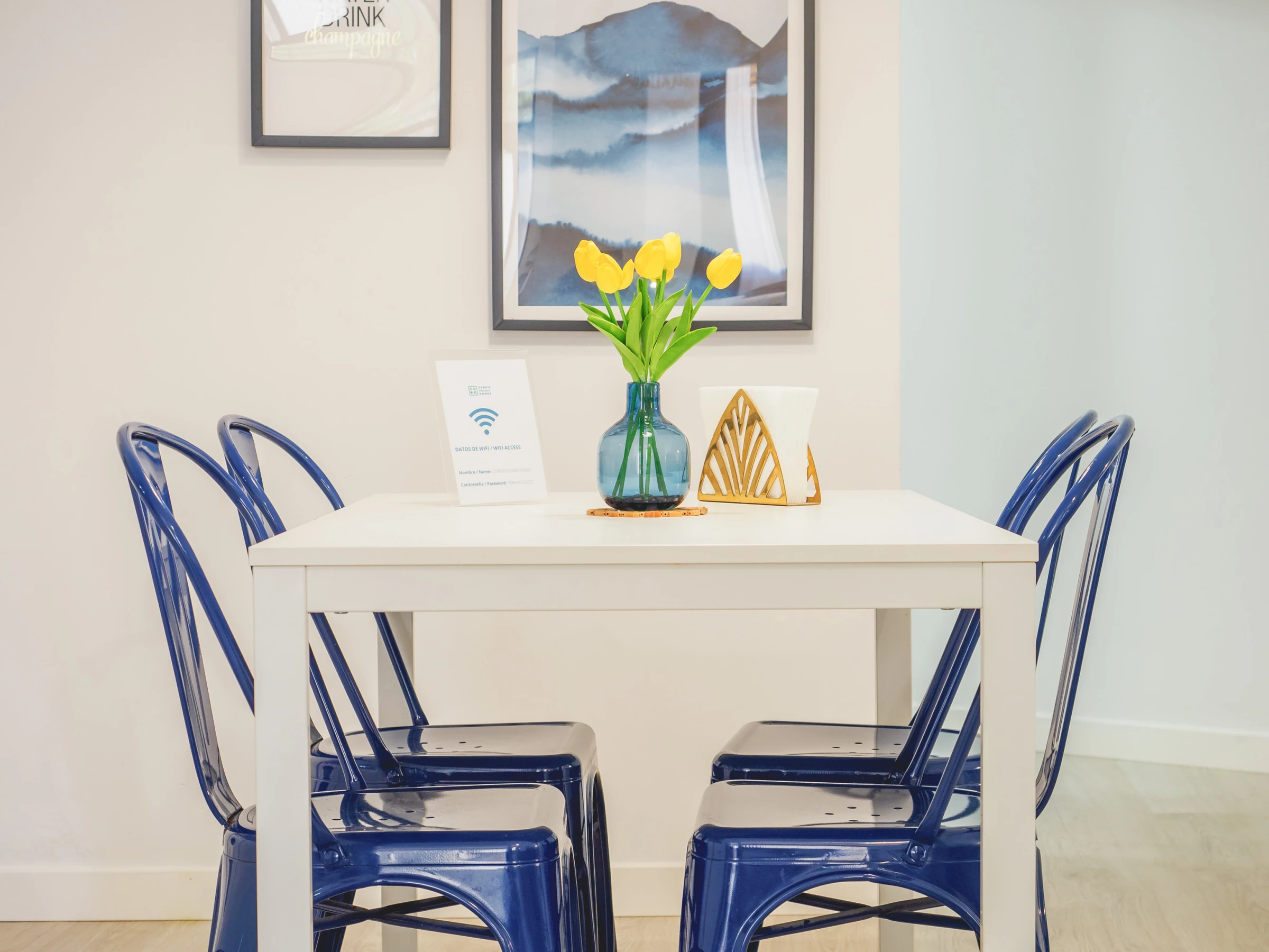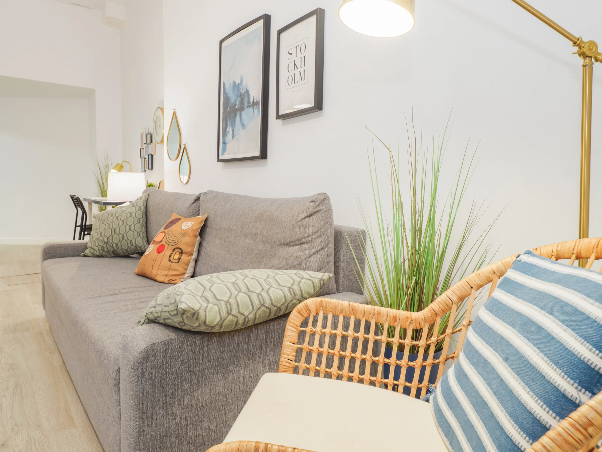 This apartment is located on a ground floor with direct access from the street, ideal for those looking for comfort and easy entry. Its open design integrates a living-dining room with a double sofa bed, perfect for up to 4 people, and a fully equipped American kitchen with modern appliances: induction, fridge, microwave, oven, washing machine, coffee maker, toaster, kettle, and juicer. Everything is designed so you can prepare your meals without complications. Additionally, it has a comfortable desk and high-speed fibre optic wifi connection (1GB/s symmetric), ideal for teleworking or enjoying your free time connected.