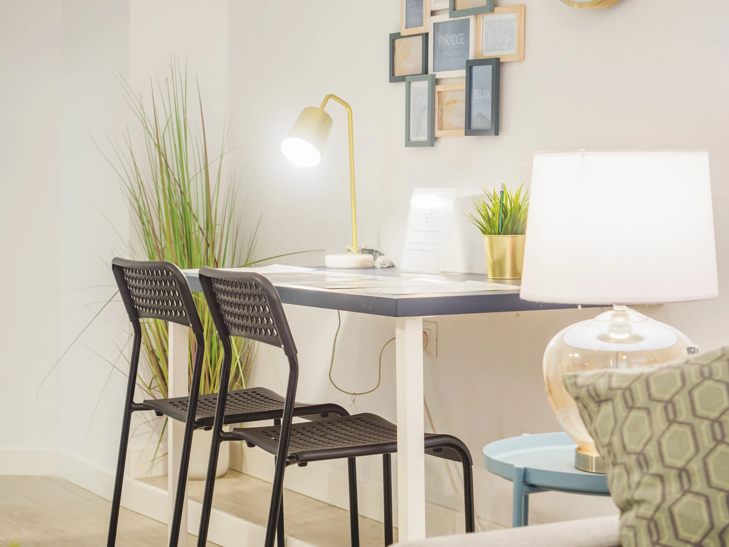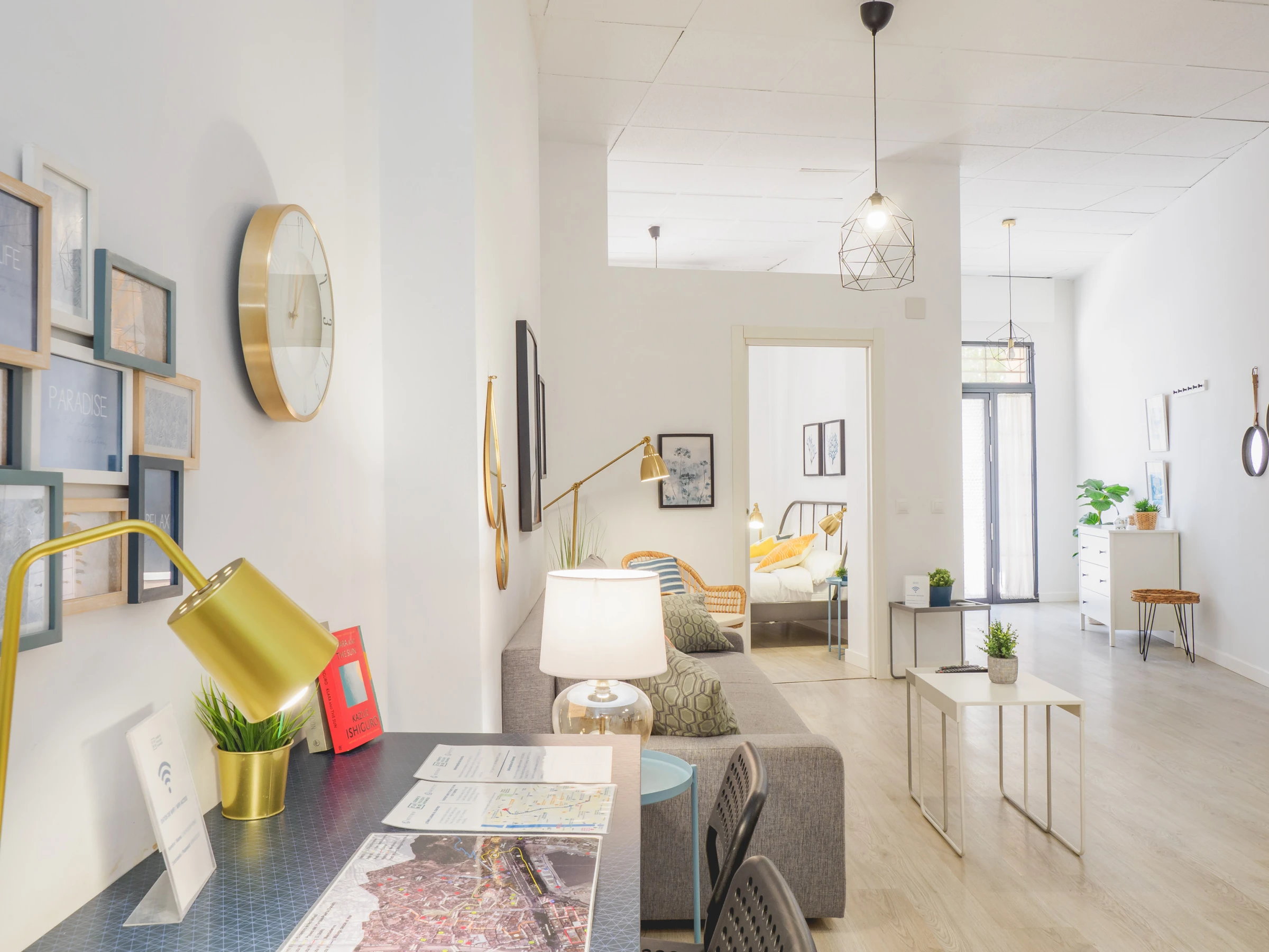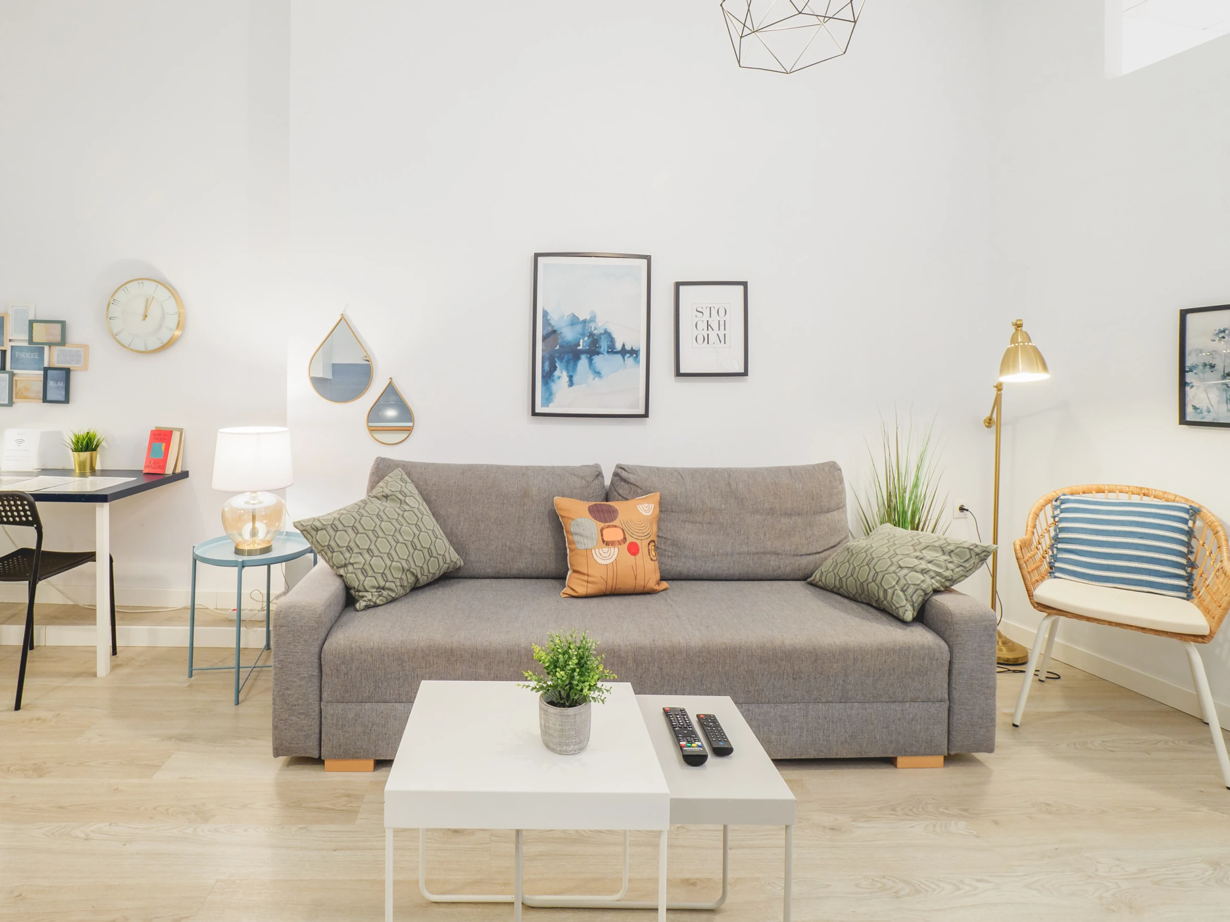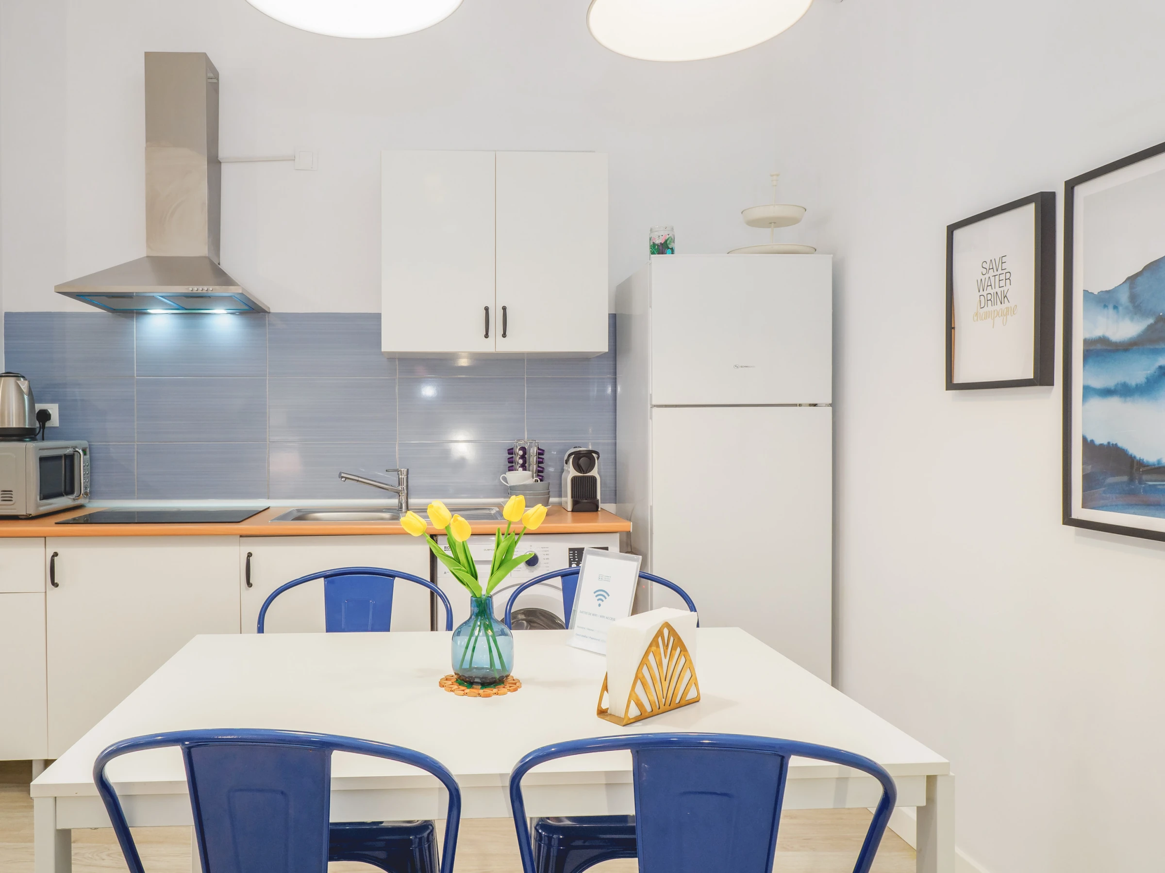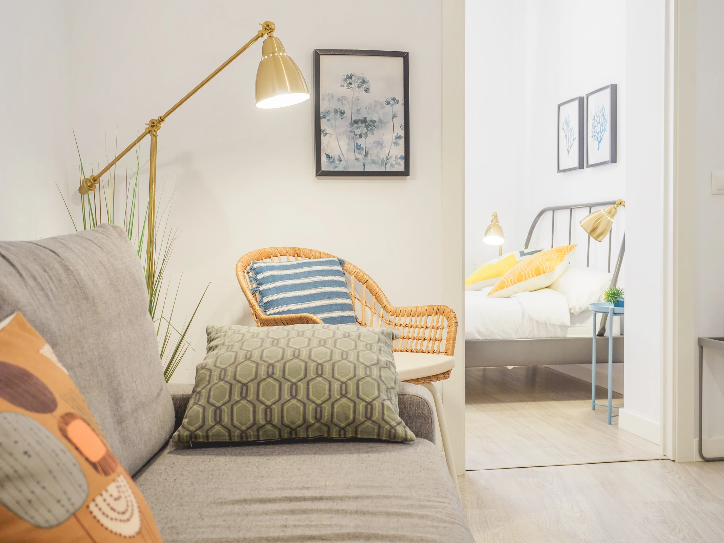 This apartment is located on a ground floor with direct access from the street, ideal for those looking for comfort and easy entry. Its open design integrates a living-dining room with a double sofa bed, perfect for up to 4 people, and a fully equipped American kitchen with modern appliances: induction, fridge, microwave, oven, washing machine, coffee maker, toaster, kettle, and juicer. Everything is designed so you can prepare your meals without complications. Additionally, it has a comfortable desk and high-speed fibre optic wifi connection (1GB/s symmetric), ideal for teleworking or enjoying your free time connected.