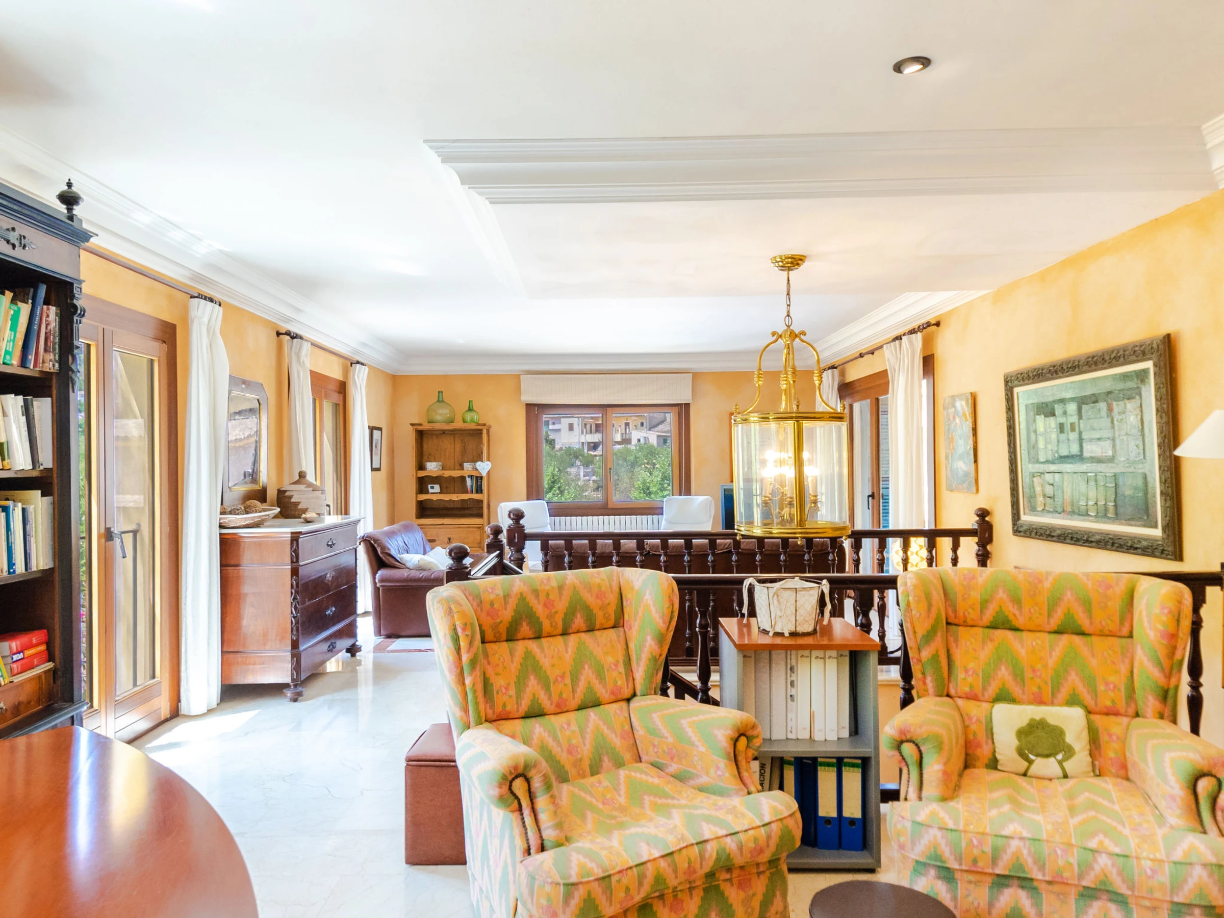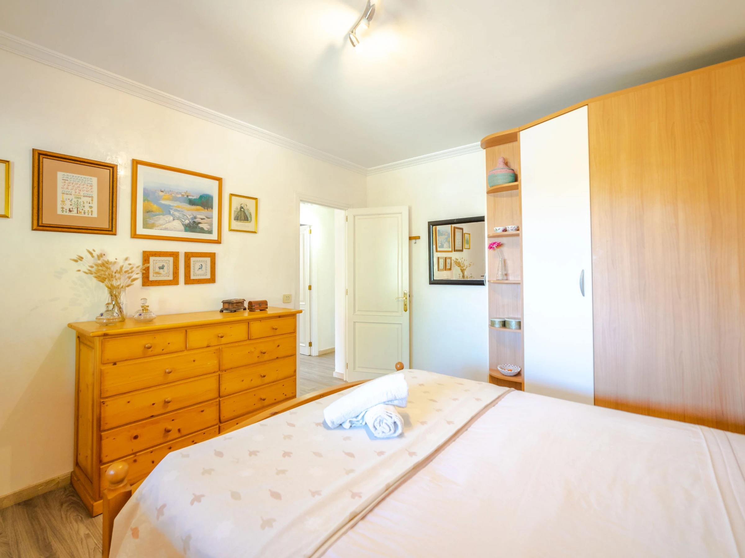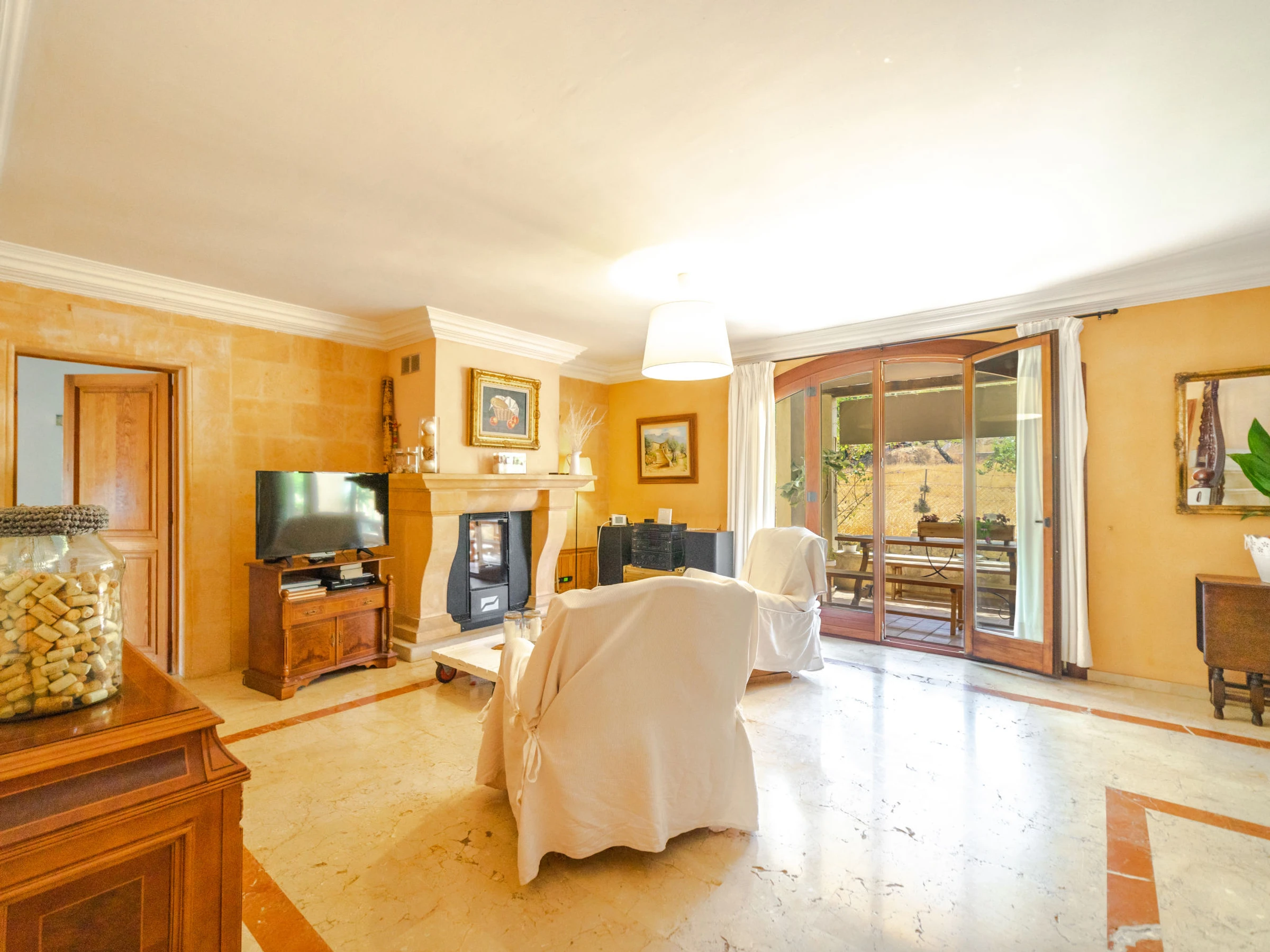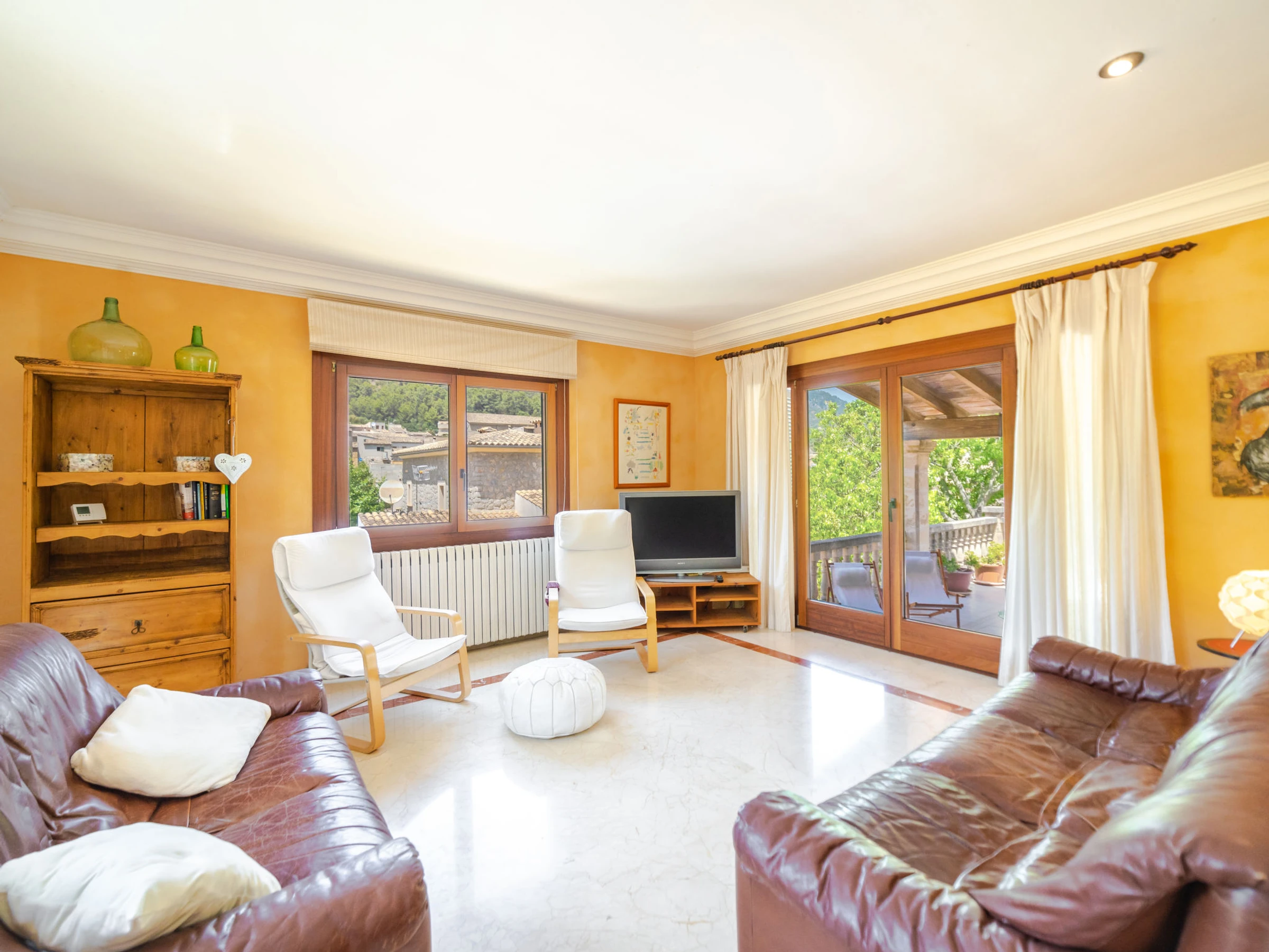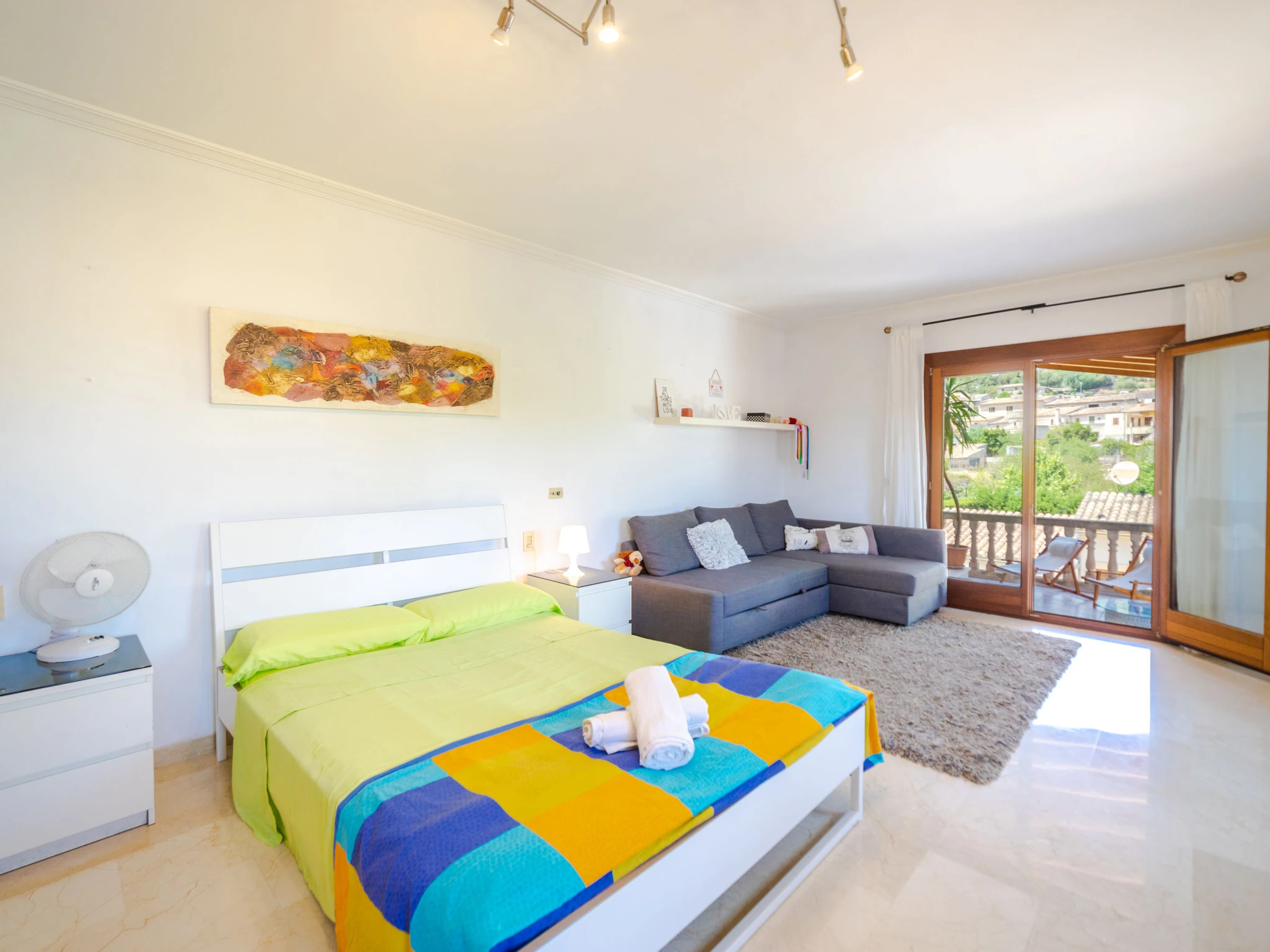 "Son Apiana", 6-room house 180 m2 on 2 levels. Object suitable for 8 adults. Spacious and bright, comfortable and cosy furnishings: large living room with panoramic window with open-hearth fireplace, digital TV, flat screen, radio and hi-fi system. Exit to the patio. 1 large double bedroom with panoramic window with 1 french bed (150 cm, length 190 cm), fan. 1 large double bedroom with panoramic window with 1 french bed (150 cm, length 190 cm), fan. Kitchen (oven, dishwasher, 3 ceramic glass hob hotplates, microwave, freezer, electric coffee machine) with dining table. Exit to the patio. Bath/shower/WC. Upper floor: open large lounge with panoramic window with open-hearth fireplace, library, TV, flat screen, air conditioning and forced-air heating. Exit to the terrace. 1 room with Dressing room with 1 sofabed and 1 french bed (150 cm, length 190 cm), air conditioning and forced-air heating. Exit to the terrace. 1 room with panoramic window with 2 beds (90 cm, length 190 cm), fan. Bath/bidet/WC with corner bath. Large terrace, large patio, lawn, porch. Terrace furniture, balcony furniture, barbecue, deck chairs, covered balcony. View of the mountains, the countryside and the resort. Facilities: washing machine, iron, children's high chair, baby cot, hair dryer. Internet (WiFi, free). Reserved parking (fenced) at the house. Suitable for families. 1 pet/ dog allowed. [hidden]