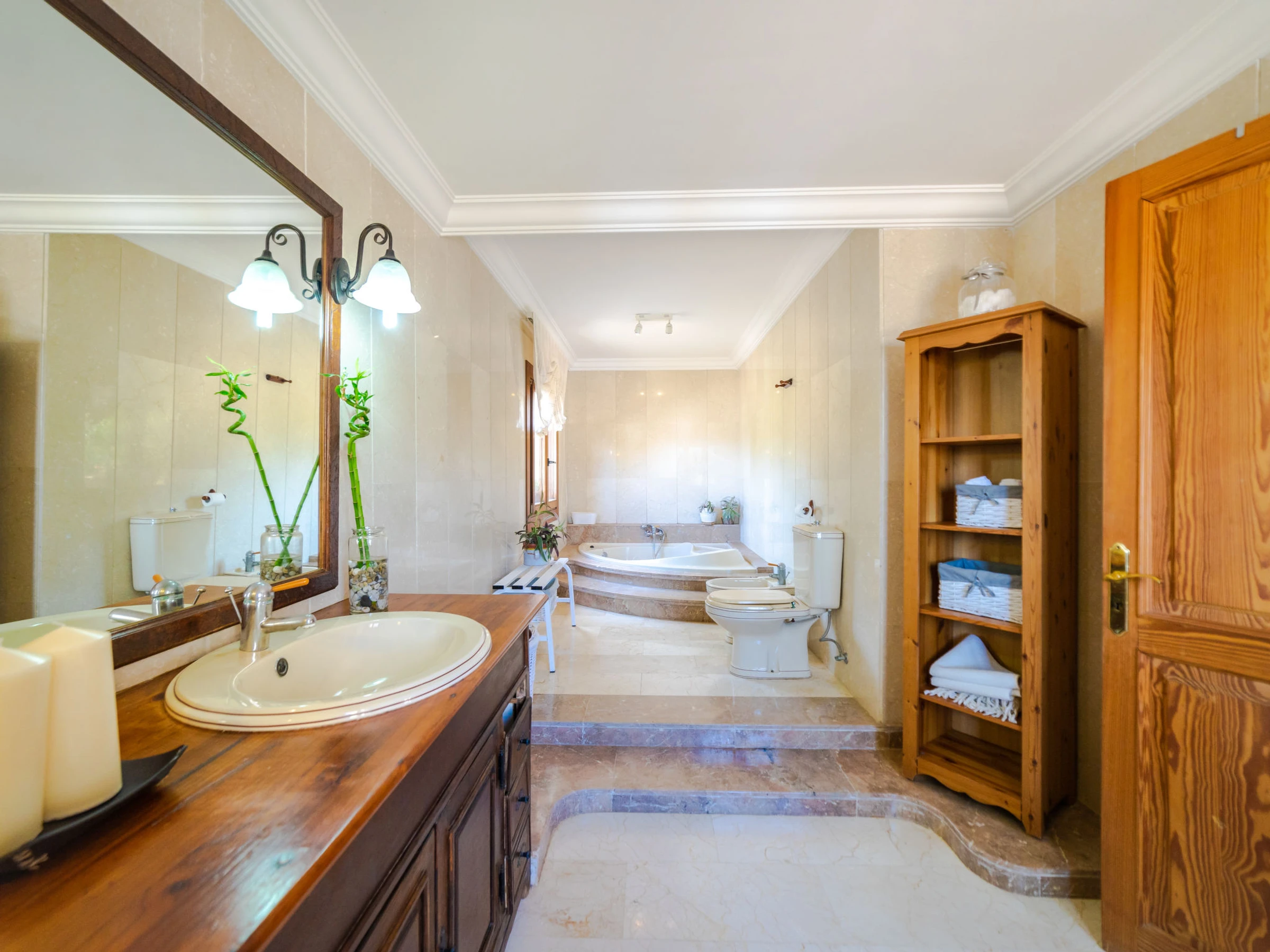 Very large, beautiful, cosy house "Son Apiana", 2 storeys. In the centre of Mancor de la Vall, in a quiet, sunny position, 500 m from the edge of the forest, 30 km from the sea. Private: large garden (fenced) with lawn and wildlife garden, swimming pool angular (8 x 4 m, seasonal availability: [hidden] - [hidden] Outdoor shower, patio, arbour, pergola, garden furniture, barbecue. In the house: internet access, WiFi, central heating system, air conditioning, washing machine. Parking at the house on the premises. Grocery 200 m, supermarket 300 m, shopping centre 20 km, restaurant 350 m, bar 250 m, bakery 200 m, pub garden 250 m, 2 minute walk to the centre, bus stop 500 m, railway station "Inca" 5 km, ferry "Alcúdia" 29 km, sandy beach "Port d'Alcúdia" 29 km, rocky beach "Alcúdia" 30 km. Sports harbour 29.5 km, marina 29.5 km, golf course (18 hole) 29 km, surf school 28.5 km, tennis 400 m, riding stable 4 km, walking paths from the house, cycle lane 500 m, children's playground 400 m. Nearby attractions: Santuario de Lluc, Escorca. 15 km, Pueblos: Selva,Caimari,Moscari,Biniamar 5 km, Festival Park(shopping center, cinemas). 25 km, Restaurant Sa Piscina. (Mancor). 450 m, Restaurant María Salinas (Mancor). 250 m. Hiking paths: Serra de Tramuntana, Puig de Massanella. Monasterio de Santa Llucía - Biniarroi. Please note: suitable for families, suitable for seniors. Object suitable for 8 adults groups of teenagers on request only. Airfield 43 km from the property.
