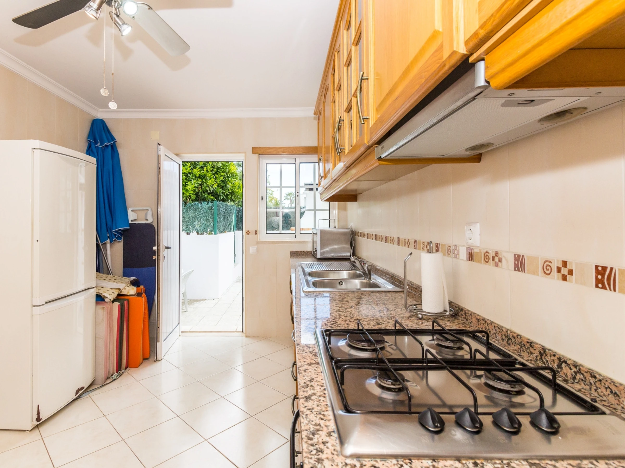 - Ground floor: large living-dining room, bathroom with bath, 1 bedroom with 1 double bed and 1 single bed and fitted kitchen. The kitchen and bedroom lead to the extraordinary exterior, facing north, east and west, where you'll find the pool area with sun loungers, barbecue, sink, table and chairs, and parasol, perfect for enjoying al fresco meals.