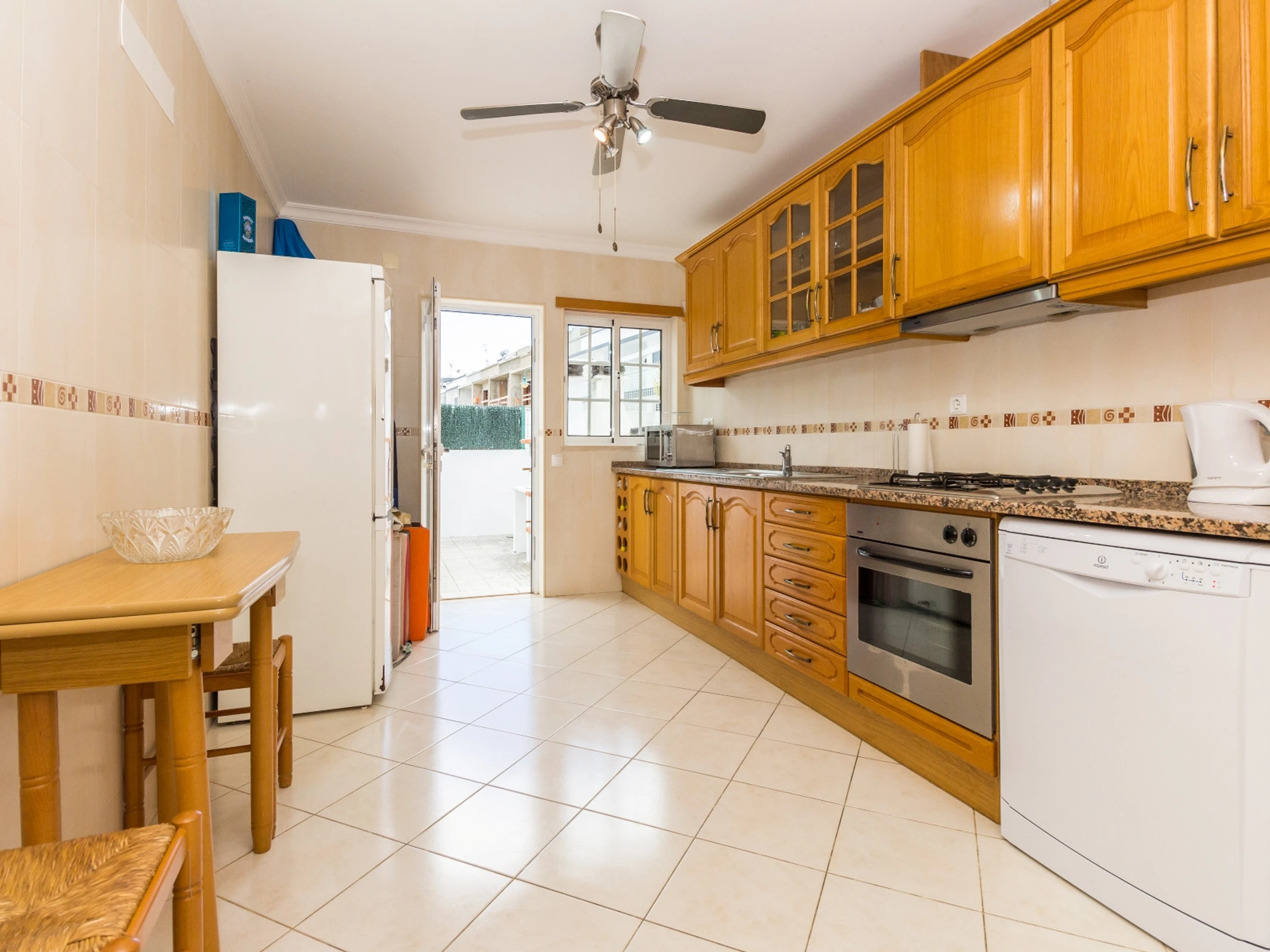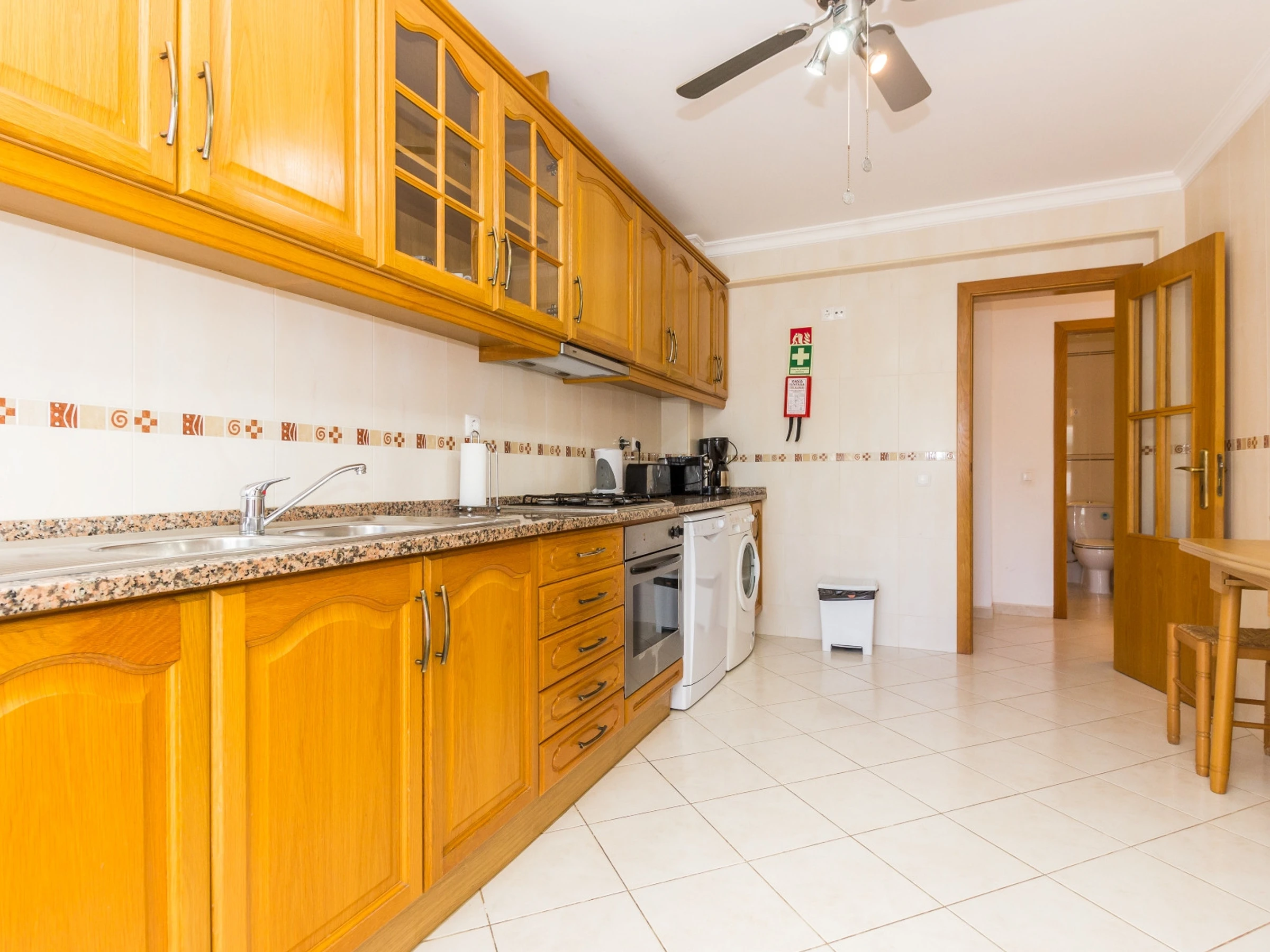 The kitchen is equipped with: fridge freezer, hob, oven, toaster, microwave, toaster, DOLCE GUSTO capsule coffee machine, filter coffee machine, kettle, dishwasher and washing machine.