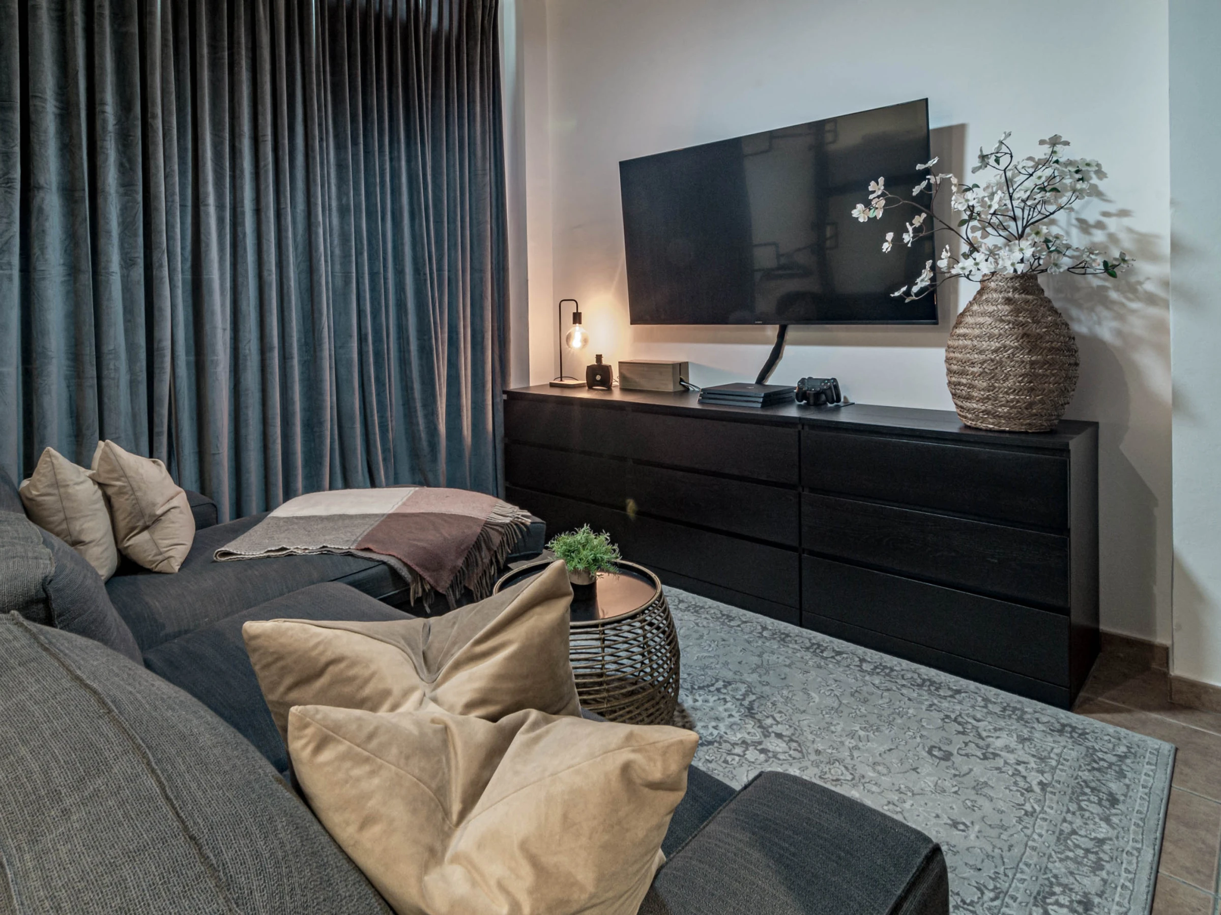 Additionally, we provide a great number of amenities for you so that you don't have to worry about buying it before arrival. These include hand soap, shower gel, shampoo, dishwashing tablets, 2 rolls of toilet roll for each bathroom, sponge, dishwashing soap, wipes, and towels. Not only does this apartment offer great convenience, but our lock box system means that collection can take place from our office no matter how late your flight arrives, onwards from the check-in time.
