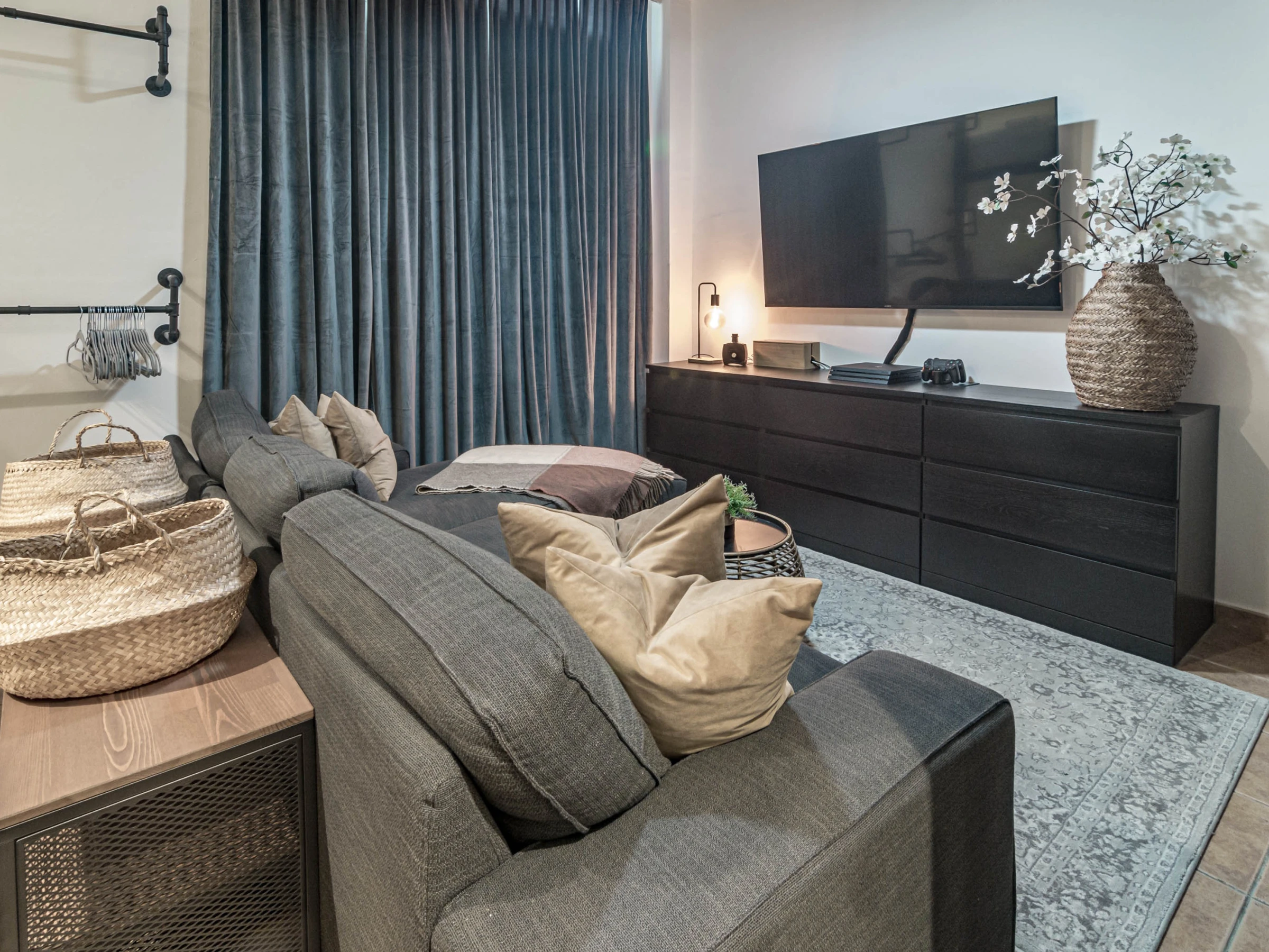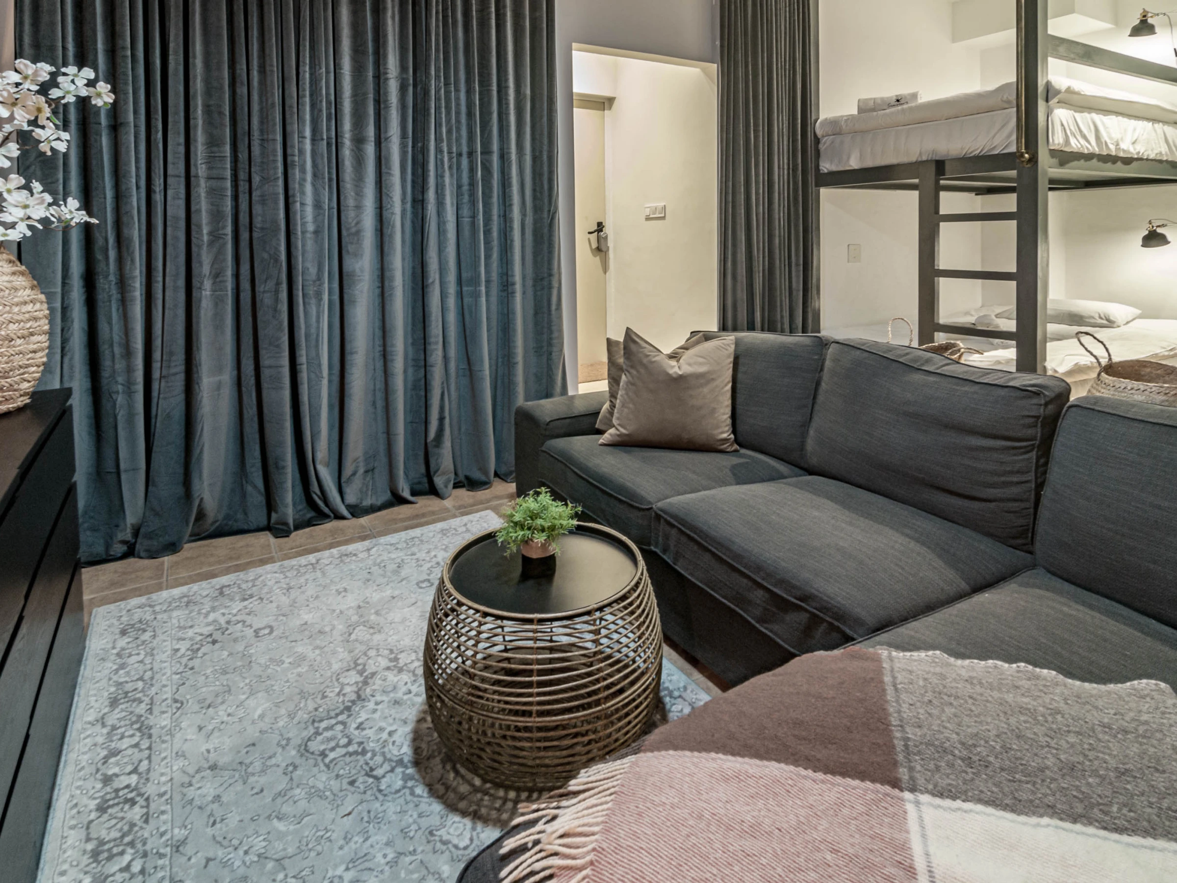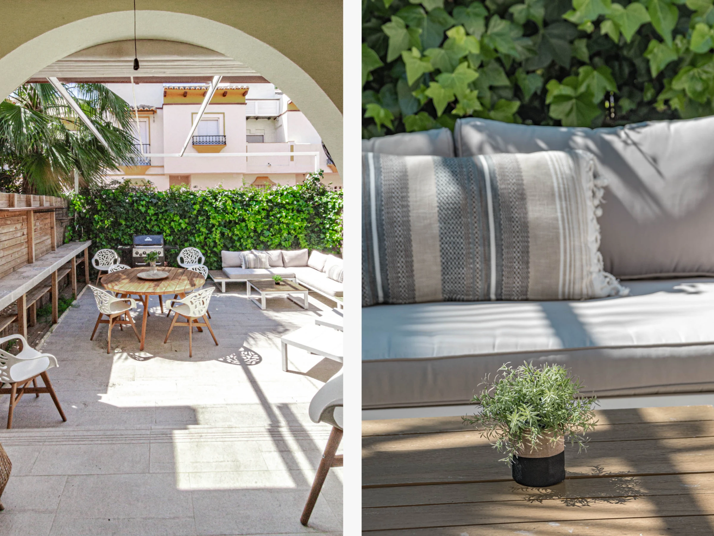 This 3-bedroom apartment is a perfect holiday destination for friends and families, due to the spacious and convenient nature of the apartment and its location. The property sleeps 8 people with 2 bedrooms encompassing double beds and the other hosting 6 people due to the nature of the bed layout. There are three bathrooms available throughout the property. On the ground floor the open living area offers a cosy seating area, dining area and kitchen. This stylish space creates a serene atmosphere that perfectly complements the property’s location. Additionally, the private outdoor space is full of entertainment for friends and family. There is a private bbq and an array of outdoor furniture.