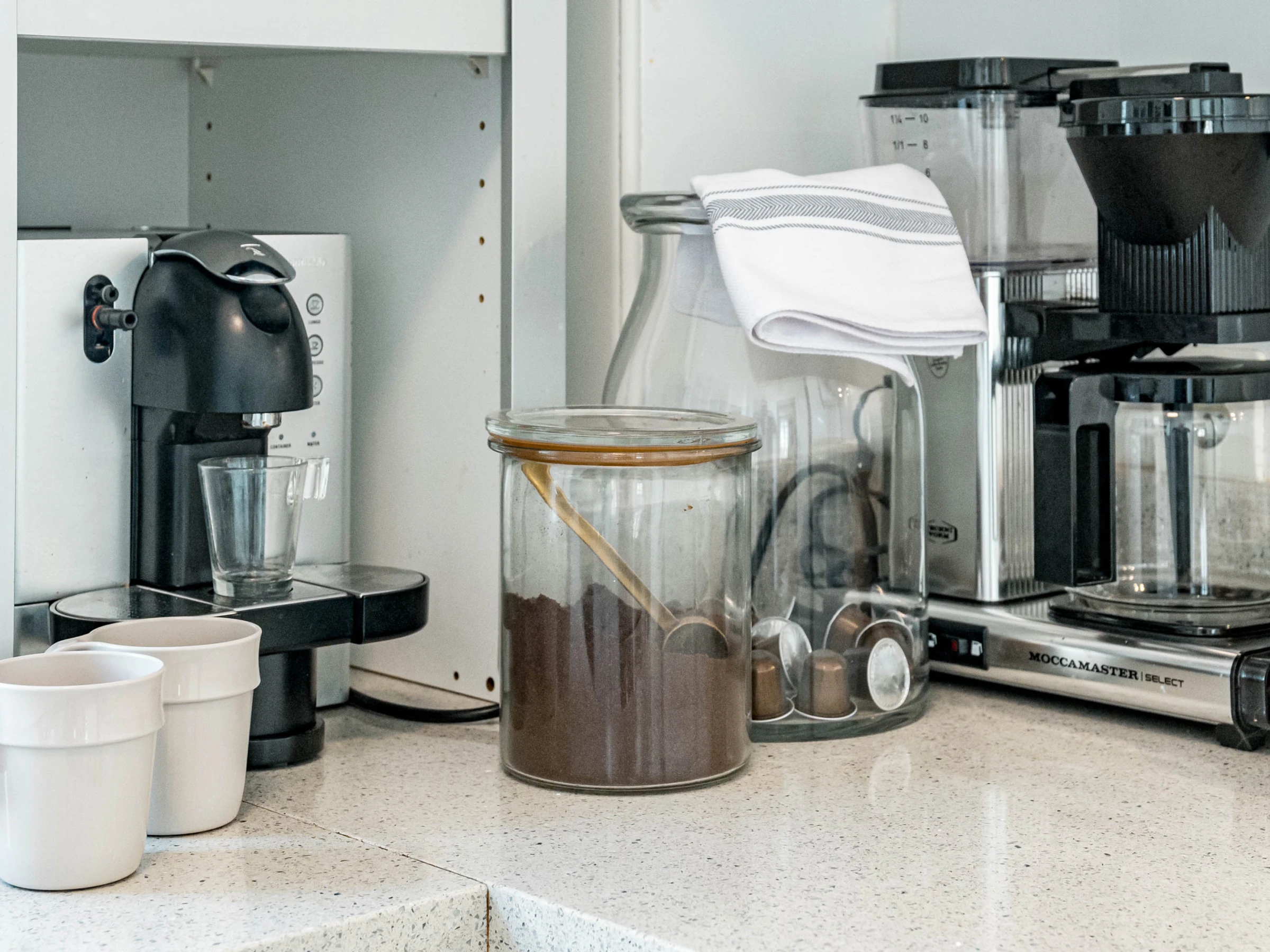 The fully equipped modern kitchen features a refrigerator with freezer, microwave, induction cooking field, oven, dishwasher, dishes/cutlery, all kinds of kitchen utensils, toaster and air fryer. There’s everything you need for cooking, relaxinghosting friendsvisitors.