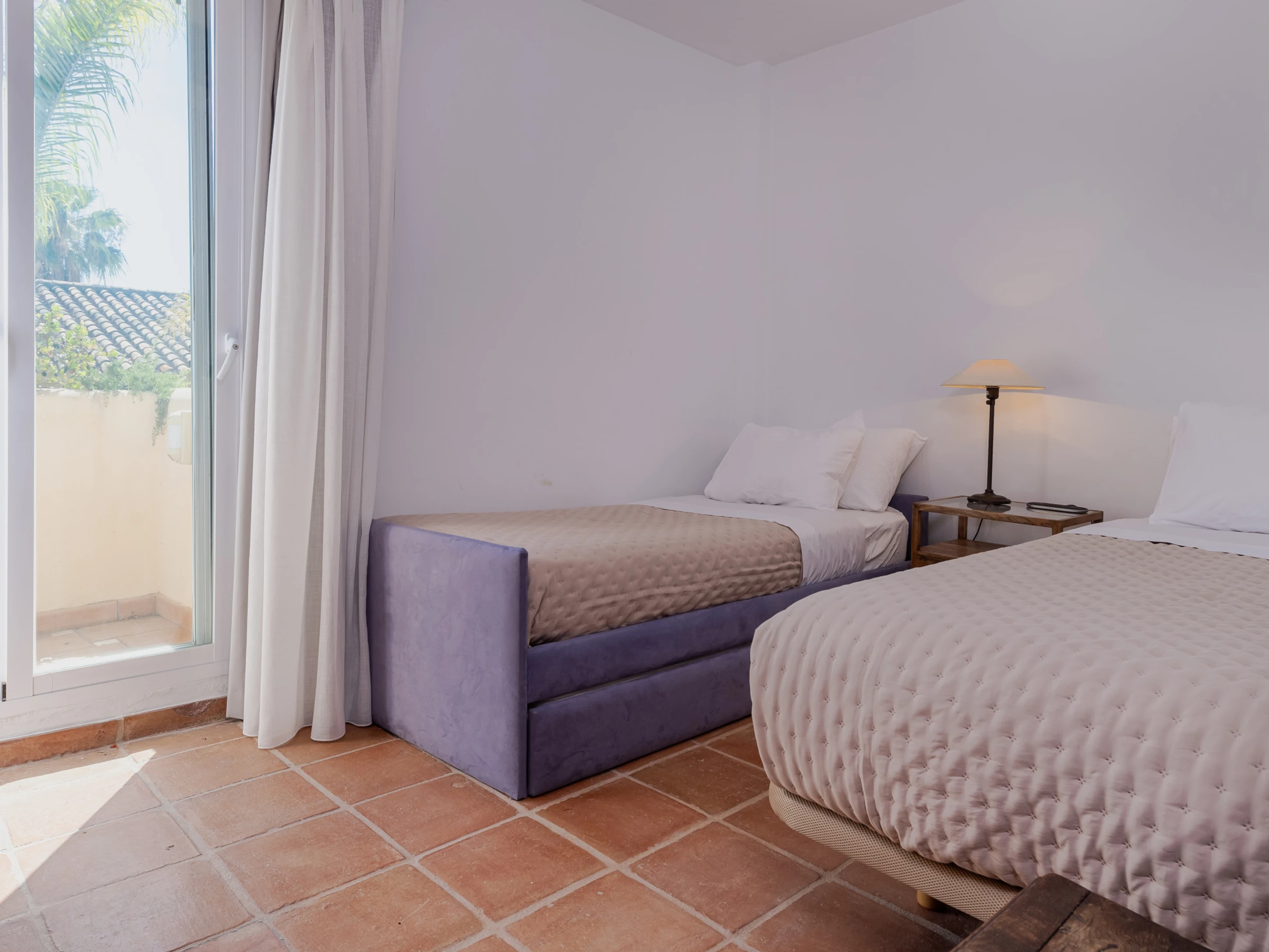 The expansive garden includes a large pool with three sunbeds, offering space for four people, as well as an outdoor sofa and two smaller beanbags. This villa in Los Monteros is the epitome of Andalusian charm, offering comfort, elegance, and an unbeatable location.