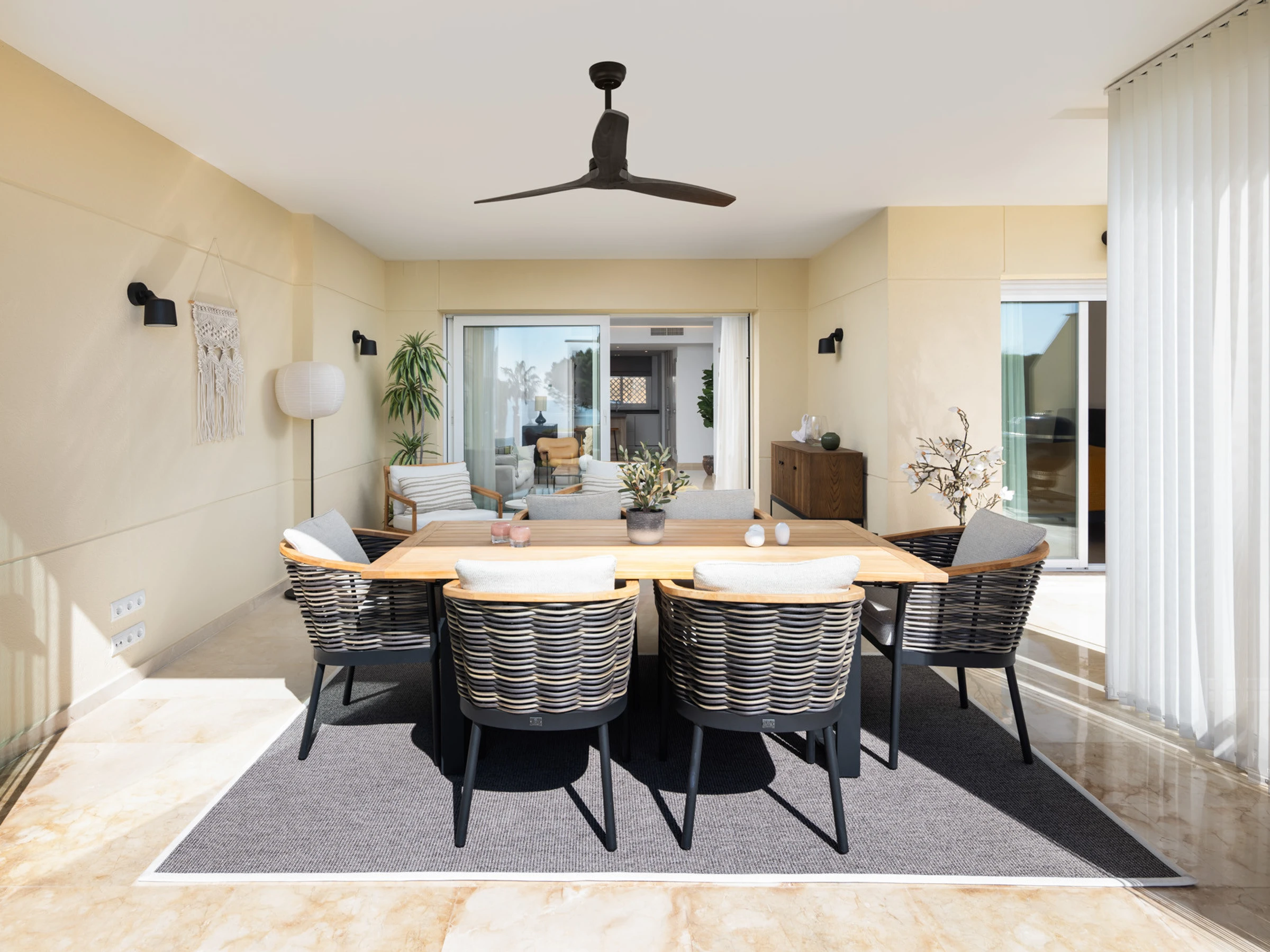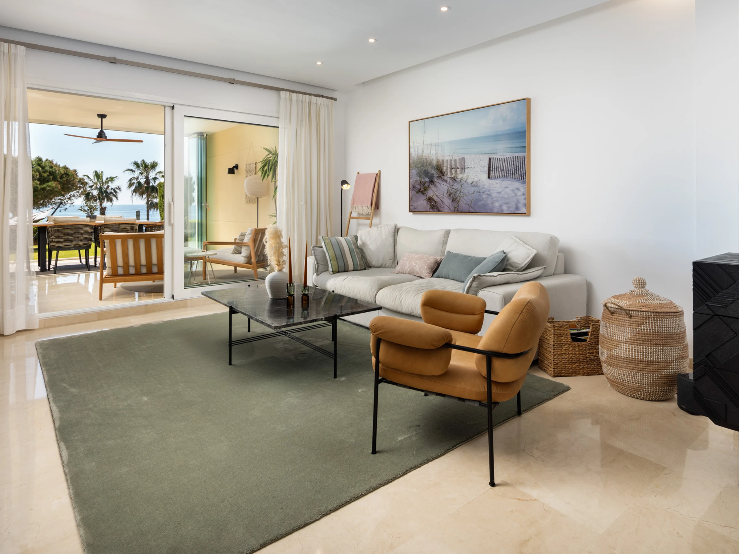 Luxury apartment on the beachfront with direct access to the sea and just a few minutes from Cabopino Port. Premium location, exclusive urbanisation and all the amenities for a high-level stay.