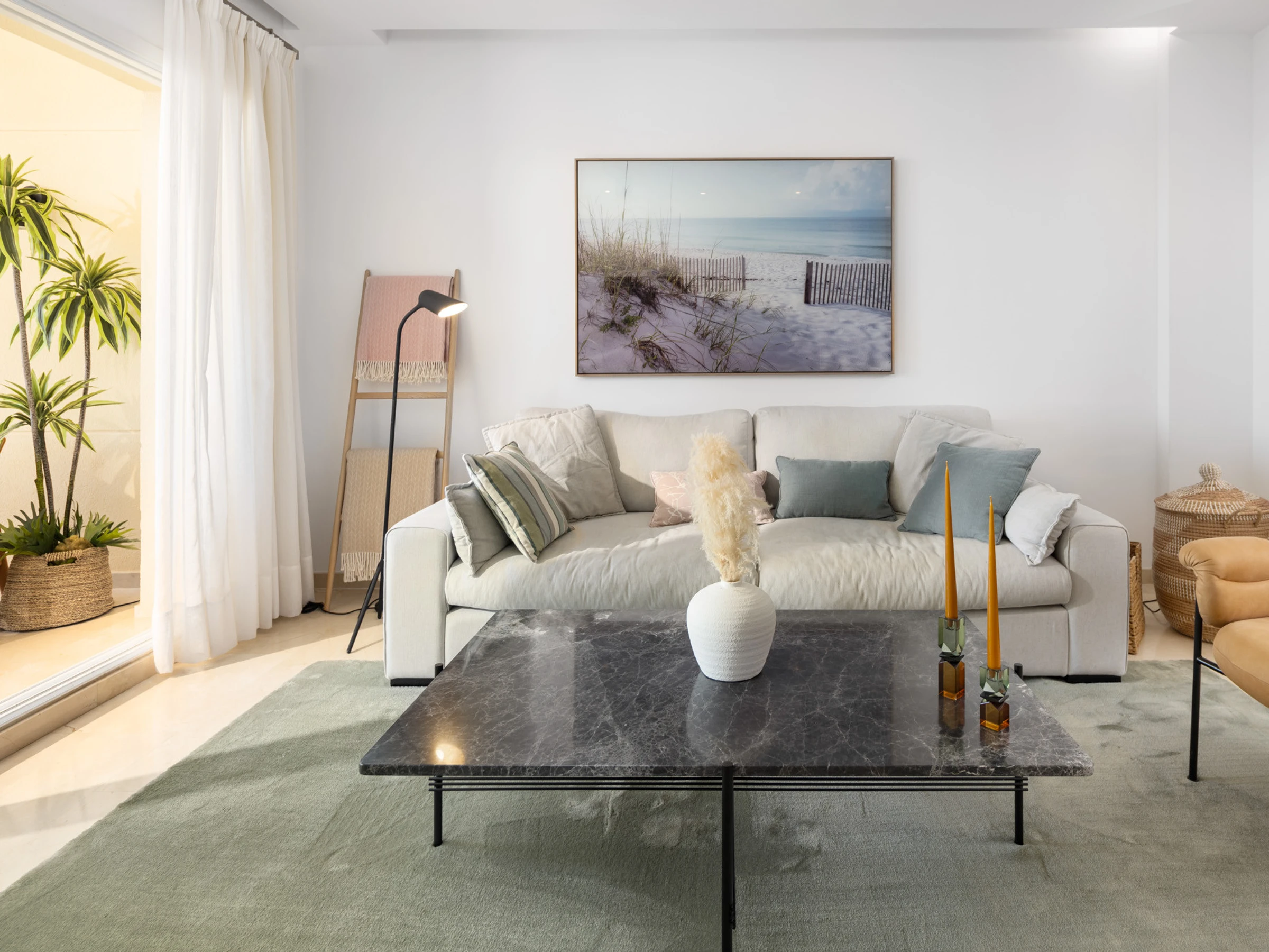Exclusive 130 m² apartment in Granados de Cabopino, one of Marbella's most prestigious residential developments. Located on the beachfront, with direct access to the sea and just a few minutes' walk from Cabopino Port, surrounded by restaurants and beach clubs.