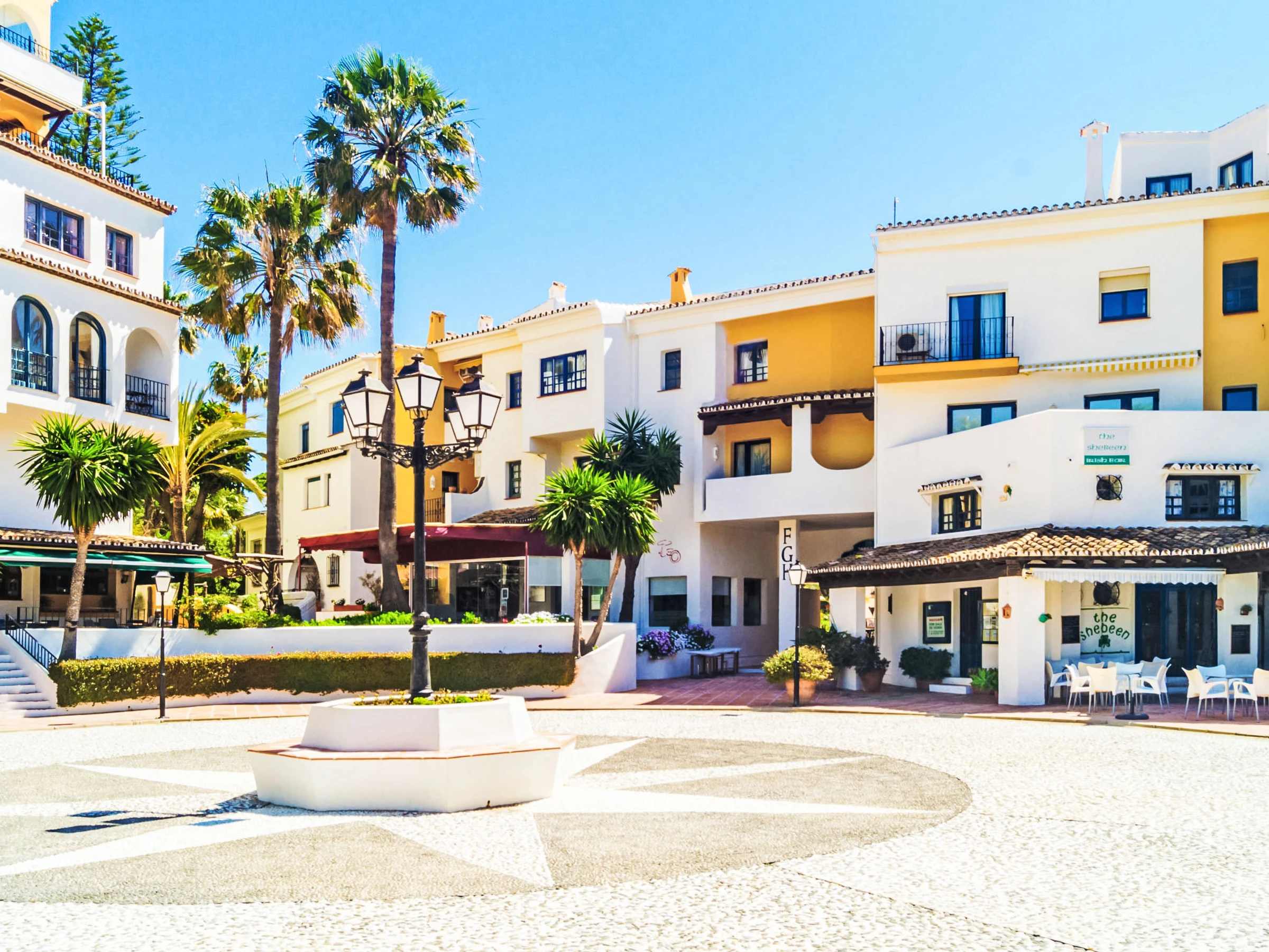 Puerto Cabopino: Large, comfortable apartment block "Cabopino". Outside the resort, 14 km from the centre of Marbella, 50 m from the sea, 100 m from the beach. For shared use: property, garden with lawn, swimming pool (depth 80 - 240 cm, seasonal availability: [hidden] - [hidden] Children's pool, outdoor shower, children's playground. In the house: lift. Communal covered parking. Supermarket 1 km, shopping centre 1 km, restaurant 50 m, bus stop 200 m, sandy beach "Playa de Cabopino" 100 m. Golf course (18 hole) 2.5 km, riding stable 5 km.