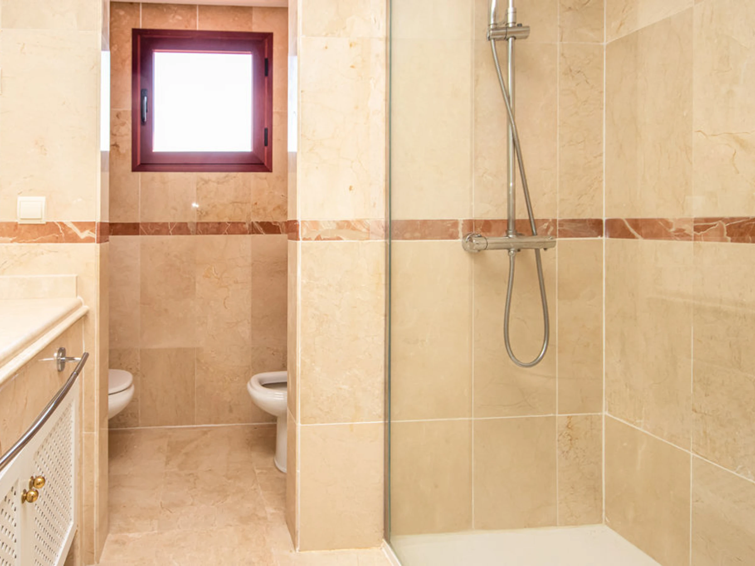 This beautiful four bedroom duplex penthouse apartment is extremely spacious and decorated to a high standard throughout. Perfectly situated only 200 metres from the beach with access from the complex gardens, where there are two chiringuitos (beach restaurants). Set in a very tranquil complex, with amazing gardens, swimming pools, padel tennis and children's play area, this beach side complex is within a short drive of some of the finest golf courses on the coast. The famous towns and ports of Marbella and Puerto Banus are just 10 and 15 minutes drive away respectively. Malaga Airport is just a 30 minute drive. There are a selection of restaurants and bars as well as a large supermarket within walking distance, and the famous Nikki Beach Resort at the Don Carlos Hotel is just 4kms away.