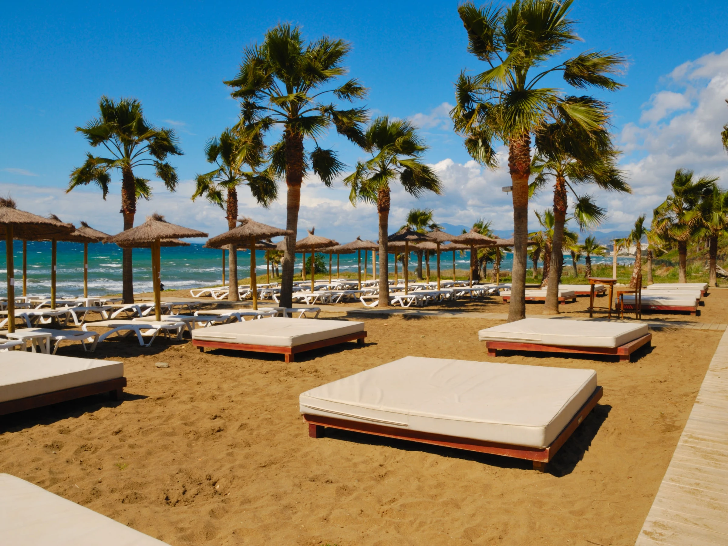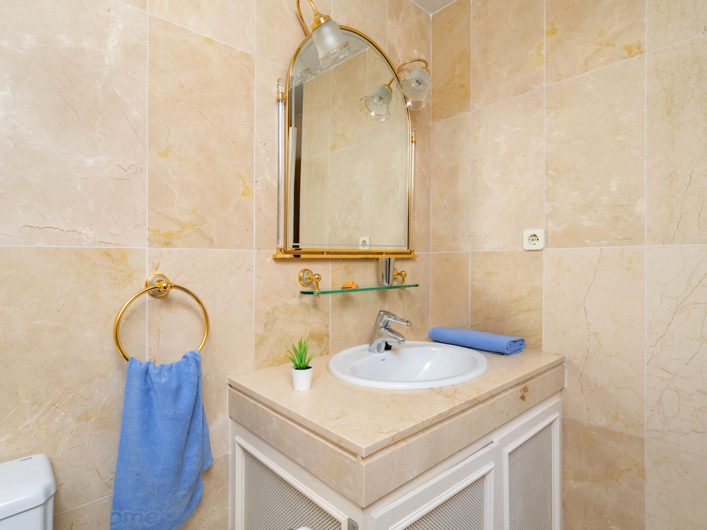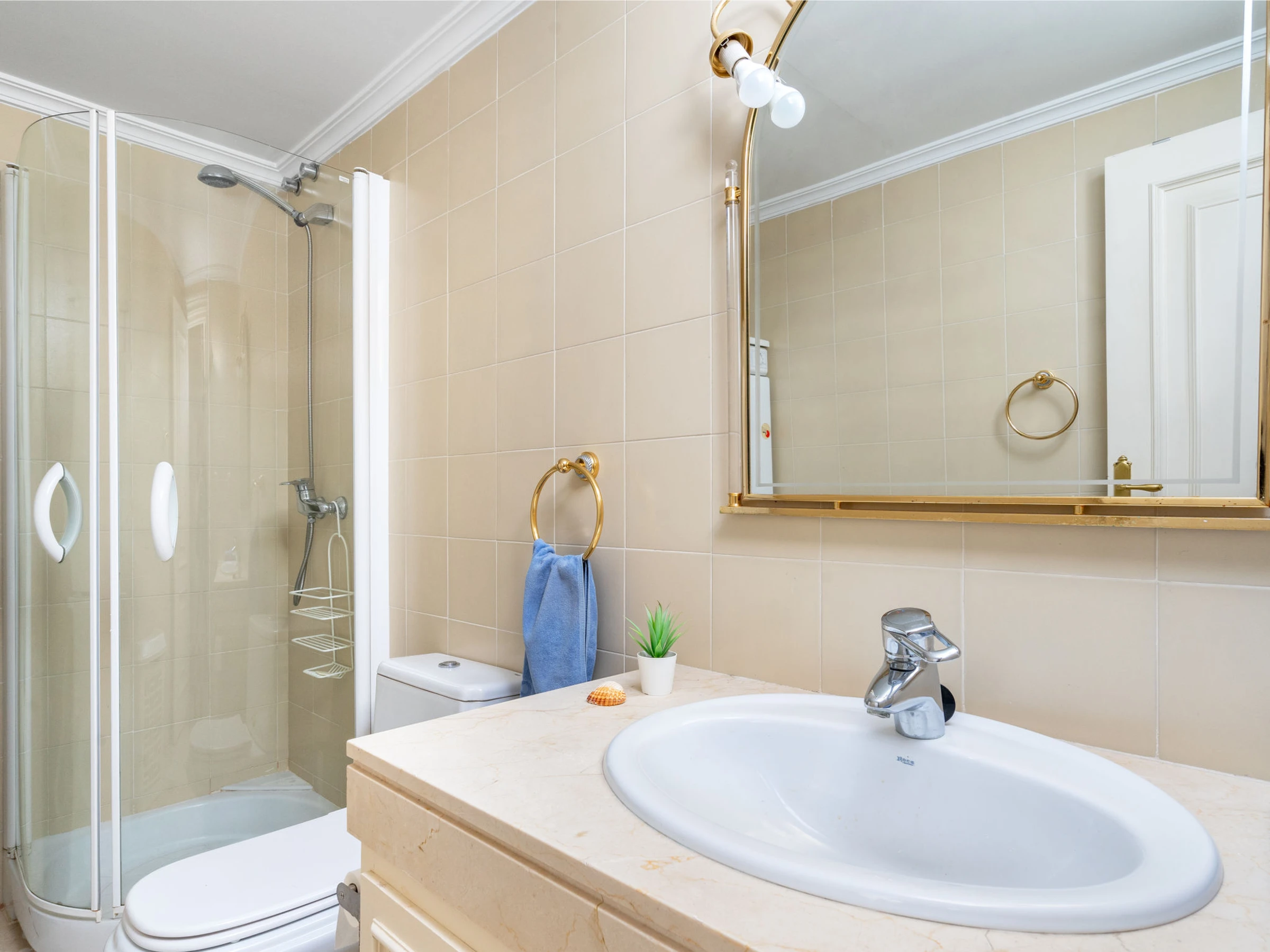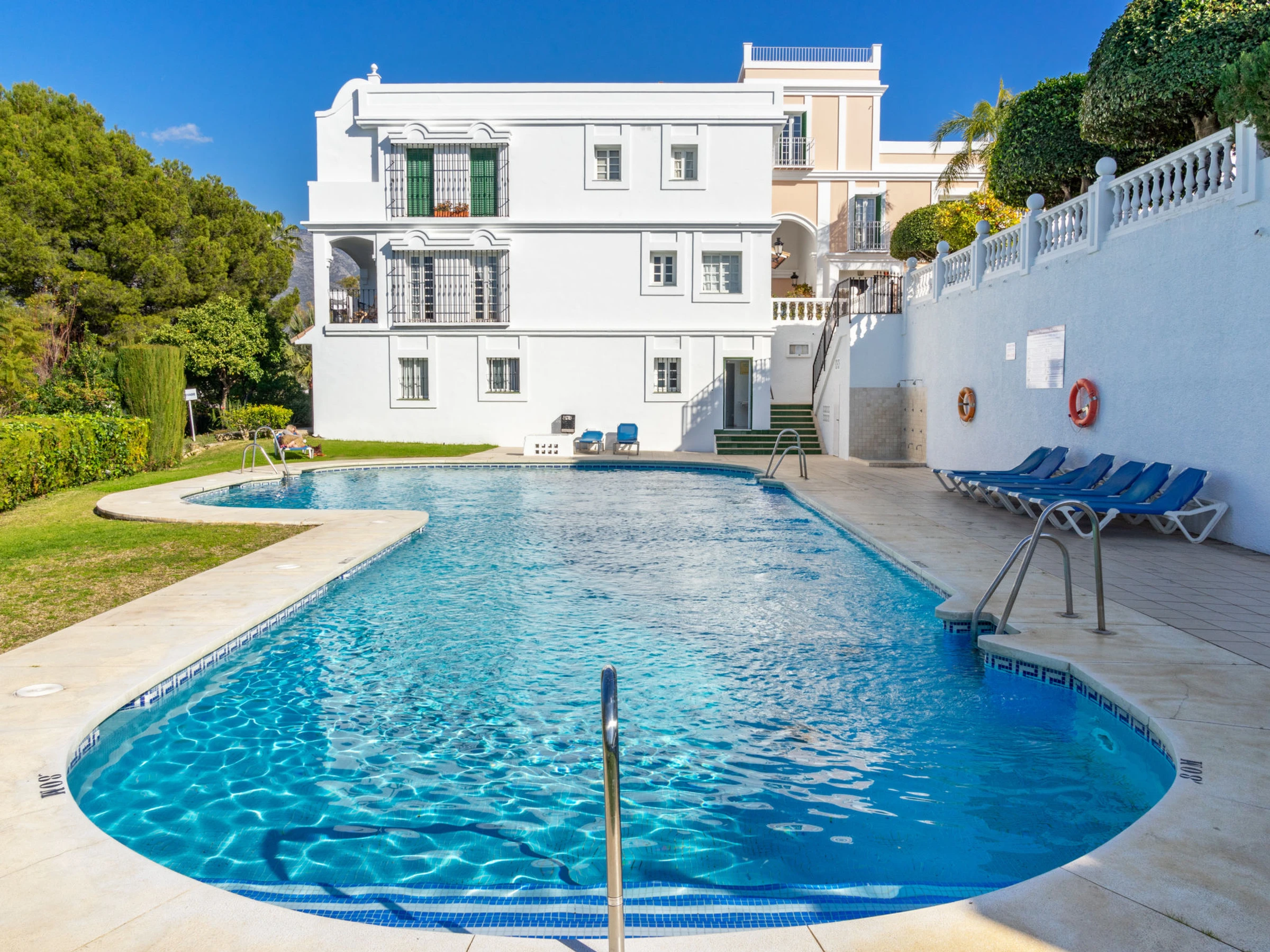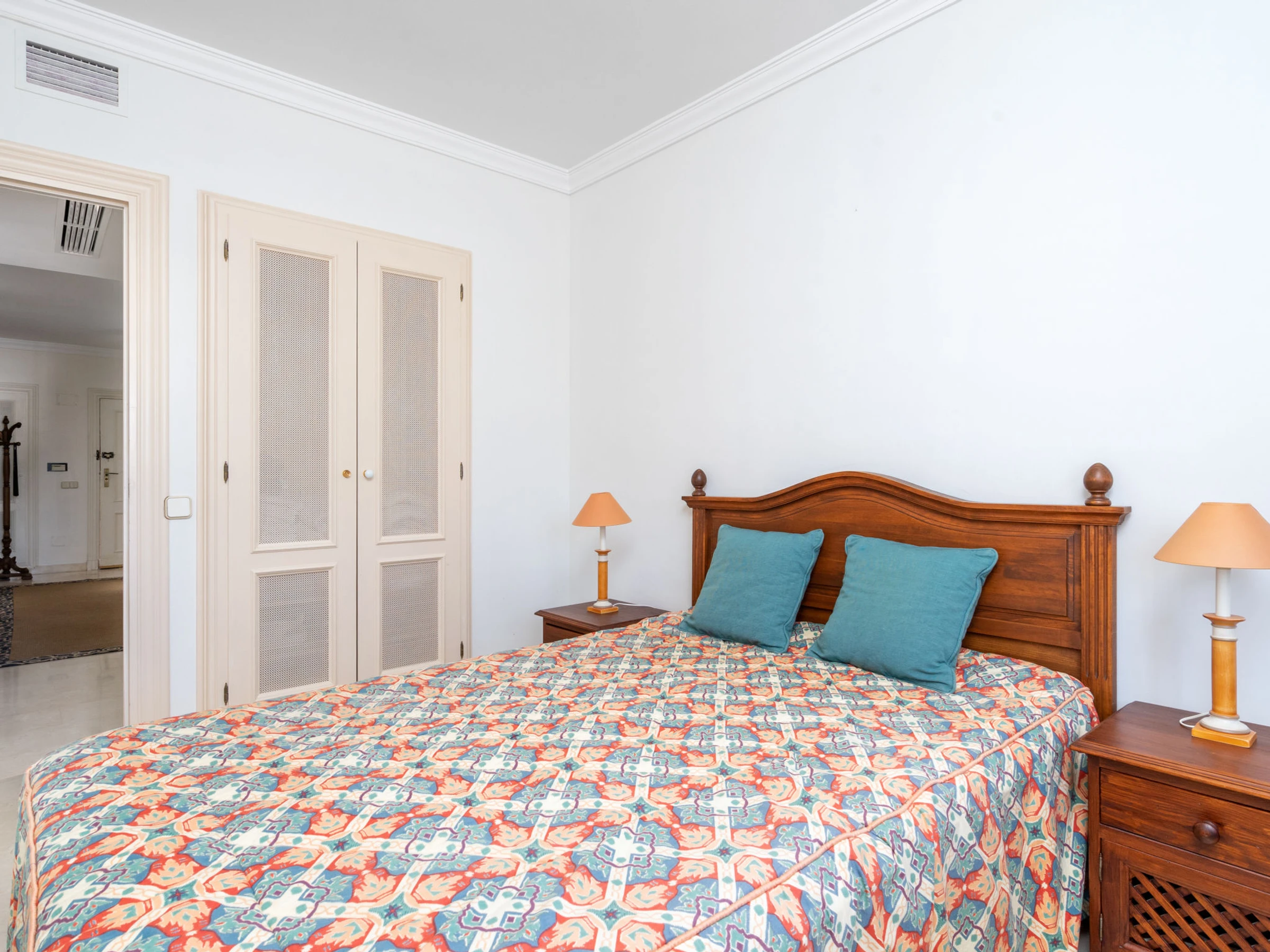 Nueva Andalucia: Beautiful, comfortable terraced house "Aloha Pueblo", 2 storeys. 3.5 km from the sea, 3.5 km from the beach. For shared use: park, garden with lawn, swimming pool heated (seasonal availability: [hidden] Shower/WC in the pool area, communal covered parking. Shopping centre 3 km, restaurant, bar 50 m, sandy beach "Puerto Banús" 3.3 km. Sports harbour 3.3 km, golf course (18 hole) 300 m. 24hr guard. Neighbourhood highly sensitive to noise. Quietness and good behaviour expected. The pool is heated from the week before Easter until November 1 aprox., except for the hottest months.