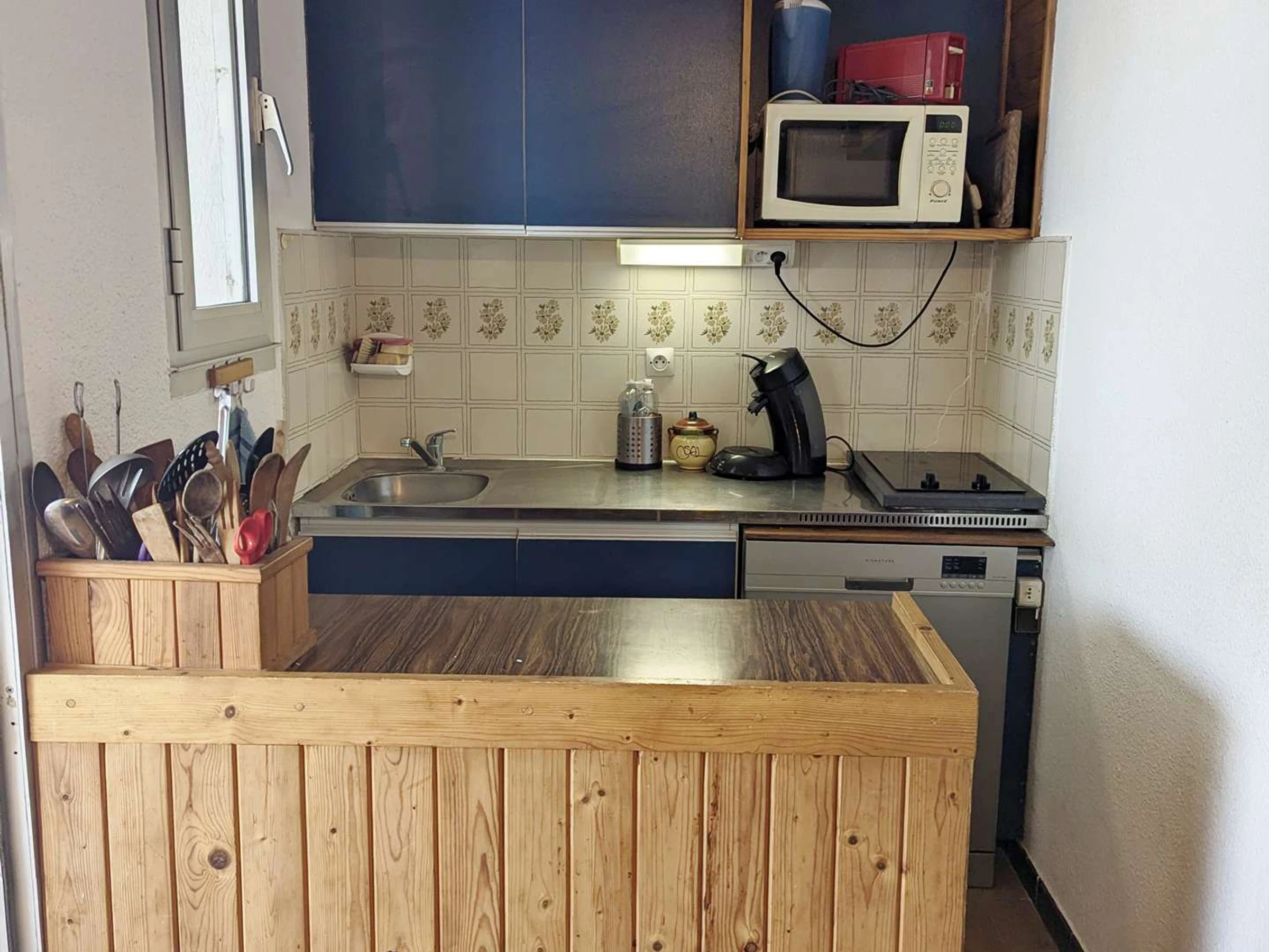 Kitchenette: ceramic hob, dishwasher, oven, microwave, fridge/freezer, electric coffee maker, kettle, and toaster.
