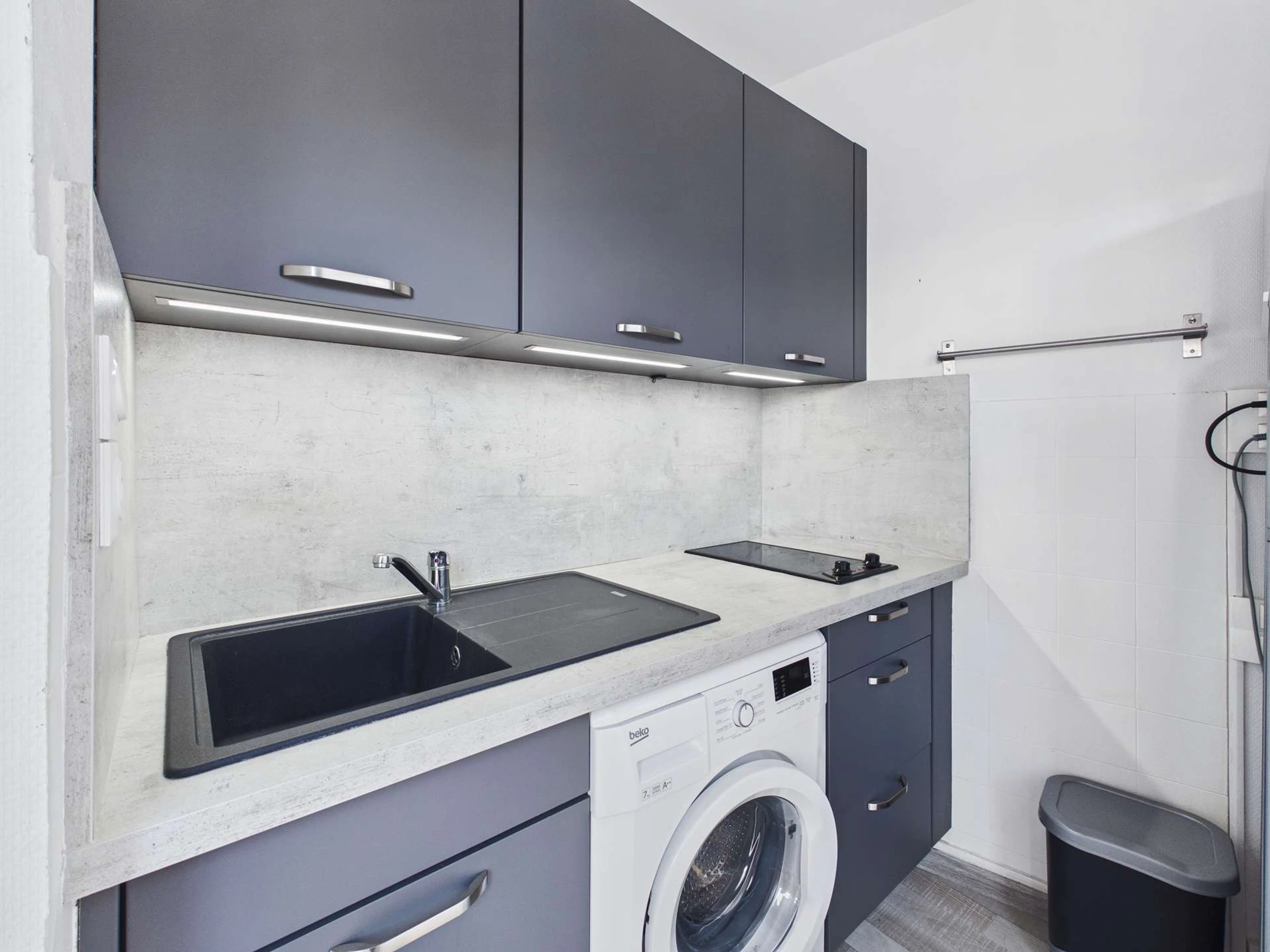 EL PASO Residence, close to the beach and shops. Living room with sofa bed and TV, kitchen area equipped with 2 vitroceramic hobs, oven, fridge/freezer, microwave, Senseo coffee machine, and washing machine. Alcove in the living room with 2 bunk beds. Bedroom with double bed and wardrobe. Bathroom with shower and sink. Separate toilet. Terrace (South-South/East facing) of 23 m² with garden furniture, parasol, 1 sun lounger, and a standing barbecue.