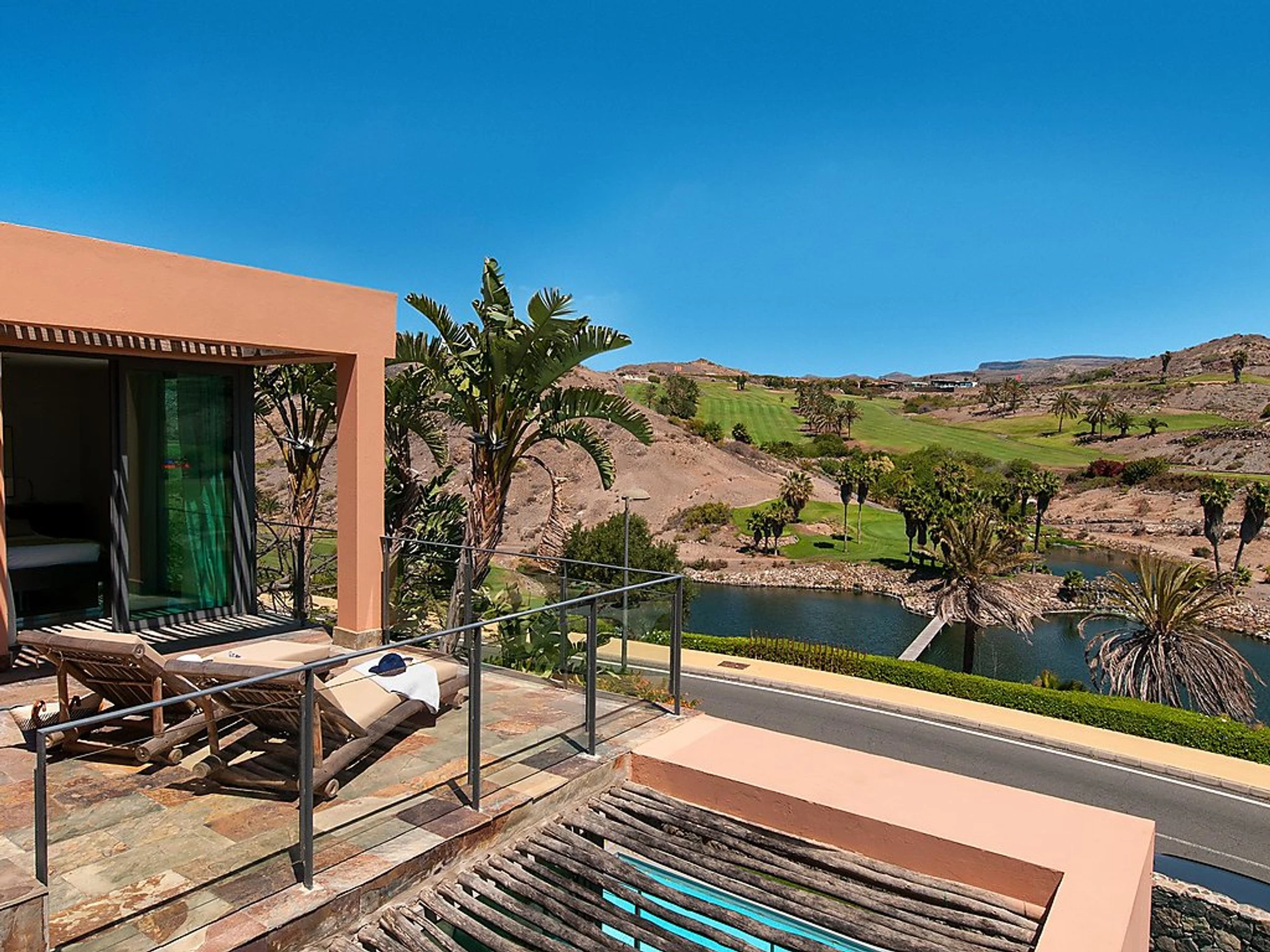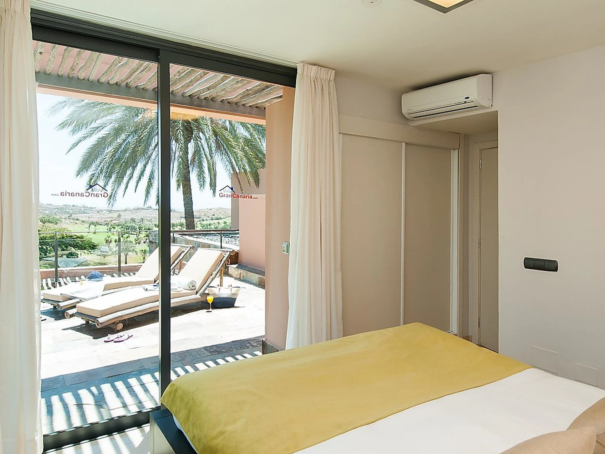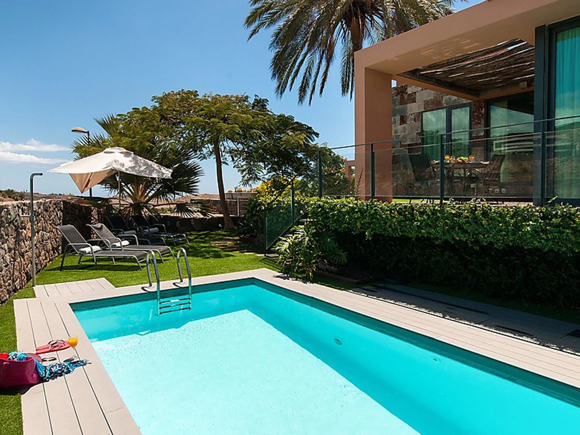 Large, child friendly, modern villa "Los Lagos 6 - Salobre Golf Resort". House Equipment: air conditioning, washing machine (private use), tumble dryer (private use). Access & Parking: parking by the house on the road. All-season motor access to the house. Stepped path. Situation: on the outskirts of Maspalomas, central, quiet, sunny position. View from the apartment of the sea, the mountains and the countryside. Surroundings of the house: grounds (private use, fenced), swimming pool (private use, heated), barbecue (private use). Facilities and distances: shop 10 km, grocers 10 km, supermarket 1 km, restaurant 10 km, sandy beach 120 km, golf course 1 km. Please note, nearby is an ein airport/airfield in 38.8 km. Wifi (extra charged, 6 €/day), confirm in the booking and pay on spot. Swimming pool heating: extra (30€/night, to be requested in the booking and to be paid on spot).